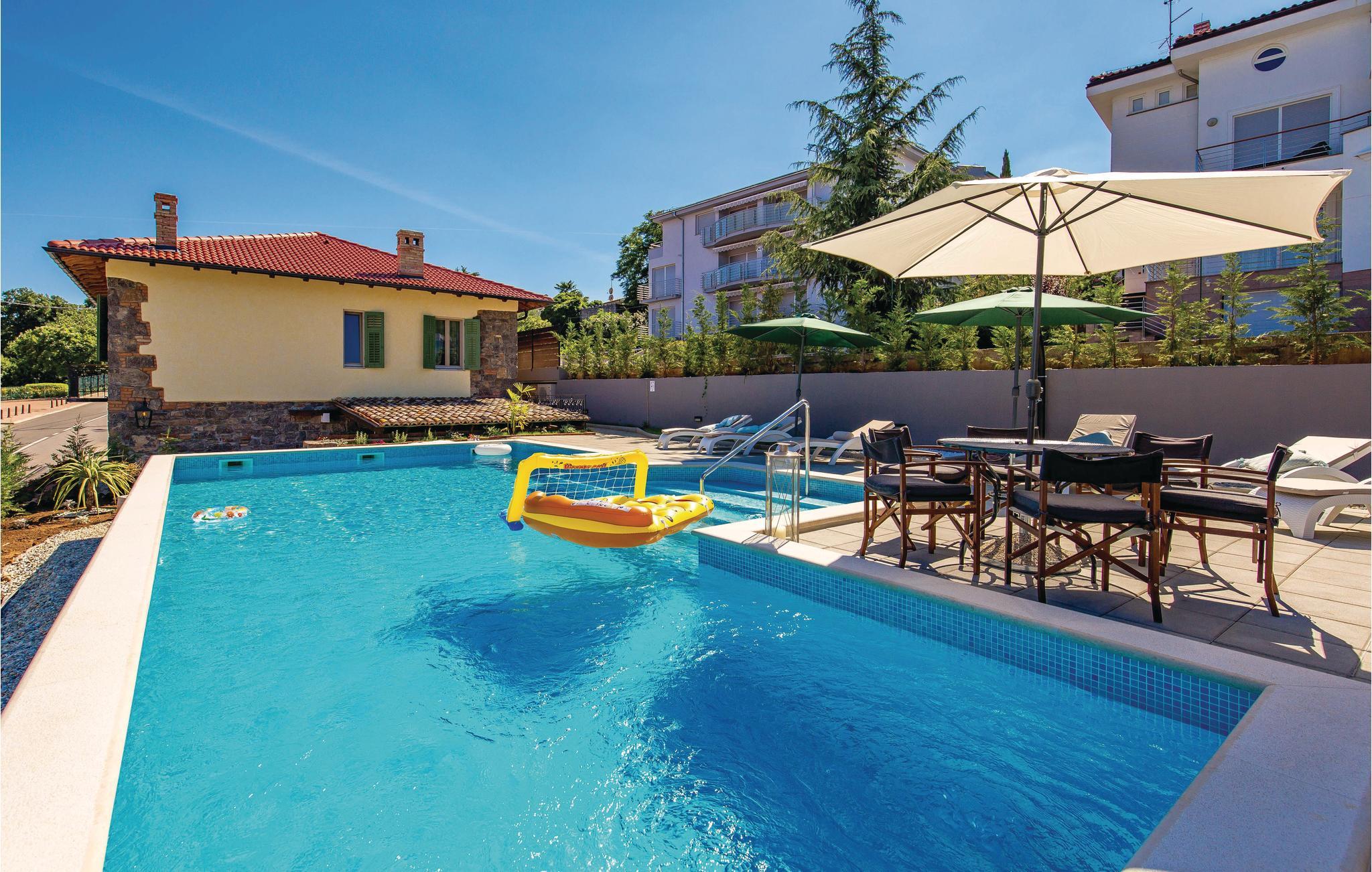 I dette feriehus kan det kun blive en perfekt ferie. Ferieboligen ligger i Icici,, ikke langt fra Opatija og byder på smagfuldt indretning og den nødvendige komfort. Det er indrettet med meget kærlighed og sans til detaljen. På den solrige terrasse kan I nyde jeres morgenkaffe eller hyggelige sommeraftener i dejlig samvær. Start dagen med en svømmetur i poolen og nyd udsigten over havet. Huset ligger ved en gade og i nærheden af afmærkede cykel- og vandrestier. I byens centrum Icici, og i hele området kan I finde underholdning og mange gode restauranter. Ved havnen er der en strand, som er kendetegnet med et blåt flag. Her kan I også spille volleyball, fodbold og badminton og til de yngste er der en rutsje. I kan tage på en 12 km lang gåtur langs vandet helt hen til Opatija og opdag rivieraens perler. Besøg naturparken i Ucka bjergkæden, øerne Cres og Krk i Kvarnerbugten og bliv begejstret for den utrolig flotte natur.