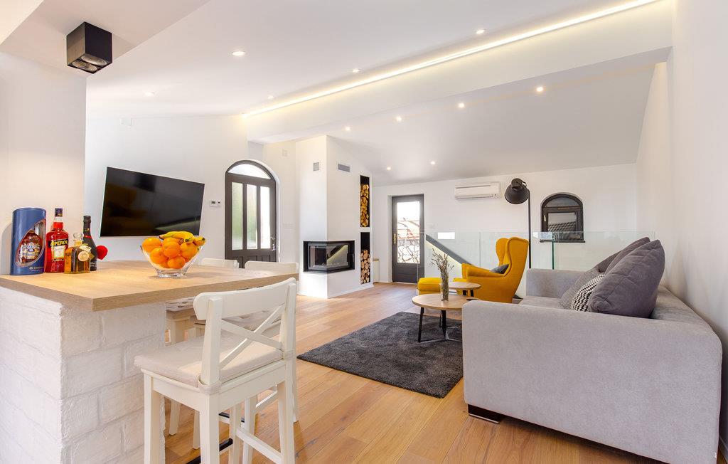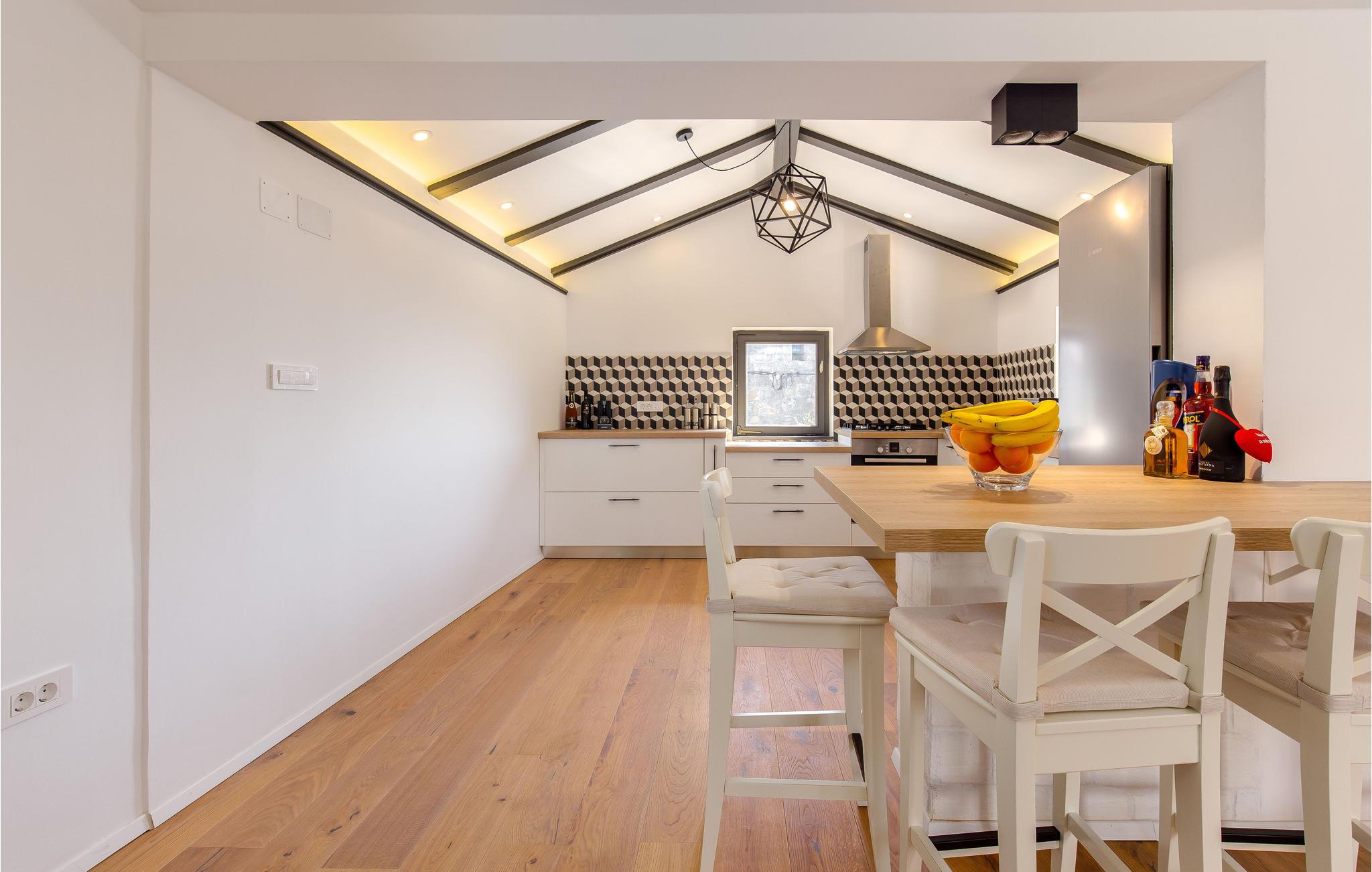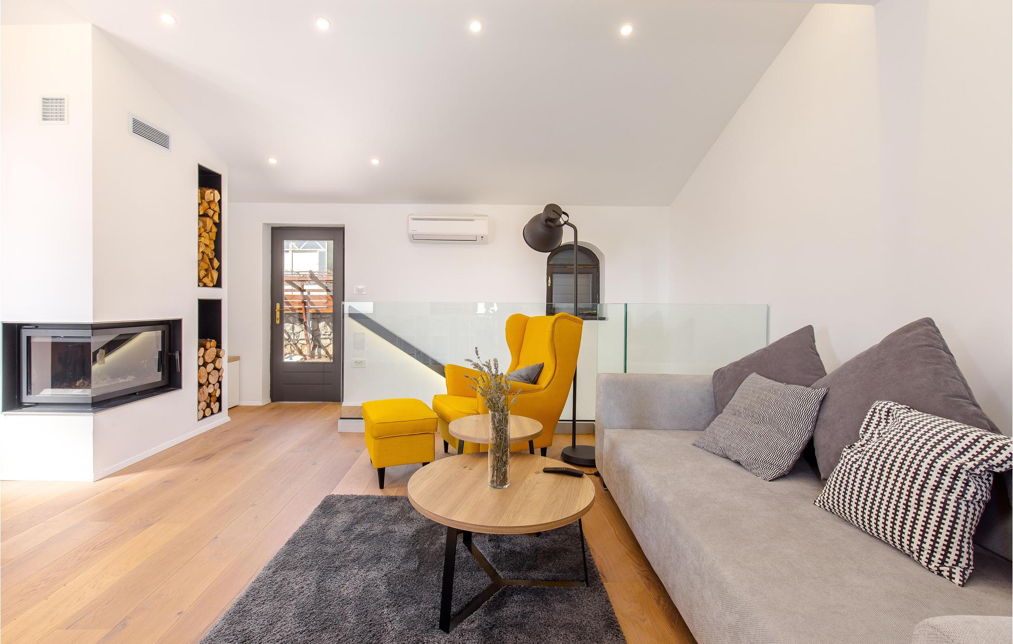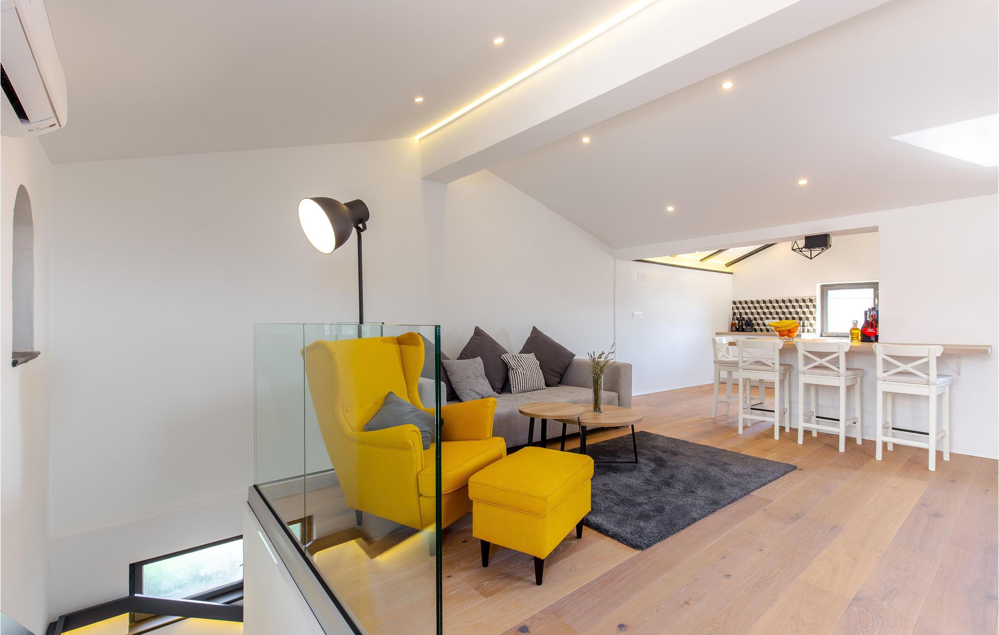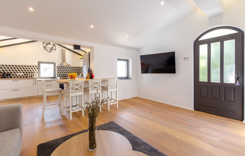 Med udsigt over havet byder dette charmerende stenhus jer velkommen med moderne møbler.