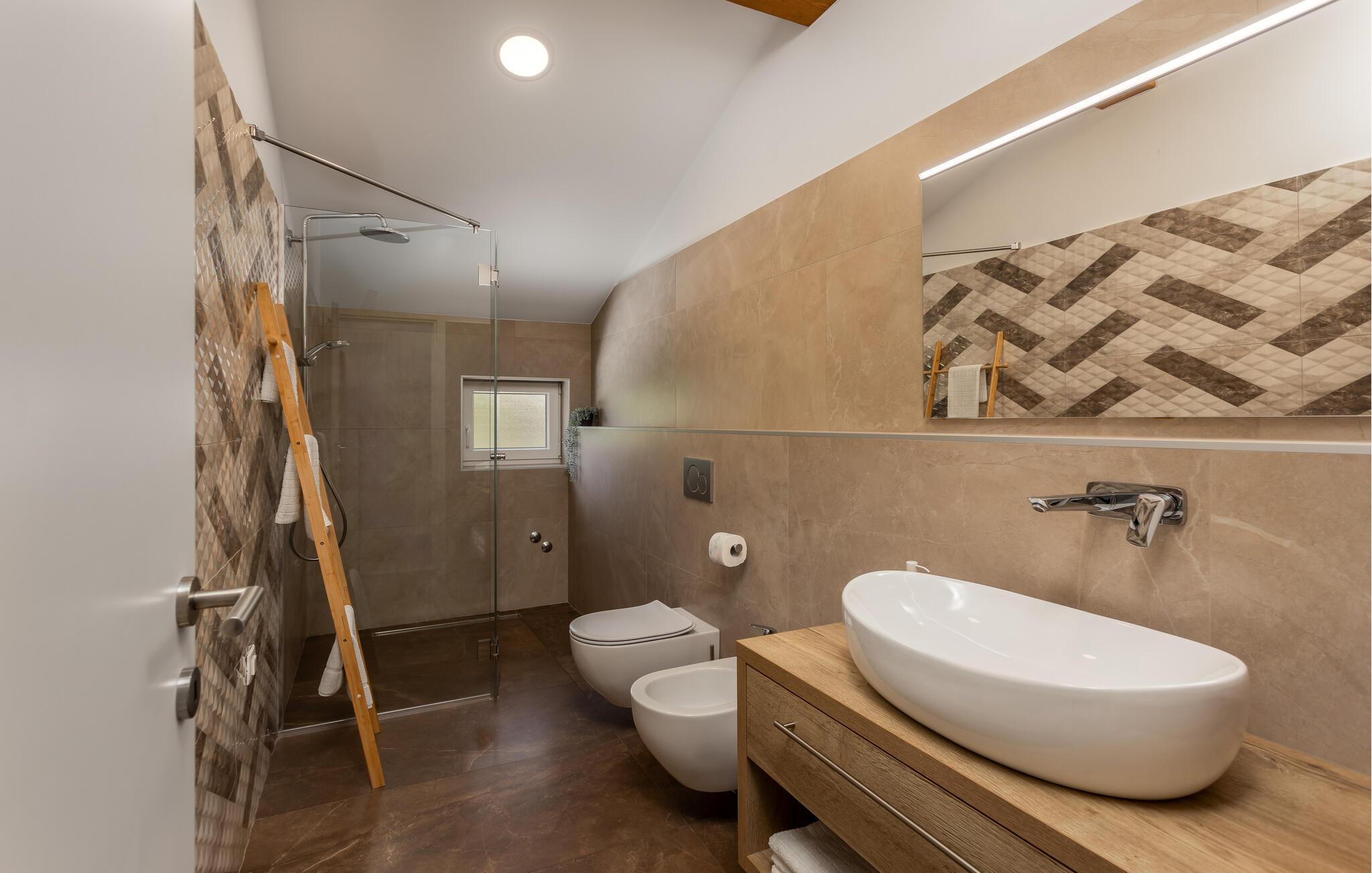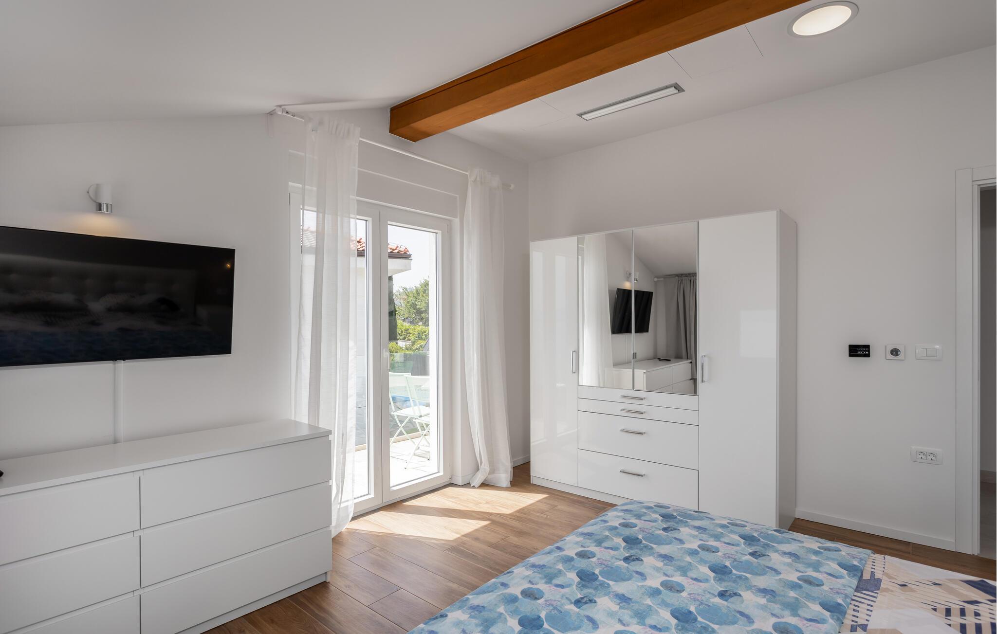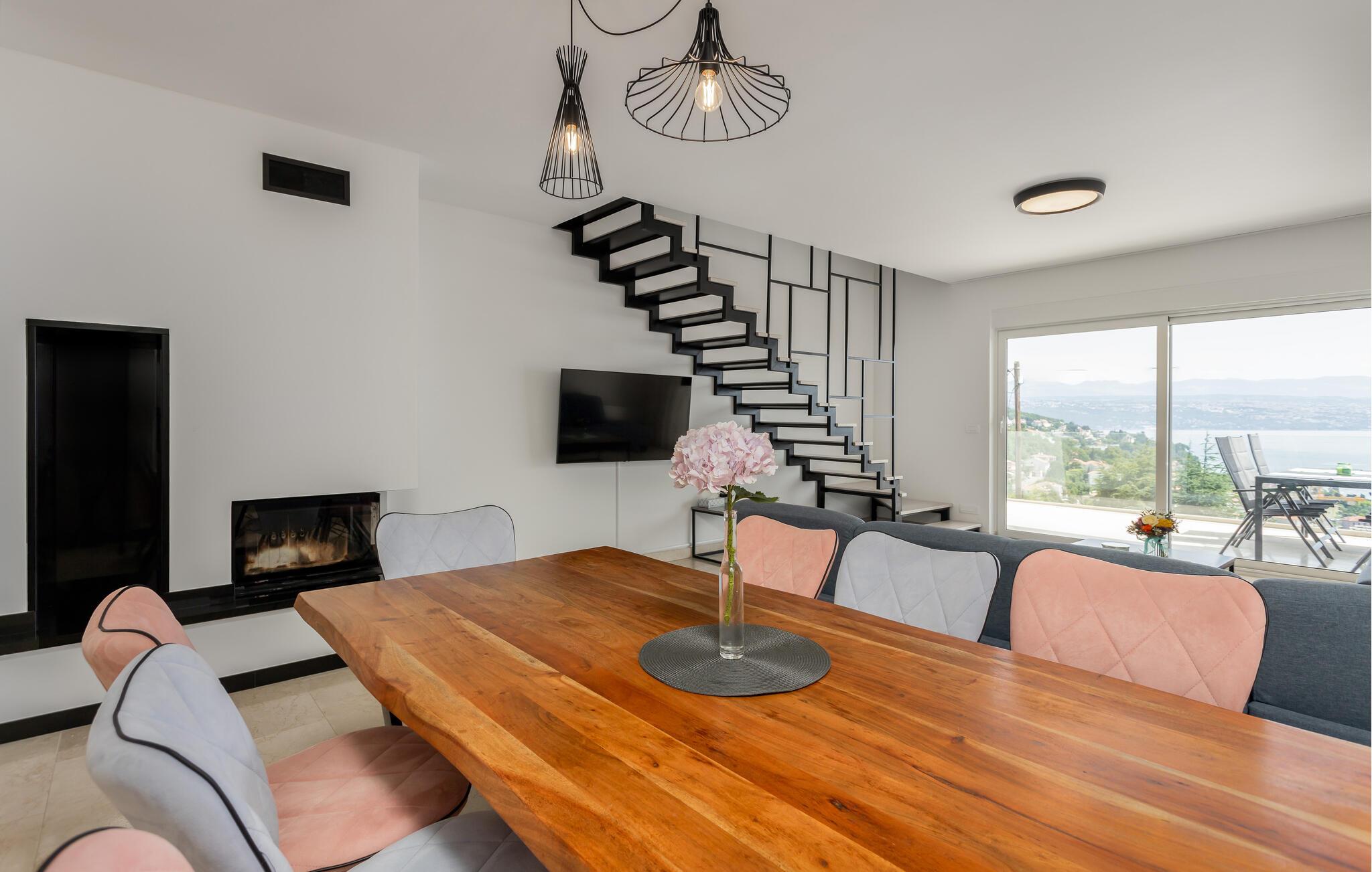 Der er lagt op til en ferie med masser af komfort og en vidunderlig udsigt i denne skønne lejlighed, hvor I sammen med familien kan slappe helt af uden de store bekymringer. Huset er i to etager, og overalt emmer indretningen af kvalitet og smagfuldt interiør. Lad blot dagen starte ud med en lækker morgenmad på den overdækkede terrasse, hvor I får en smuk udsigt over det blå hav og hele Kvarnerbugten, Rijeka og øerne Krk og Cres.