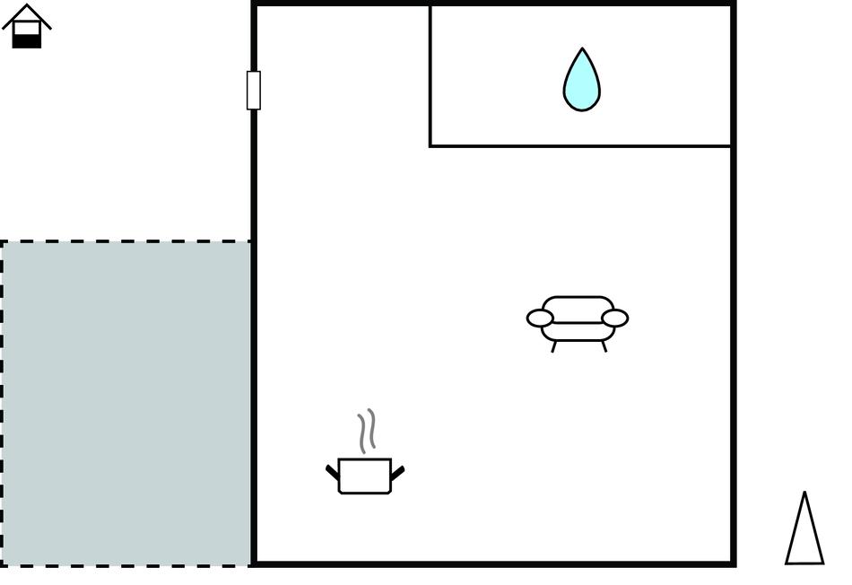 Opholdsstue/køkken 29m2 - 2 Sovepladser. (Dobbeltseng(e)). 1 Soveplads. (Sofa, madras eller lignende).