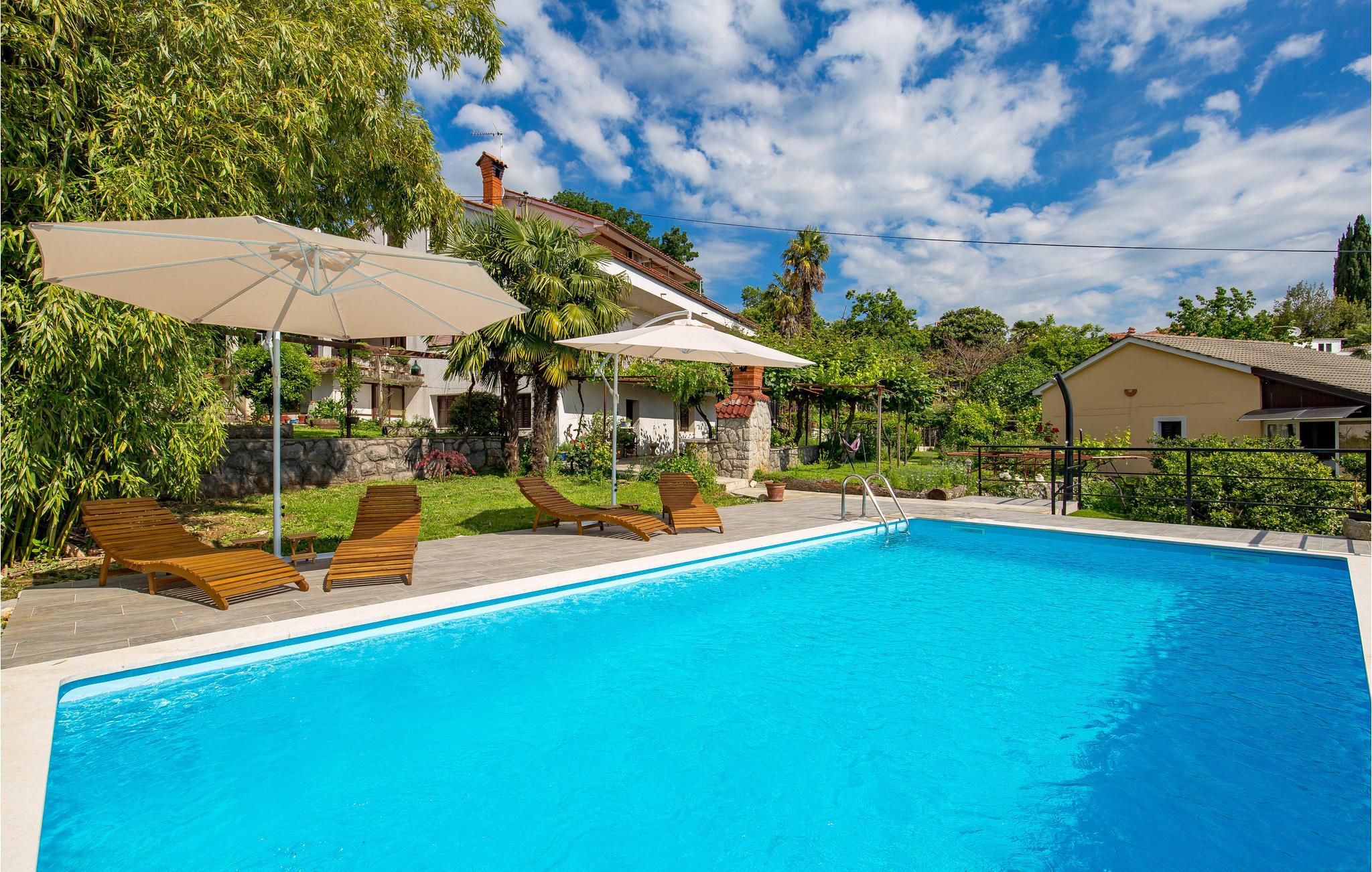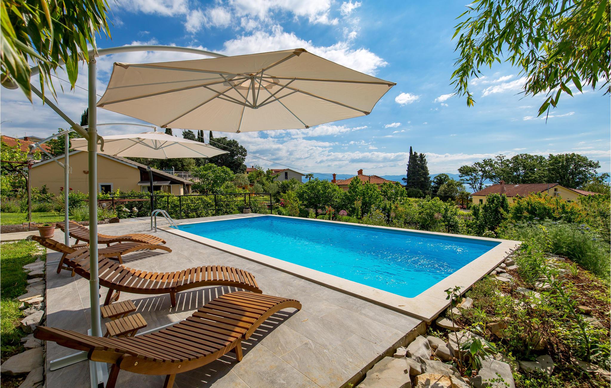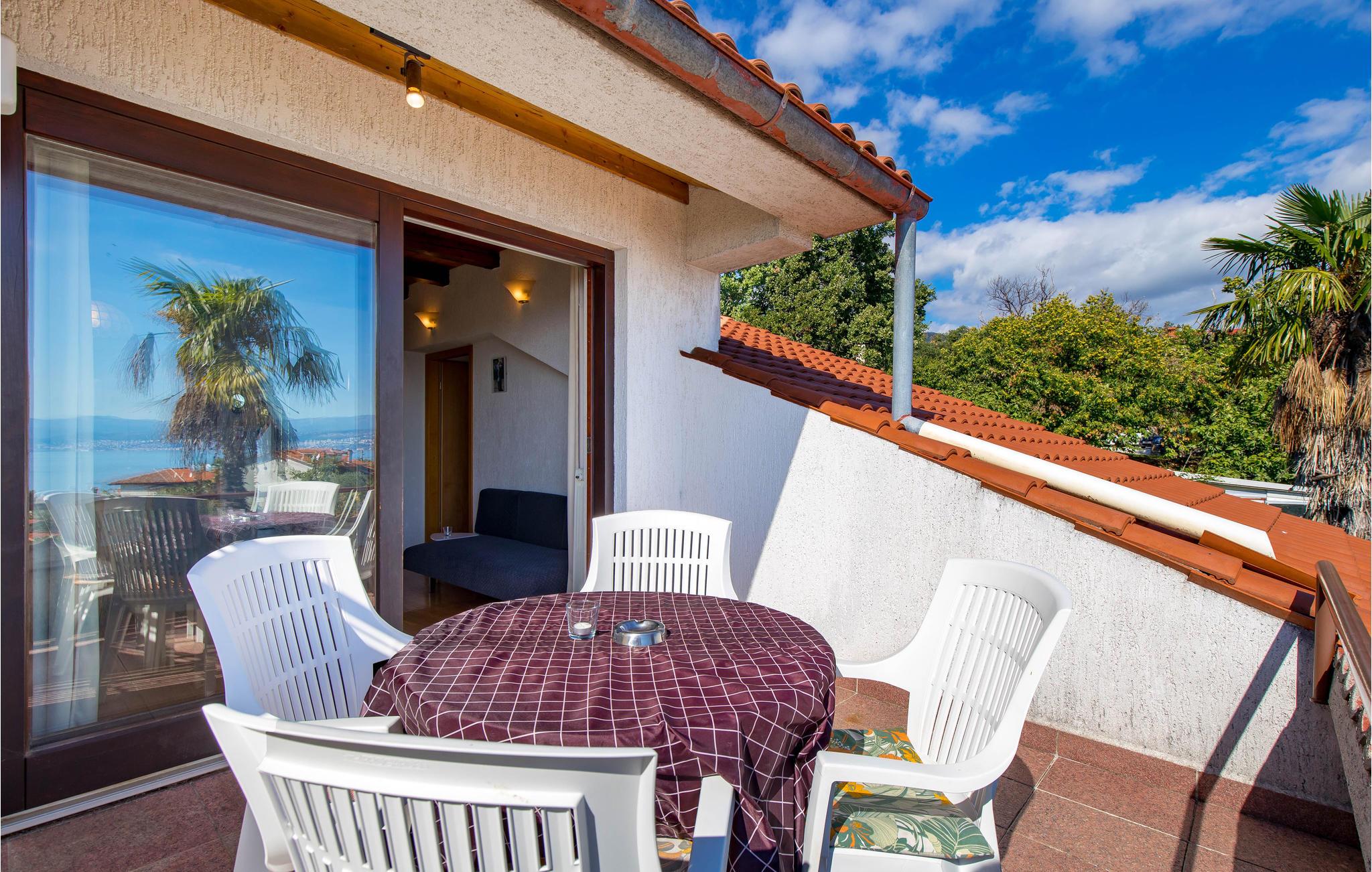 Ved Opatijas riviera, i den lille by Ika nær havet og stranden, ligger denne private ejendom med to praktisk indrettede lejligheder på øverste etage med skrå vægge og en laveste loftshøjde i siden på ca. ca. 160 cm.