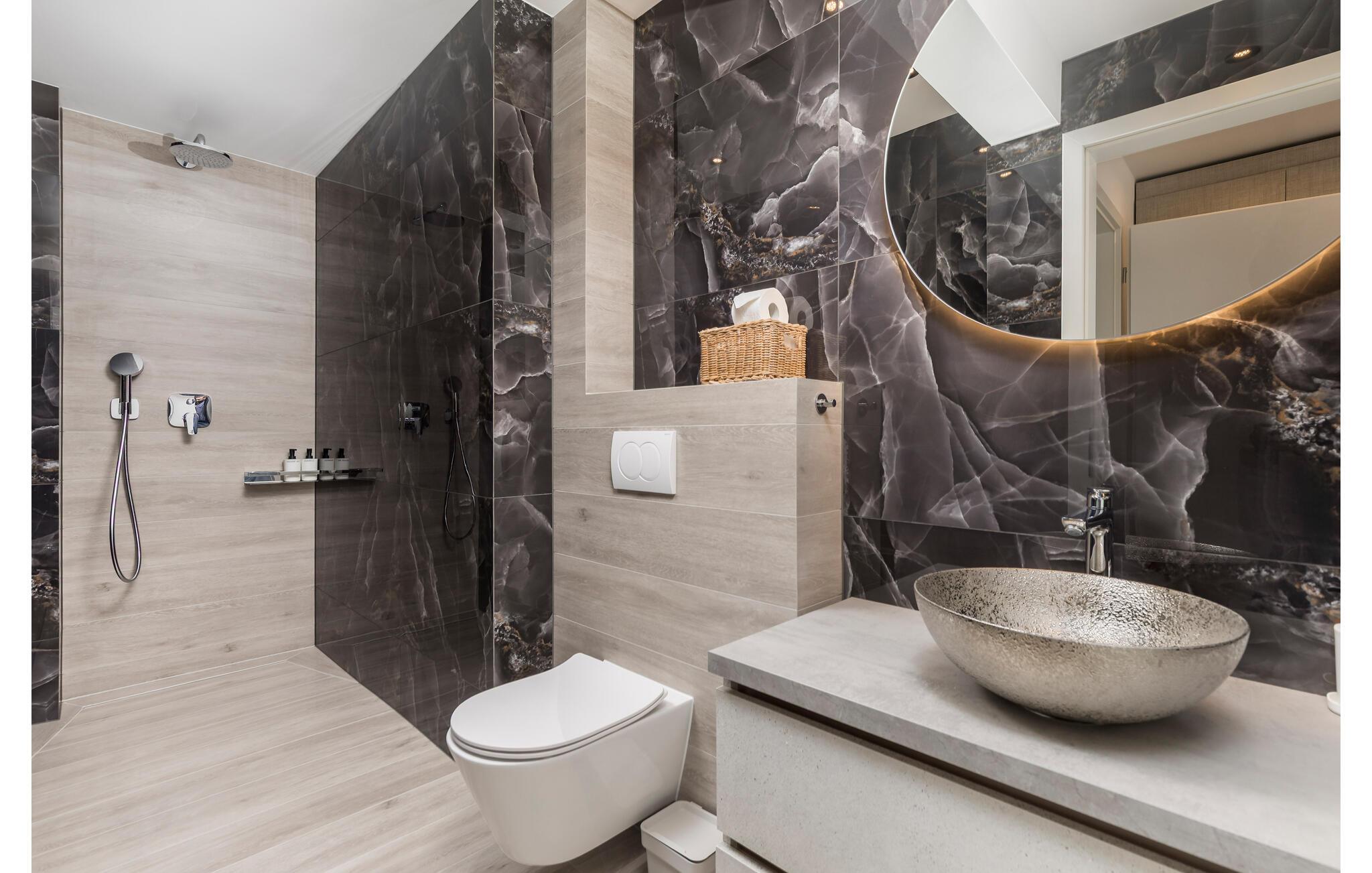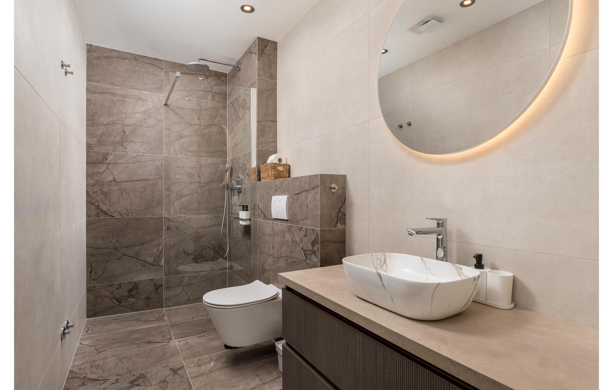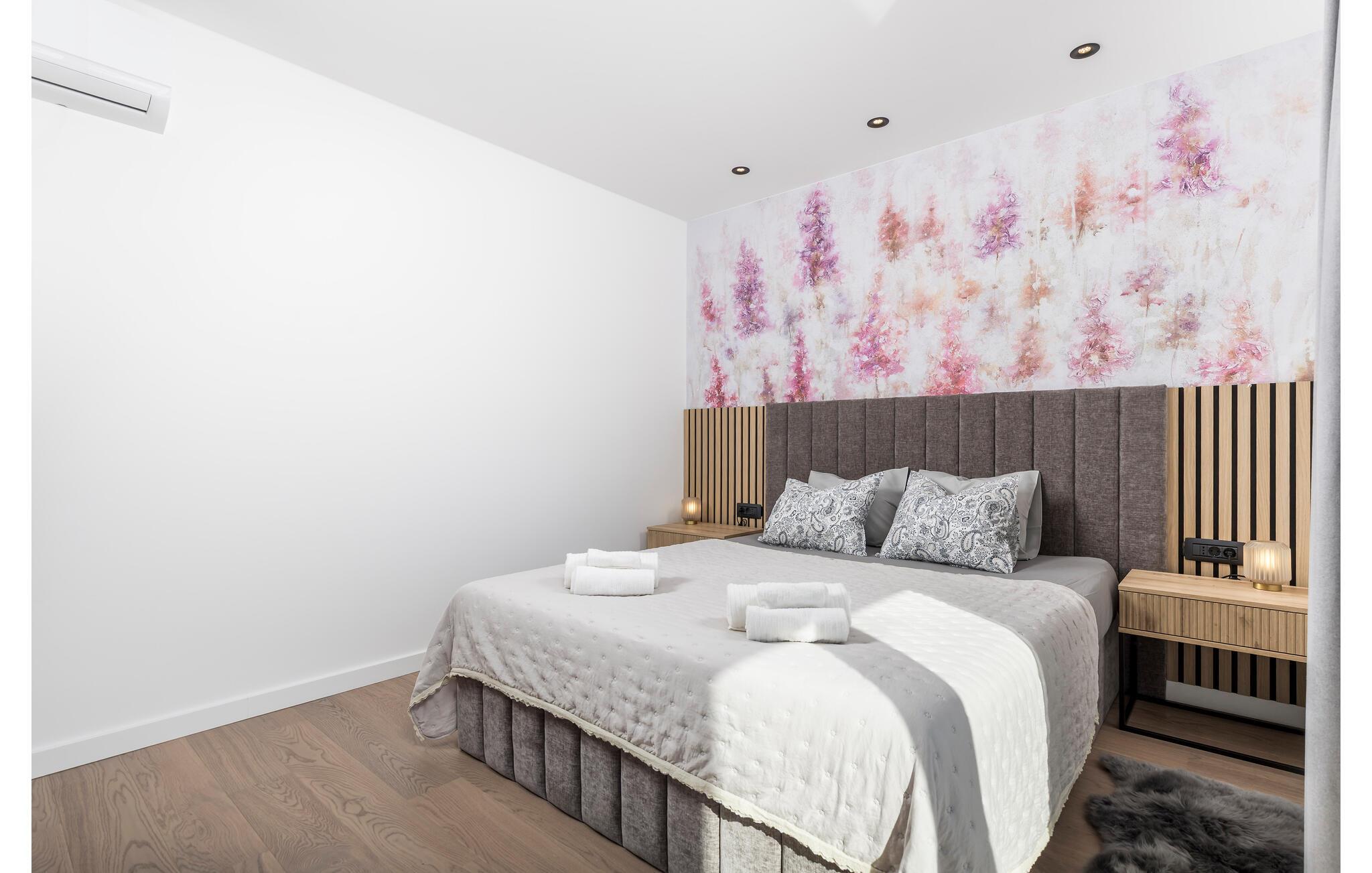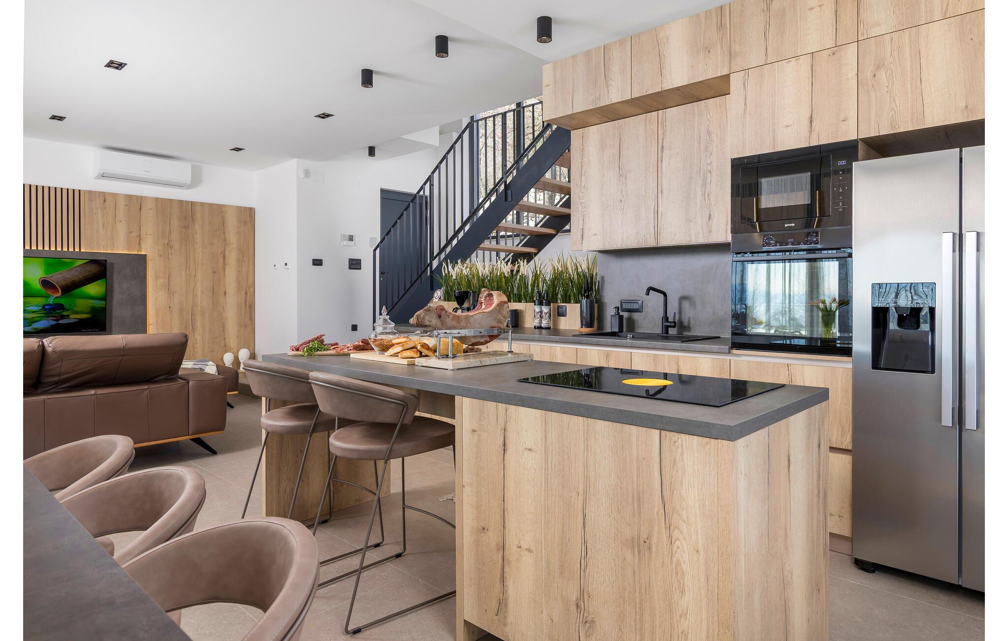 I en sublim beliggenhed på bakkerne over den berømte Opatija kan I nyde en sensationel udsigt over Kvarner-bugten og øerne Krk og Cres fra denne eksklusive bolig. Det højkvalitets og smagfulde interiør flyder ind med lys gennem gulv til loft vinduer og skaber en elegant, indbydende atmosfære. Nyd hyggelige aftener ved det rummelige spisebord eller slap af på den komfortable sofa med en film. Forkæl jer selv med at slappe af i saunaen eller træne i fitnessrummet.
