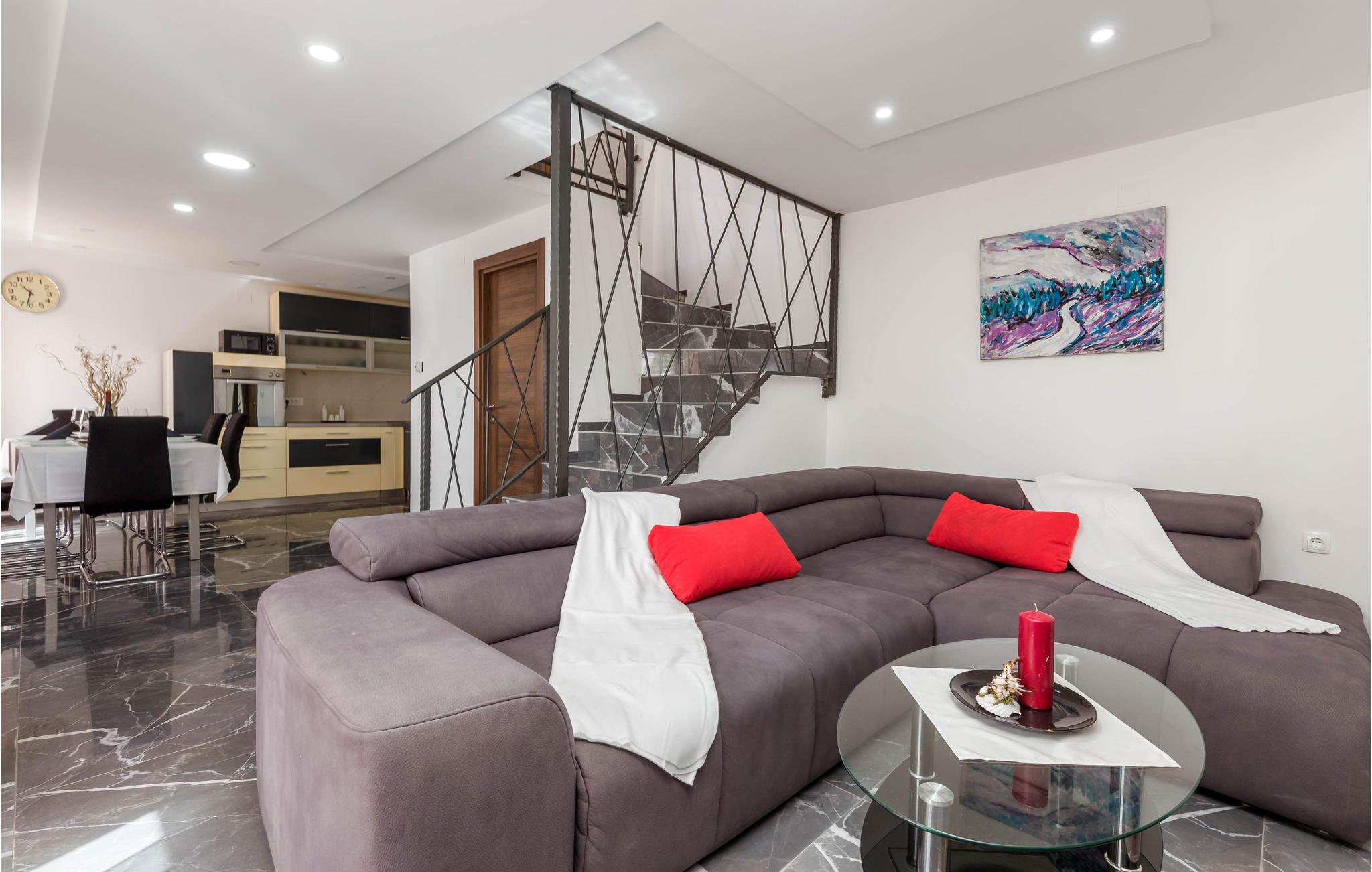 I kan tage til adskillige udflugtsmål fra dette feriehus. Spektakulære naturoplevelser ligger i Ucka Naturpark. Gå en tur gennem gaderne i den historiske by Kastav, slentre langs Lungomare-kystpromenaden i Opatija, besøg den charmerende havneby Rijeka, og I kan også hurtigt nå øen Krk via broen til fastlandet.