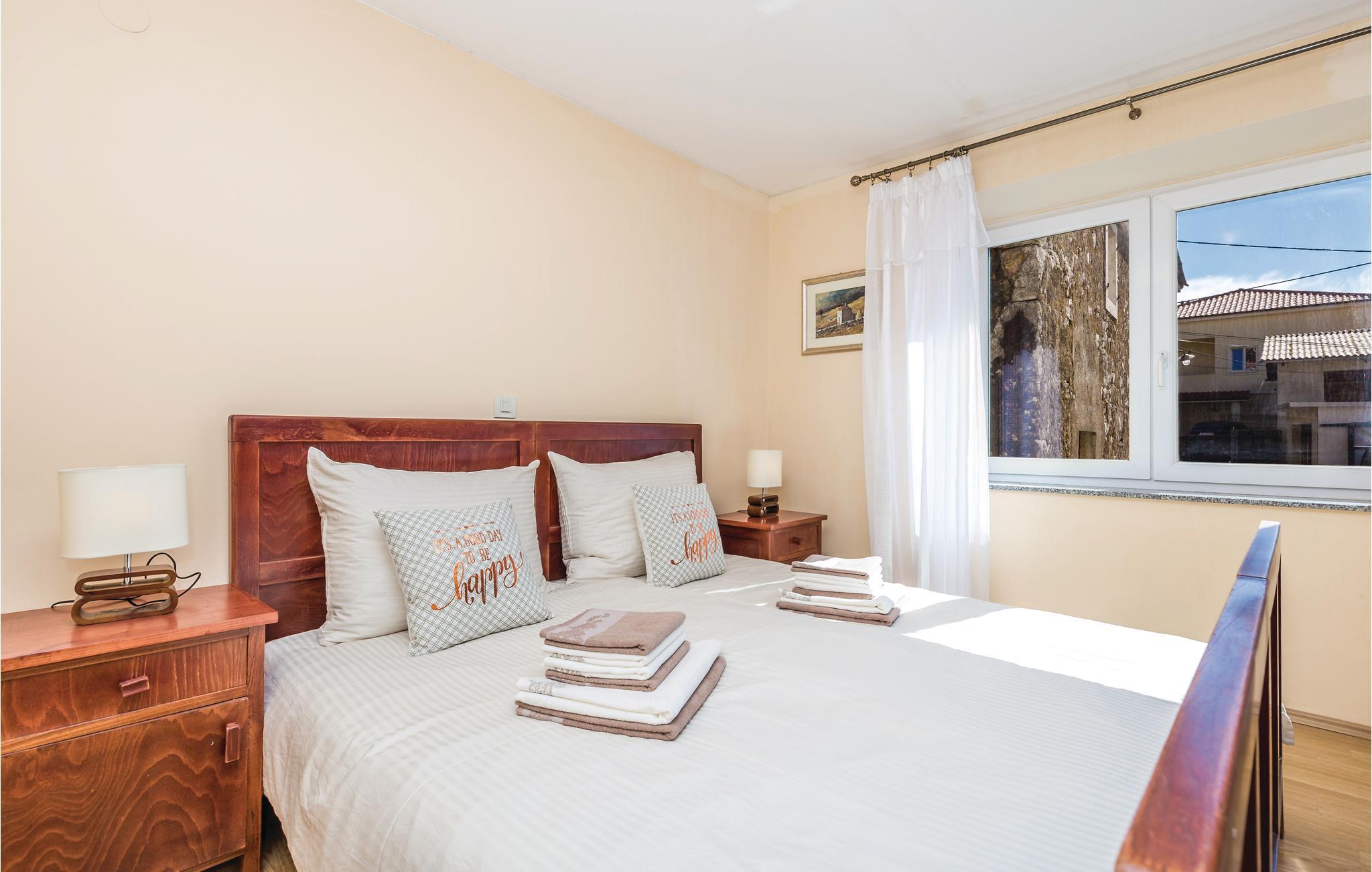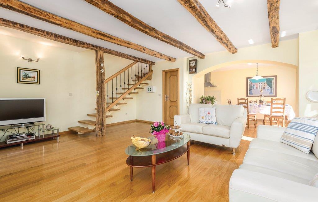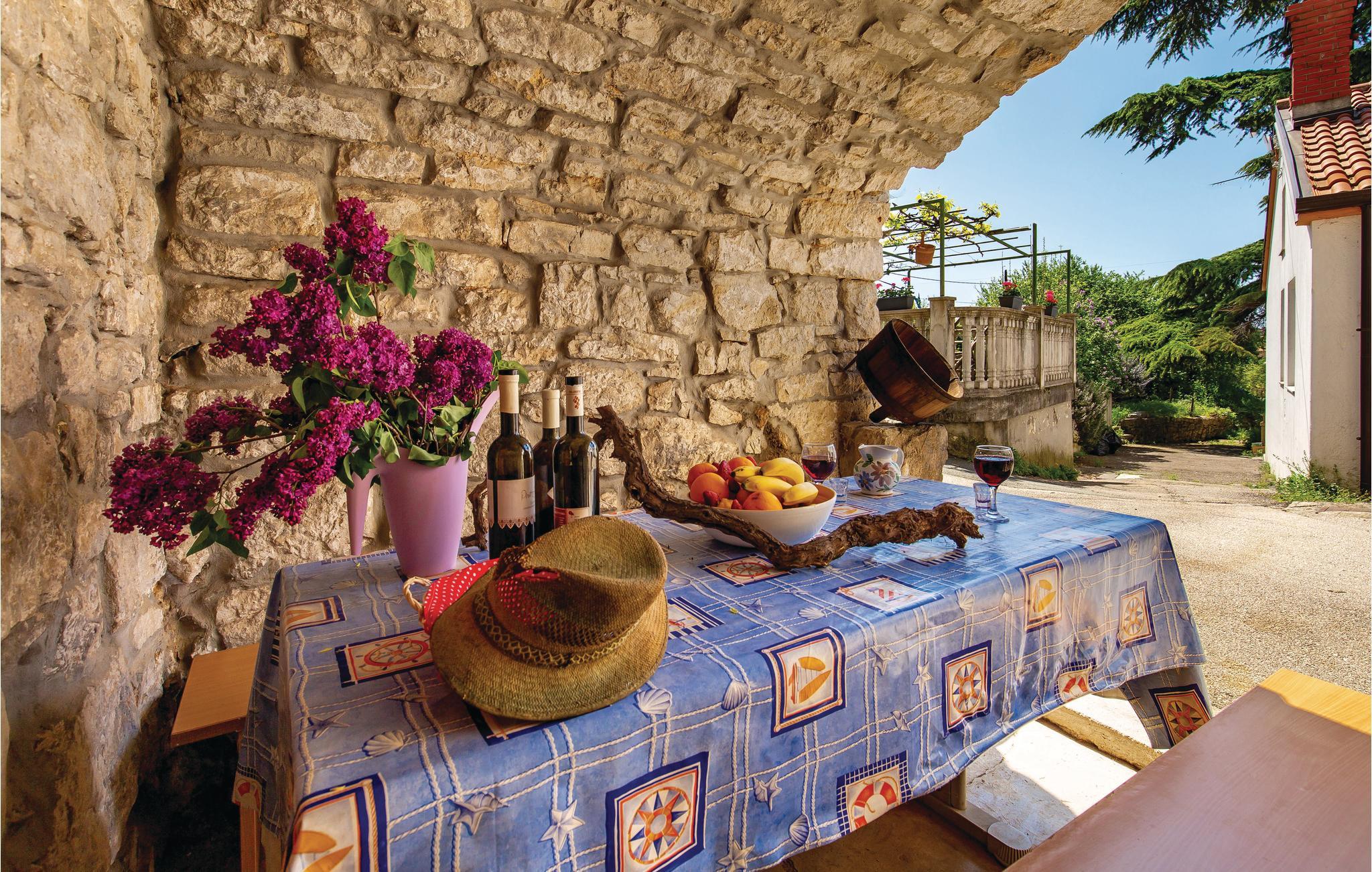 Ovenover den betagende Kvarnerbugt, bagved Opatija, ligger denne smukt indrettede halvdel af et dobbelthus med 3 etager. I stueetagen er der en rustikt indrettede stentavernee med separat indgang udfra. 1. og 2. sal med indvendig trappe rummer dagligstuen med køkken, toilet, tre soveværelser og et badeværelse. Moderne, komfortable indretning, der er jeres garanti for en behagelig ferie. Der står to terrasser og en grill til rådighed. Huset er ideelt til naturelskere. Husejeren arrangerer vinsmagninger og deltagelse i vinhøsten om efteråret. I det praktiske badeværelse er der både en brusekabine og et badekar.