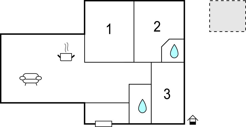 Badeværelse 6m2 (nr. 1) - WC. Varmt og koldt vand. Bruser