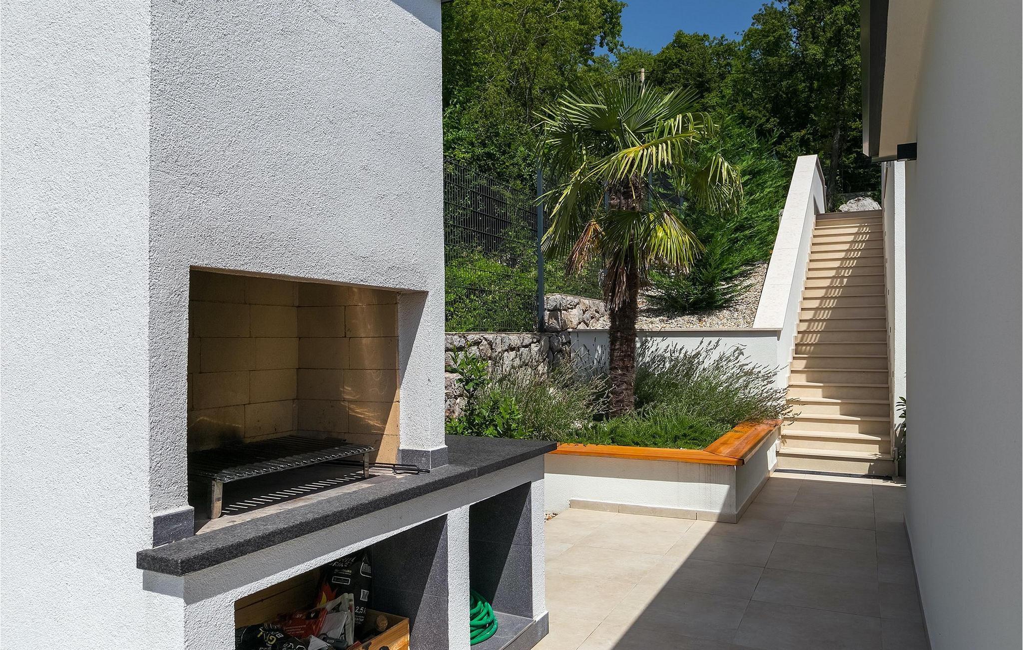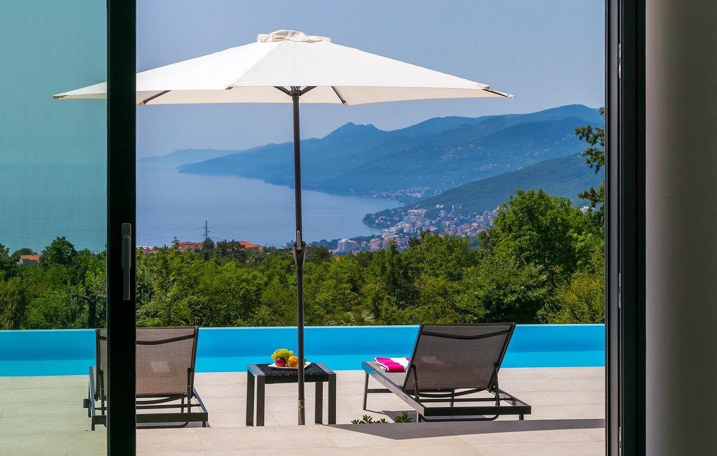 Denne fantastiske villa vil forbløffe dig med sit moderne design og sin fantastiske havudsigt, med udsigt over Opatija og Kvarner-bugten. Villaen ligger på en 1400 m2 stor grund og består af 4 soveværelser, alle beliggende på øverste etage og med eget badeværelse, tv og aircondition, hvilket gør det til et perfekt feriehus, der byder på optimal komfort for 8 gæster. Stueetagen er et meget stilfuldt indrettet åbent rum, der består af spise- og opholdsstue og et rummeligt fuldt udstyret køkken. Her er også et separat værelse med jacuzzi, bruser og sauna samt et værelse med poolbord til lidt mere underholdning. Stuen er forbundet direkte til terrassen, hvor du kan nyde den drømmeagtige udsigt fra den private pool eller fra det hyggelige loungeområde. En udendørs spiseplads med kulgrill er også til din rådighed. Denne funktionelle villa tilbyder alt, hvad du behøver for en afslappende og sjov ferie, mens beliggenheden giver dig mulighed for at opdage alle skønhederne i Kvarner-regionen. Denne smukke villa er beliggende nær den lille by Kastav, kun ca. 6 km fra Opatija og 10 km. fra Rijeka. Rijeka er kendt som Kroatiens største havn, men også for sine mange restauranter, caféer, klubber, barer og arrangementer. Oplev bystemningen ved at gå en tur langs Korzo, udforske den gamle bydel og besøge helligdommen i Trsat på en bakke over byen Rijeka. Gå ikke glip af karnevallet i Rijeka, et af de fem største karnevaler i verden! Lufthavnen Rijeka ligger på øen Krk, kun en kort køretur fra villaen. For større oplevelse, tag en tur ned ad den smukke havnefront 'Lungo mare' og nyd romantiske solnedgangsture rundt i byen Opatija - kendt som "Adriaterhavets perle".