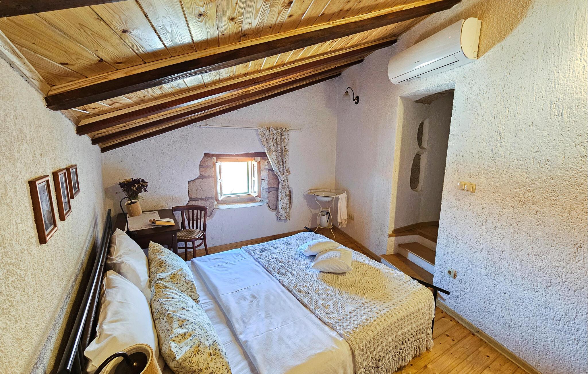 Dette smukke og traditionelt indrettede feriehus i to etager ligger i en lille, hyggelig landsby kun fem minutters kørsel fra Lovran. Det er omgivet af smuk natur og er ikke langt fra havet. Lovran er en kendt kurby og ligger i nærheden af den større kystby Opatija. Området byder på en masse underholdningsmuligheder og perfekte forhold for en skøn sol- og badeferie.
