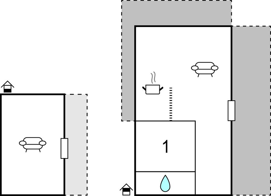 Komb. spisestue/køkken - 1 Soveplads. (Sofa, madras eller lignende).