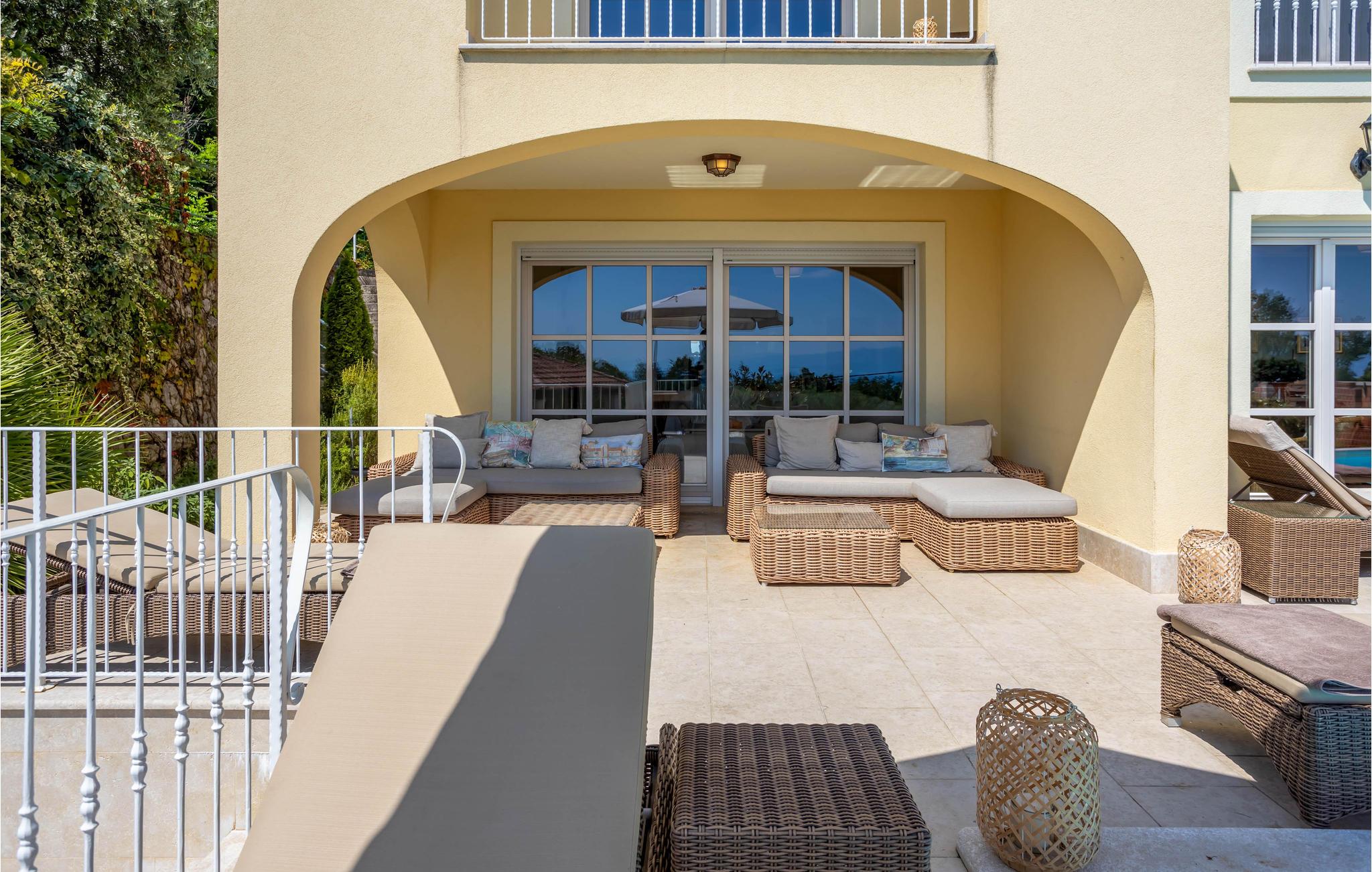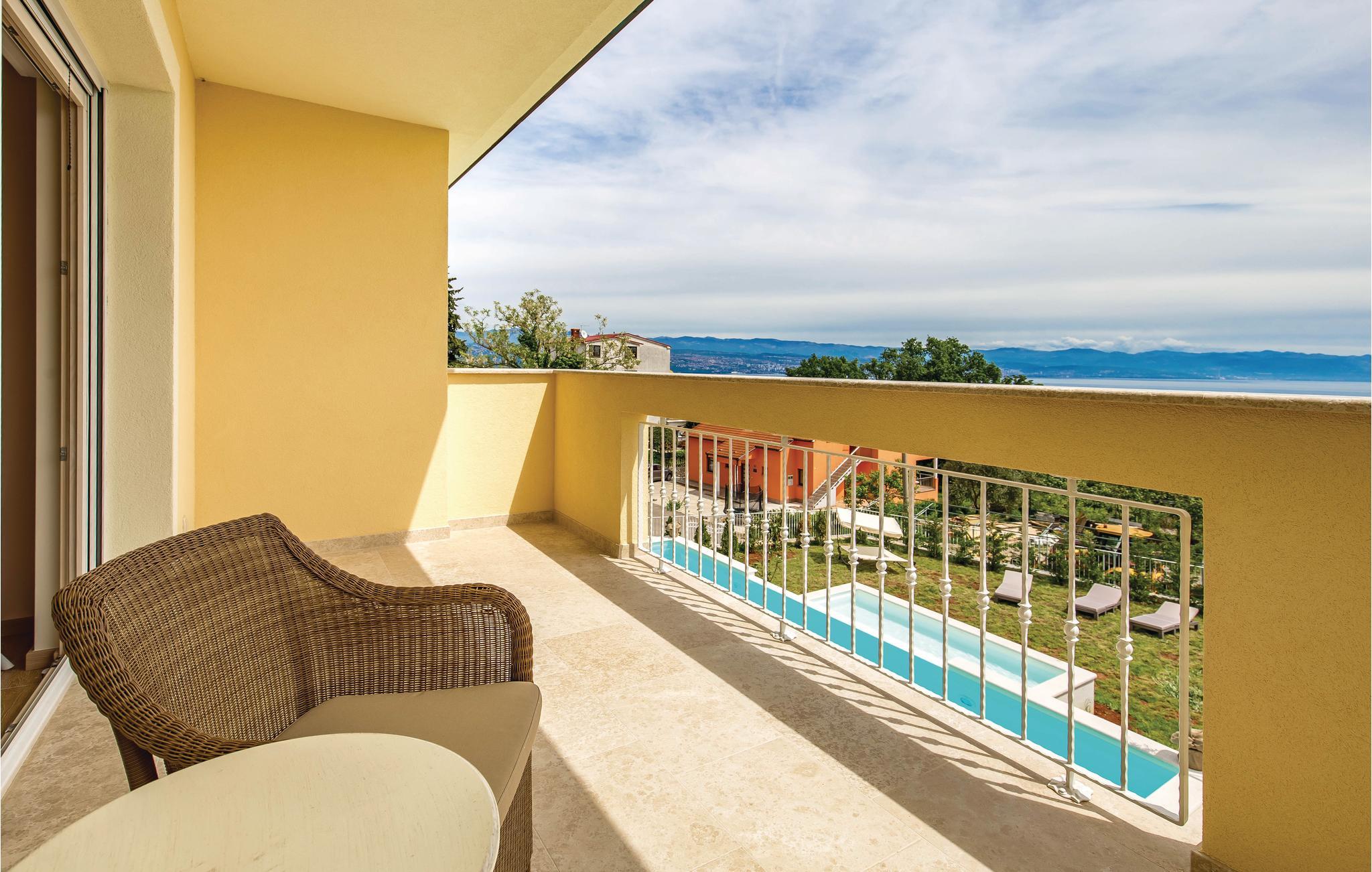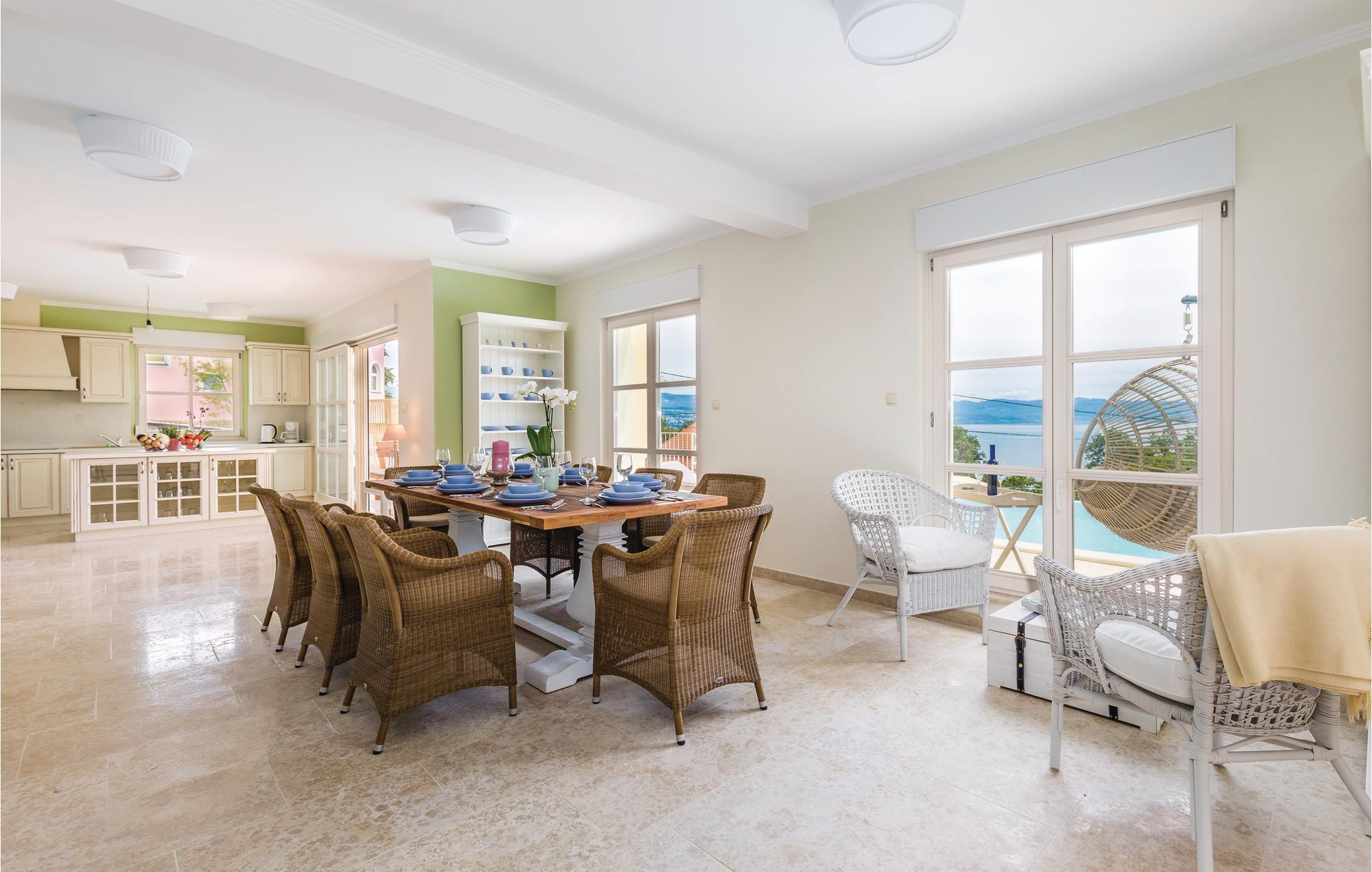 I fremragende beliggenhed i byen Lovran med fantastisk udsigt over havet og Kvarnerbugten ligger dette dejlige feriehus. Huset er lyst, komfortabel og smagfuldt indrettet. Hvert soveværelse har et badeværelse en suite. Udenfor er der en infinity pool, egentlig er der to swimmingspools – en til de voksne og en til børnene, en overdækket pavillon med grill og havemøbler. Nyd solen og får en dejlig afkøling, mens børnene leger. I souterrain er der indrettet en taverne. Der er et TV i hvert værelse og husets gæster har fri internetforbindelse. Gå på opdagelse i området og nyd de vidunderlige strande ved Opatijas riviera. En dejlig ferie, som I gerne vil huske tilbage på.