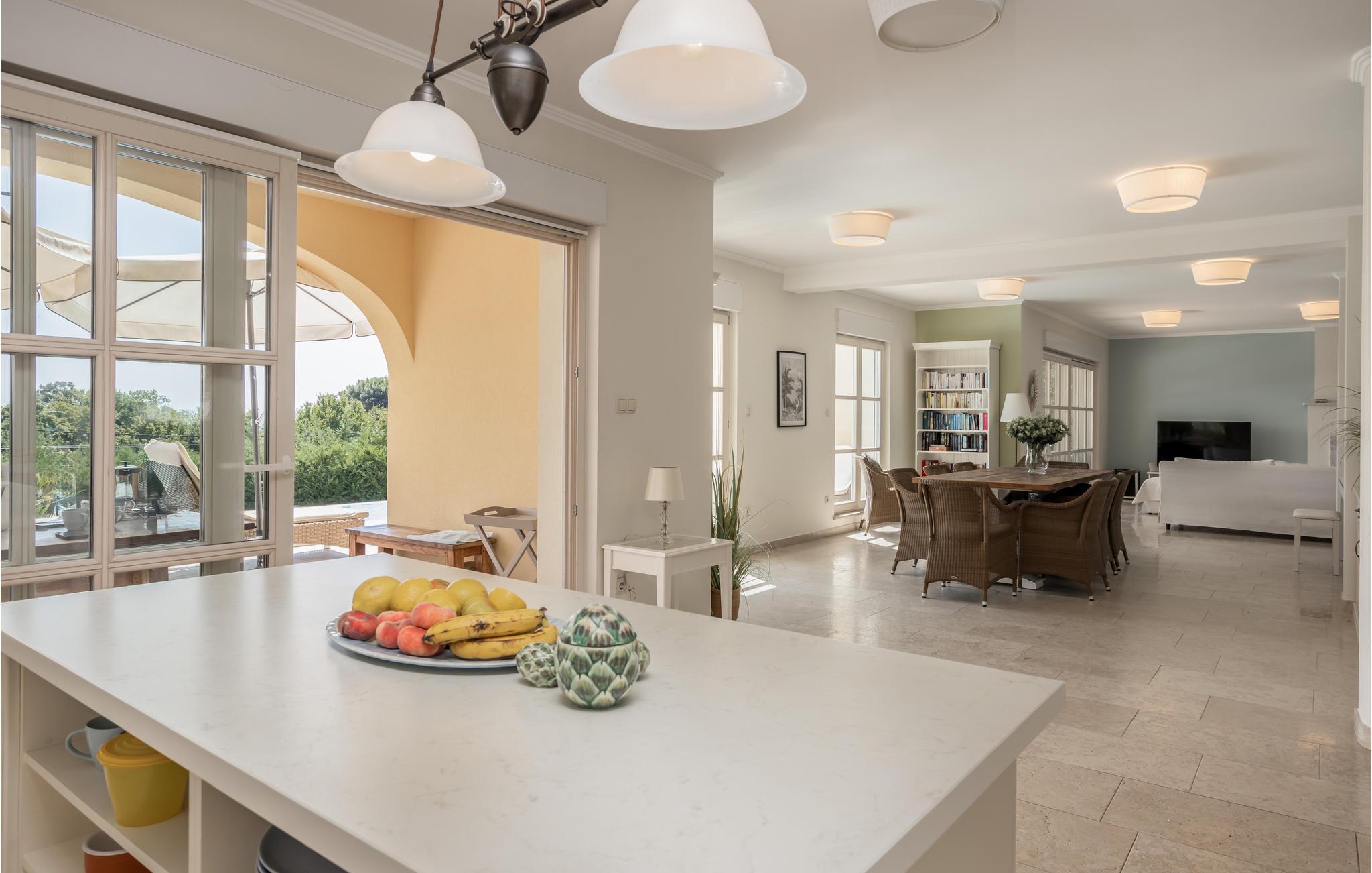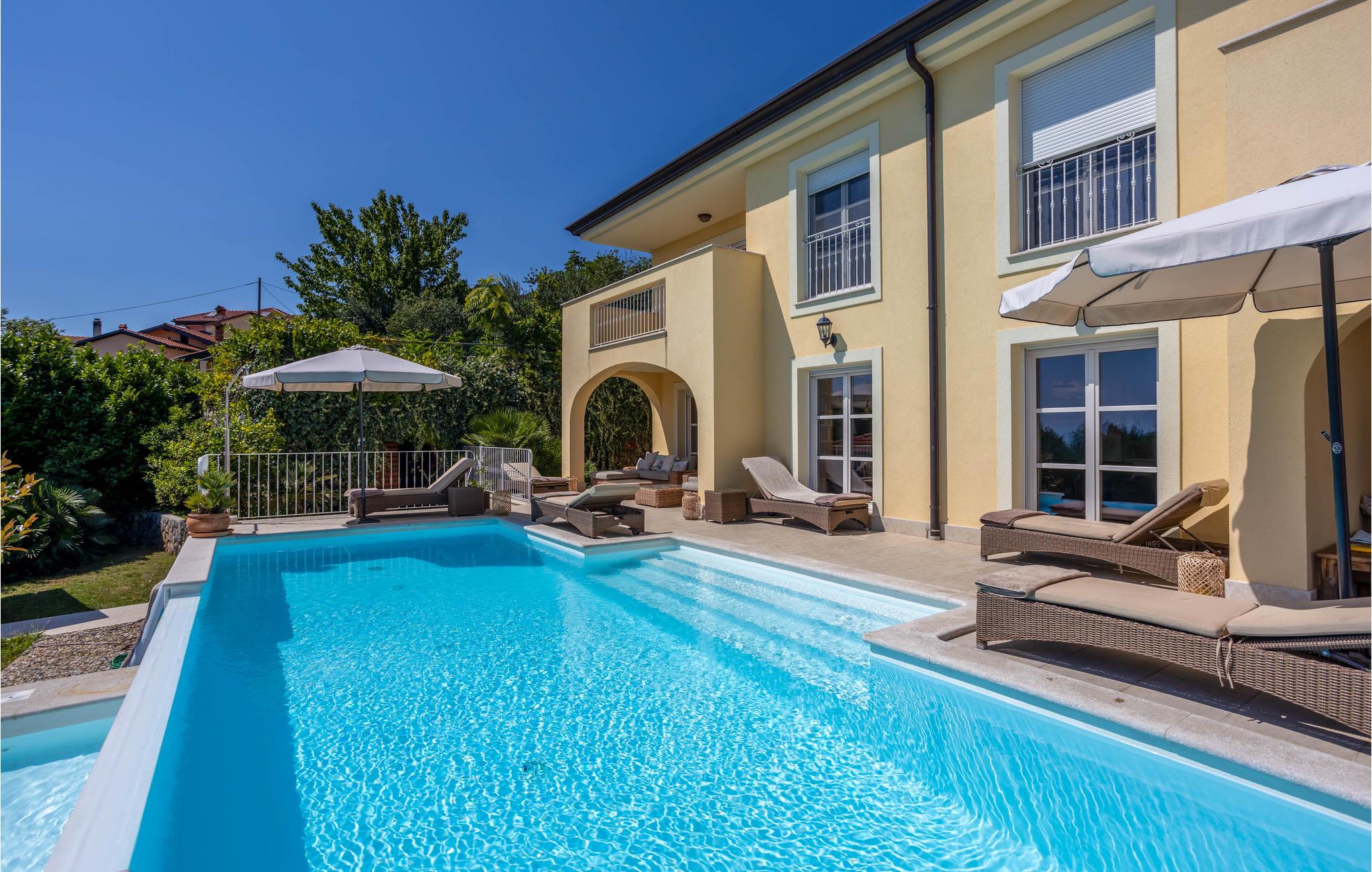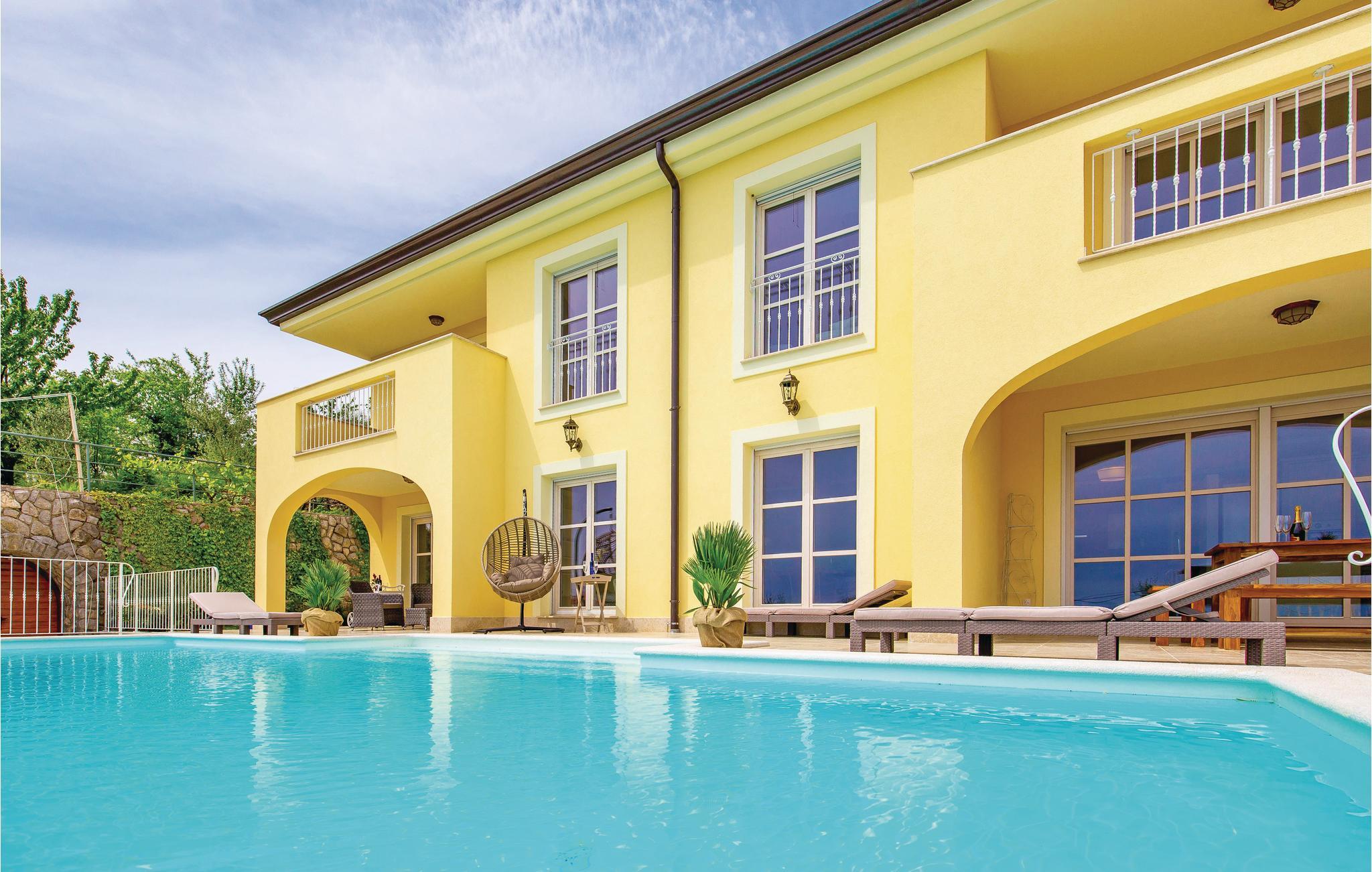 I fremragende beliggenhed i byen Lovran med fantastisk udsigt over havet og Kvarnerbugten ligger dette dejlige feriehus. Huset er lyst, komfortabel og smagfuldt indrettet. Hvert soveværelse har et badeværelse en suite. Udenfor er der en infinity pool, egentlig er der to swimmingspools – en til de voksne og en til børnene, en overdækket pavillon med grill og havemøbler. Nyd solen og får en dejlig afkøling, mens børnene leger. I souterrain er der indrettet en taverne. Der er et TV i hvert værelse og husets gæster har fri internetforbindelse. Gå på opdagelse i området og nyd de vidunderlige strande ved Opatijas riviera. En dejlig ferie, som I gerne vil huske tilbage på.