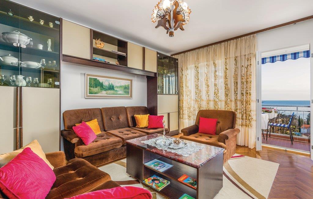 Denne komfortable lejlighed ligger på tredje sal i en boligbygning nær stranden i Lovran og har en balkon, hvor du kan glæd dig til at nyde din morgenkaffe sammen med den smukke havudsigt.