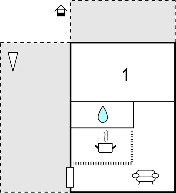 Opholdsstue/køkken 21m2 - 1 Soveplads. (Sofa, madras eller lignende).