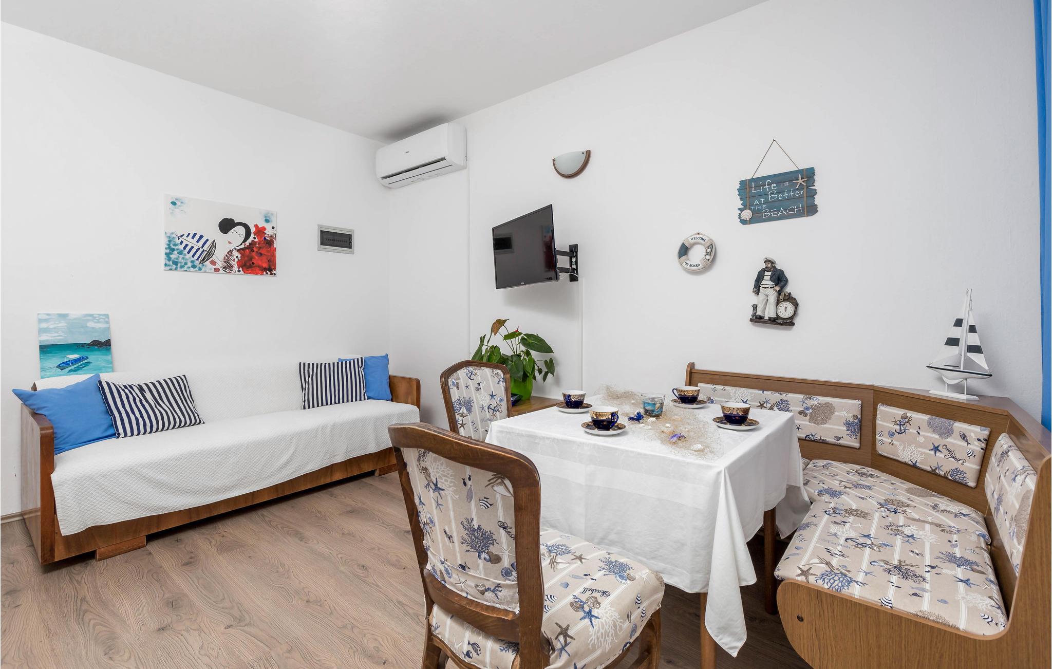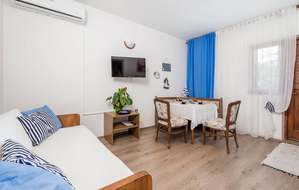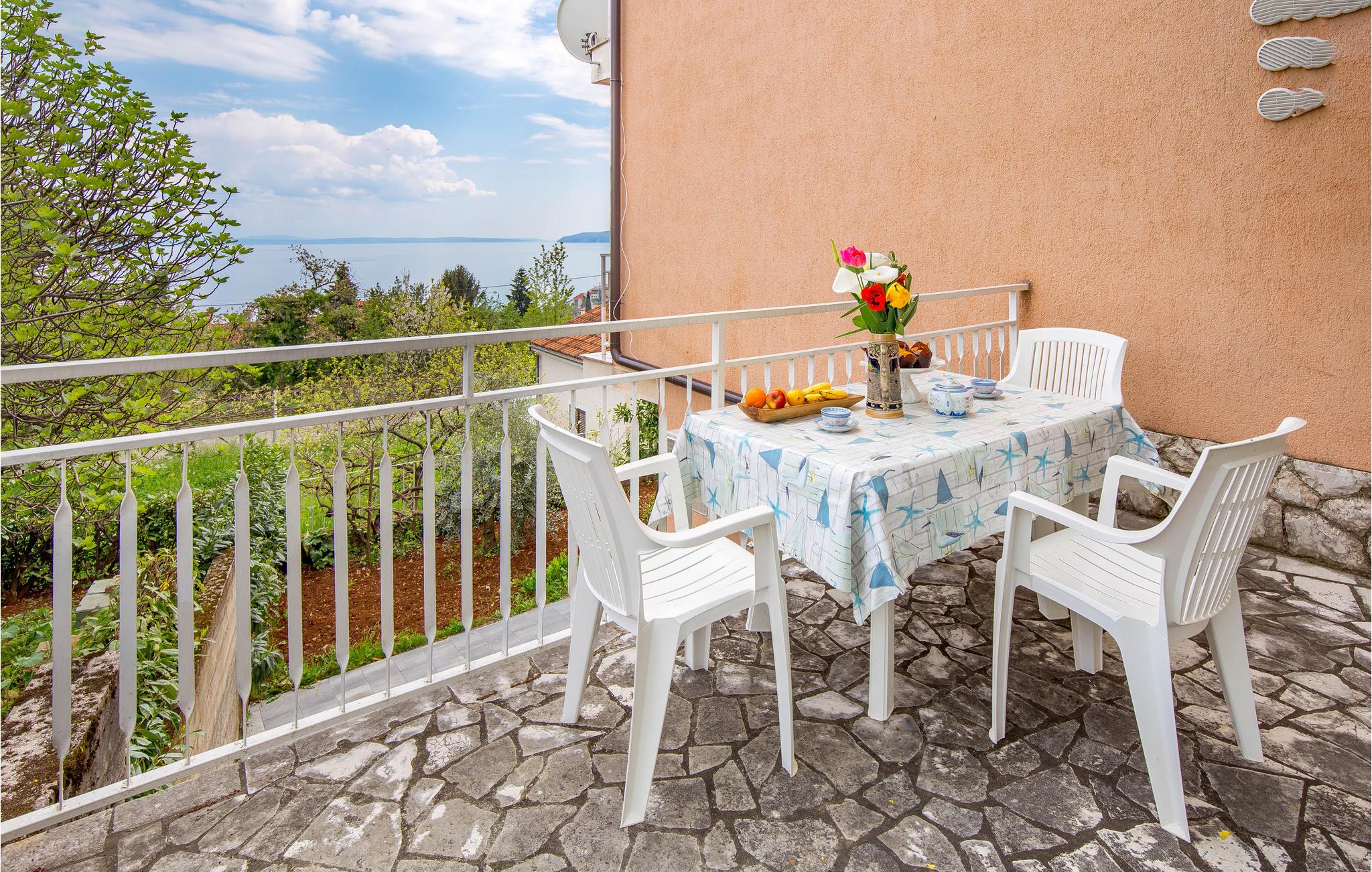 Denne praktiske, lille lejlighed ligger i Lovran. Her kommer I til at bo i dejligt grønne omgivelser og får samtidig alt, hvad I skal bruge til en ferie, hvor I ikke skal bekymre jer om noget. Der er gode rammer til at slappe af og nyde livet både ude og inde, så glæd jer til at sætte jer med brætspil og dagens måltider enten rundt om spisebordet eller på terrassen. Nyd dagens første kop kaffe om morgenen på balkonen og planlæg dagens aktiviteter, mens I kigger ud på havet.