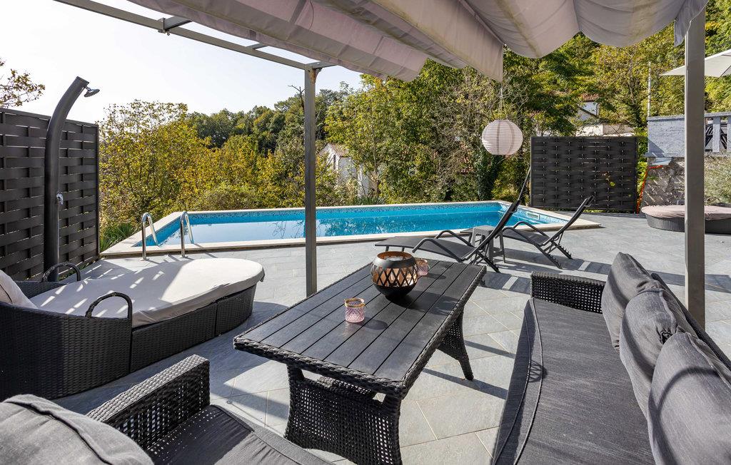 Skønt hus med swimmingpool og en smuk panoramaudsigt over Kvarnerbugten, det blå hav og Opatija Riviera.