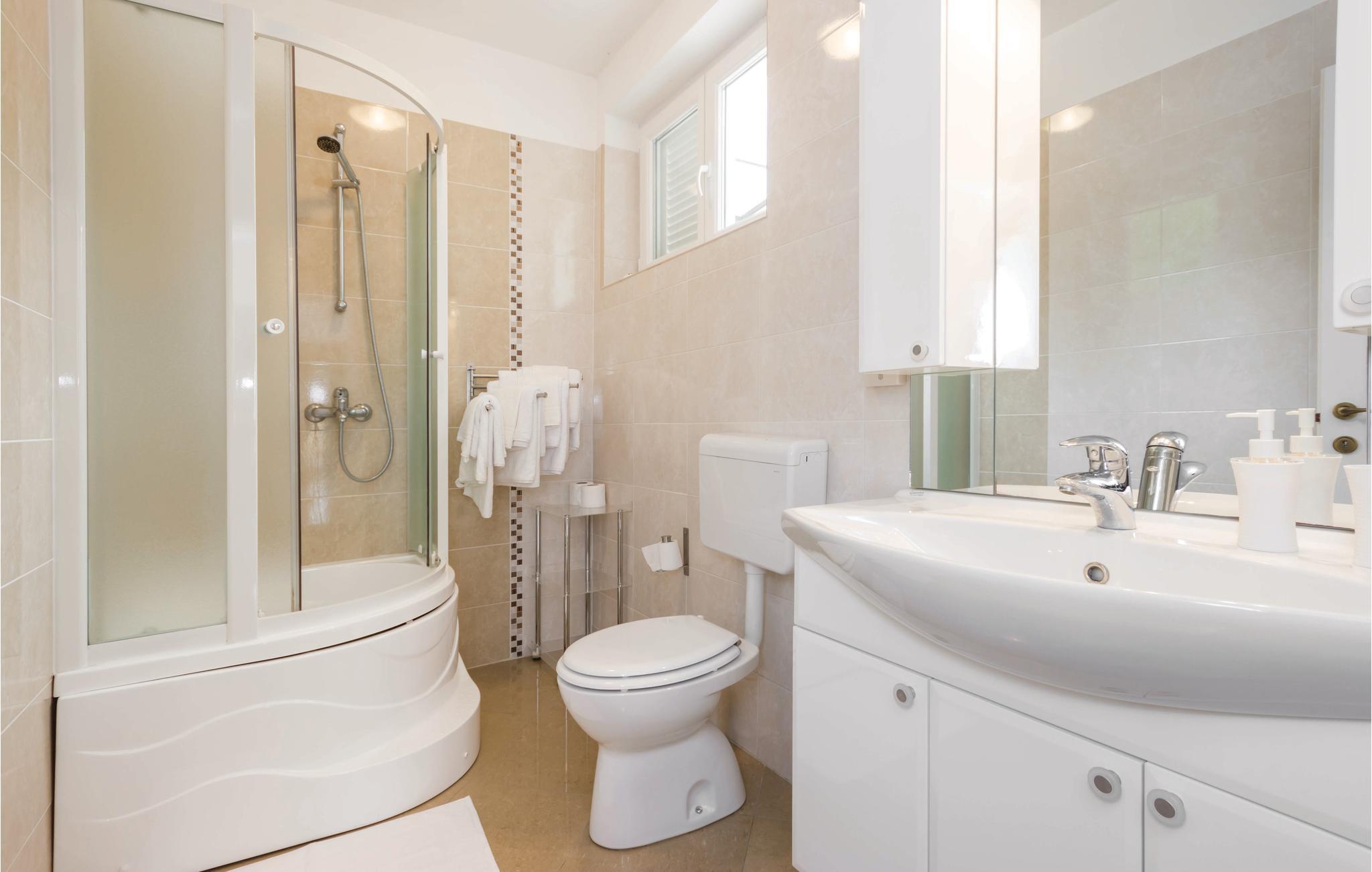 Badeværelse (nr. 1) - WC. Varmt og koldt vand. Bruser