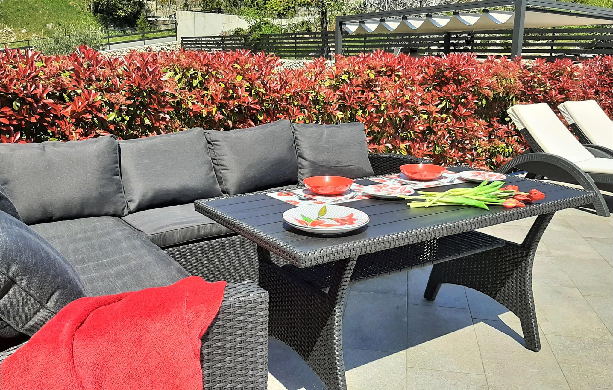Tag hele familien eller gode venner med på ferie i dette skønne feriehus med pool, som er indrettet moderne til en komfortabel ferie.