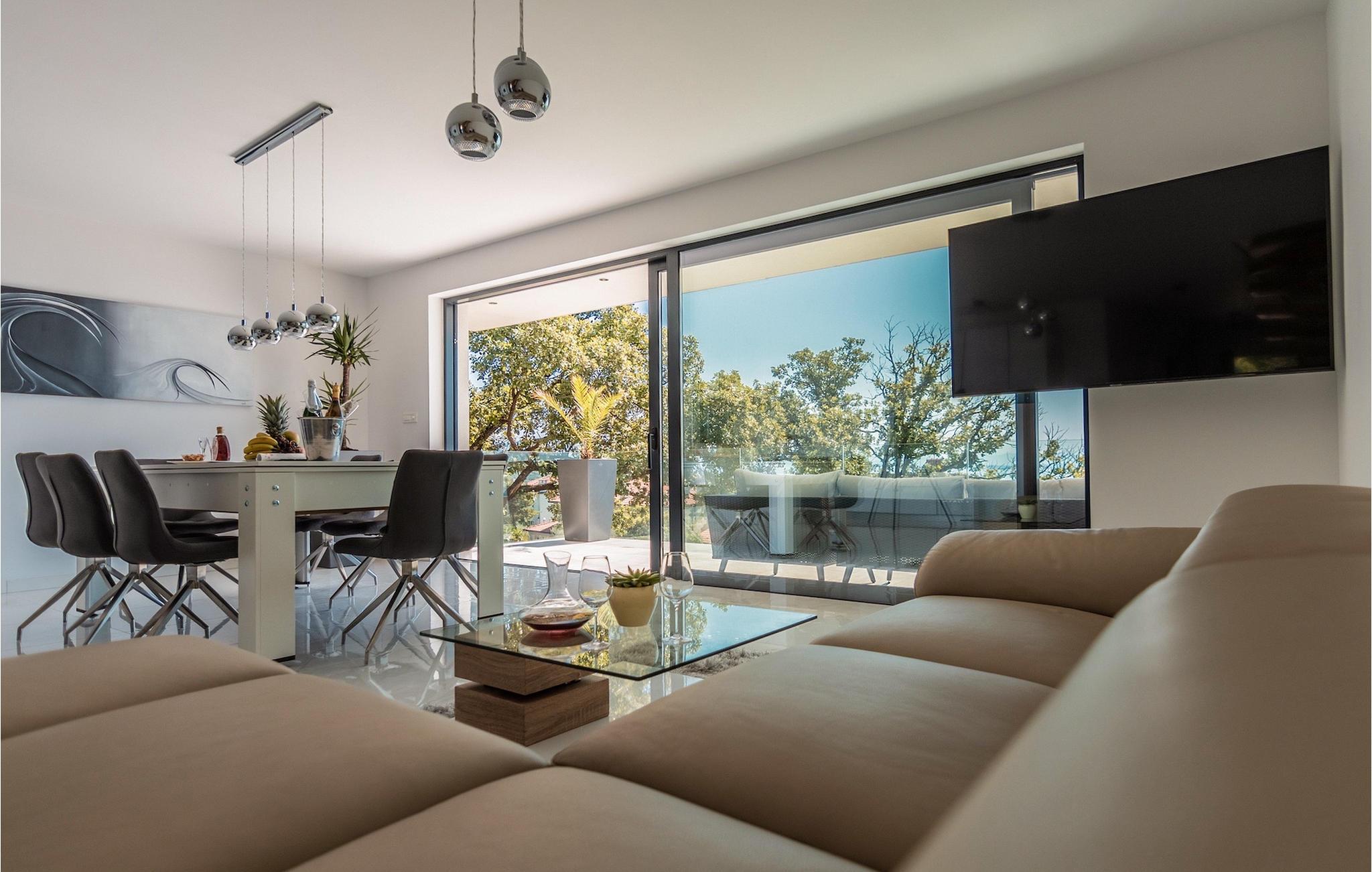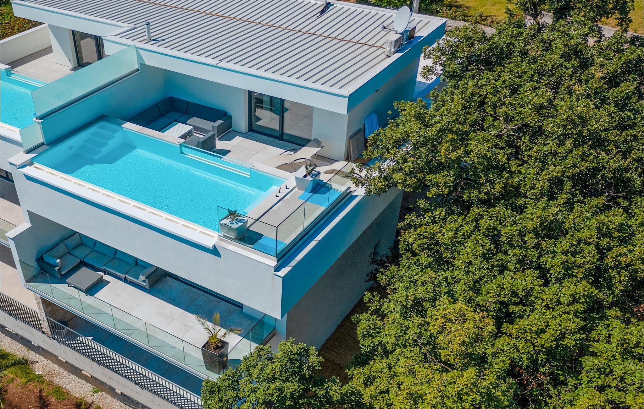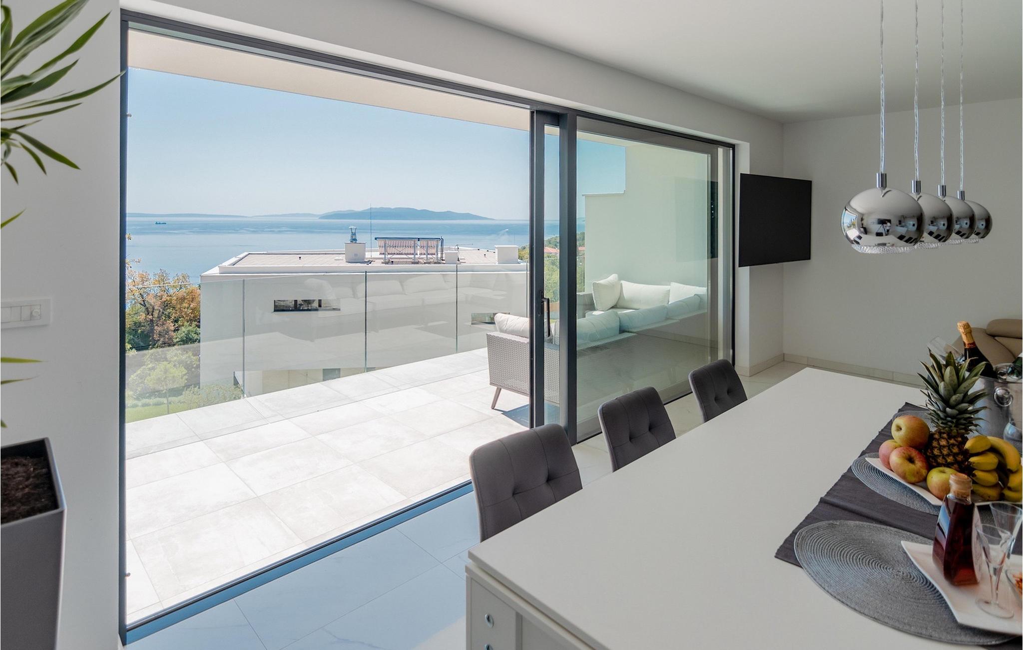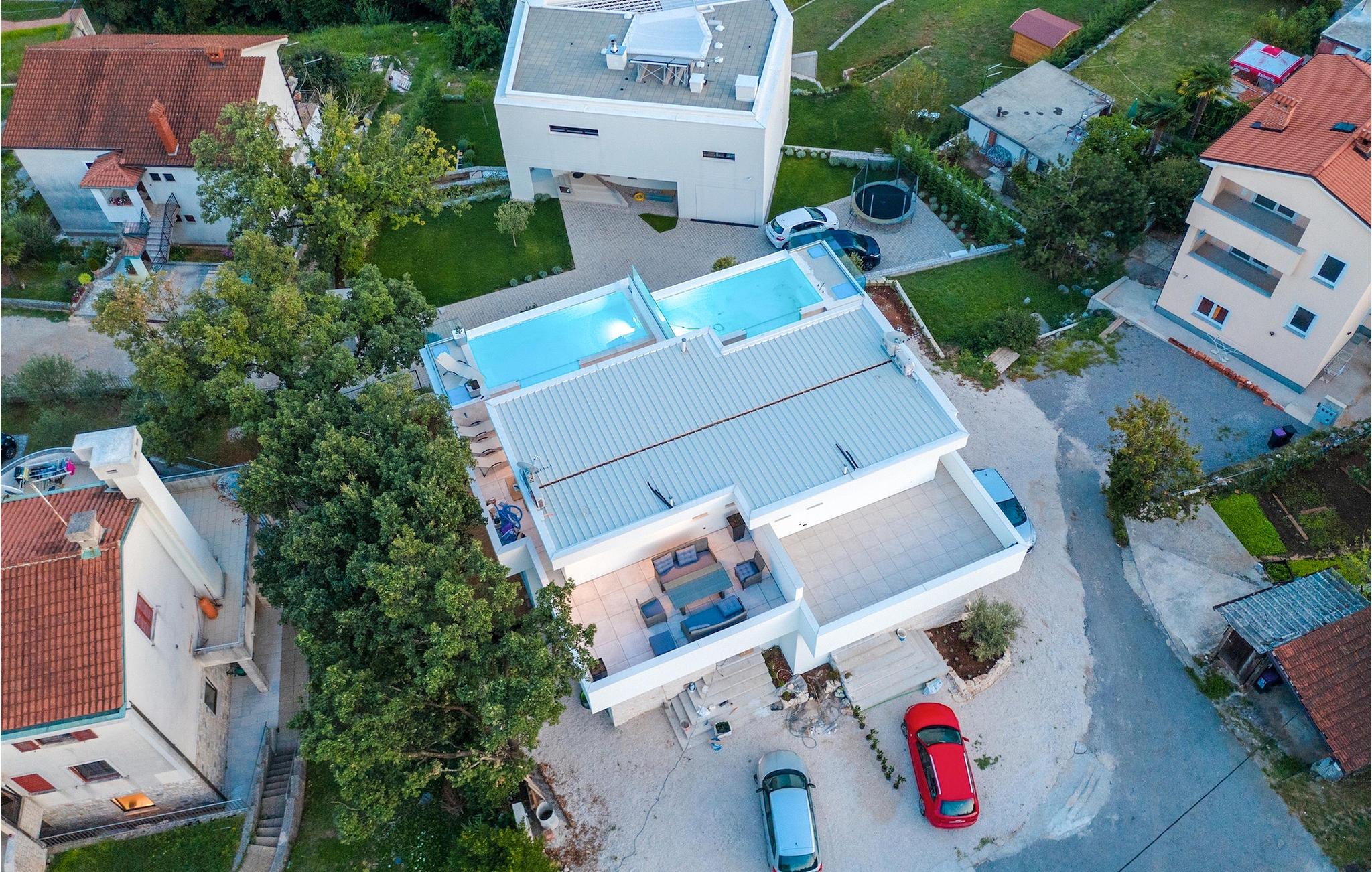 Villaen består af 3 etager. I stueetagen er der to soveværelser med dobbeltsenge, begge med eget badeværelse, TV og aircondition. På første sal finder du en moderne stue forbundet med et fuldt udstyret køkken og spisestue samt et badeværelse. Spisebordet konverteres nemt til et poolbord for alle gæster, der leder efter sjov. Der er også et ekstra værelse til to børn mere på denne etage - tilgængelig efter anmodning. Den imponerende trætrappe fører til et soveværelse med dobbeltseng på anden sal, også med eget badeværelse, tv og aircondition. Villa The Boat har en terrasse på hver etage, perfekt egnet til at nyde solen eller beundre stjernehimlen med familie og venner. Du vil være tilbageholdende med at forlade poolen på taget, som inviterer dig til at svømme over skyerne i Kvarnerbugten.