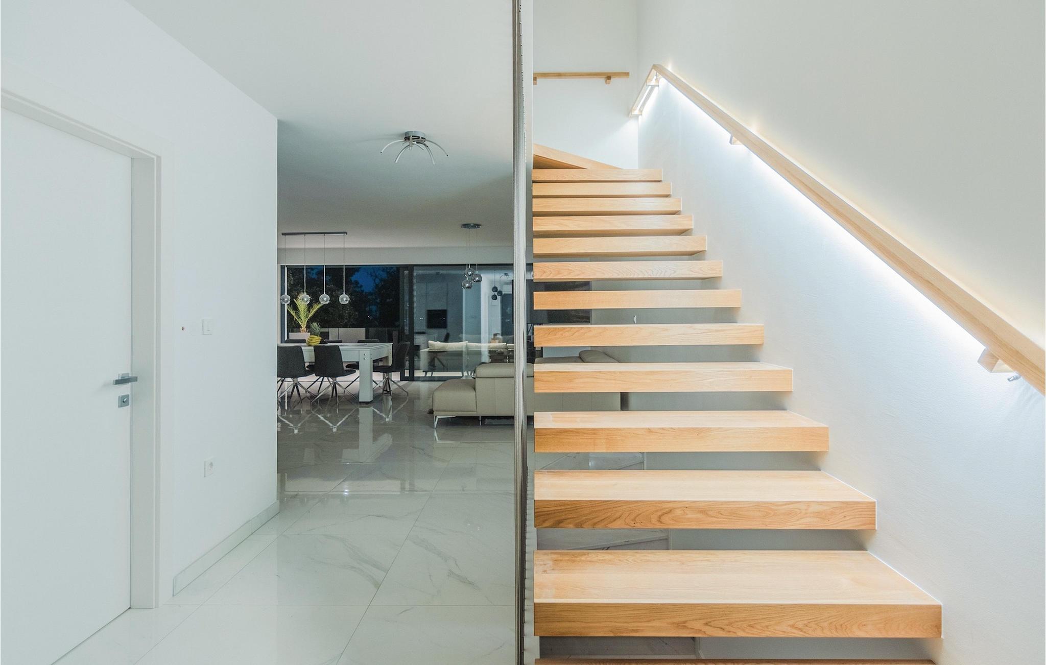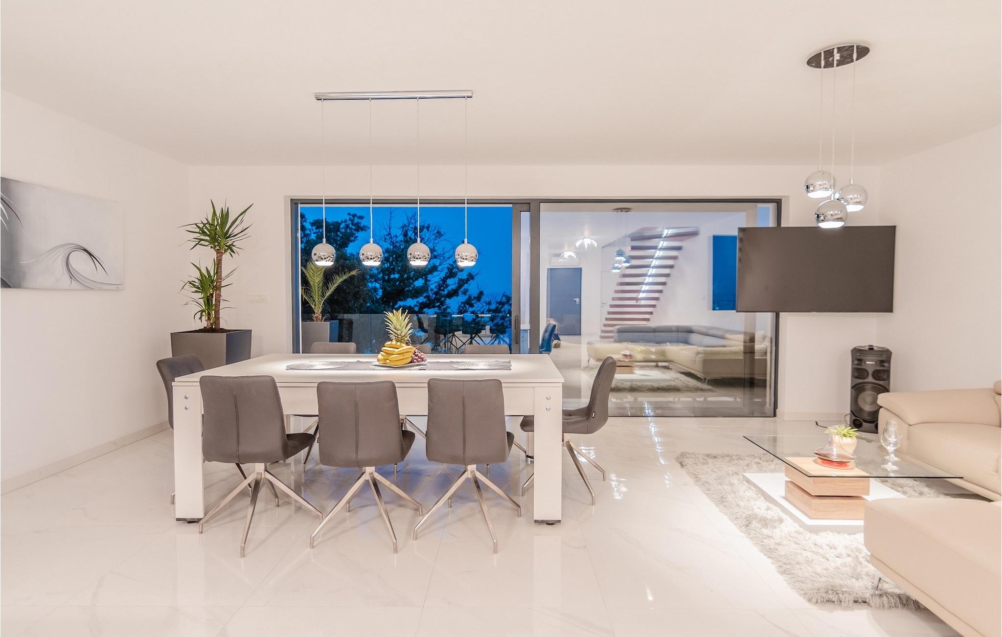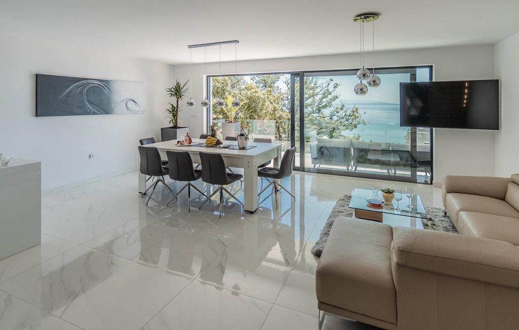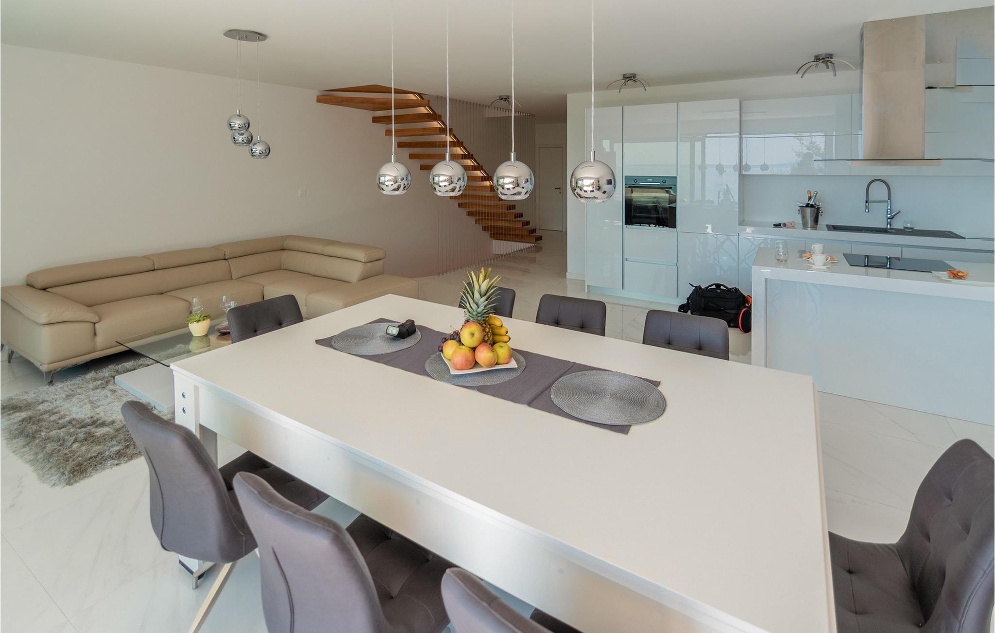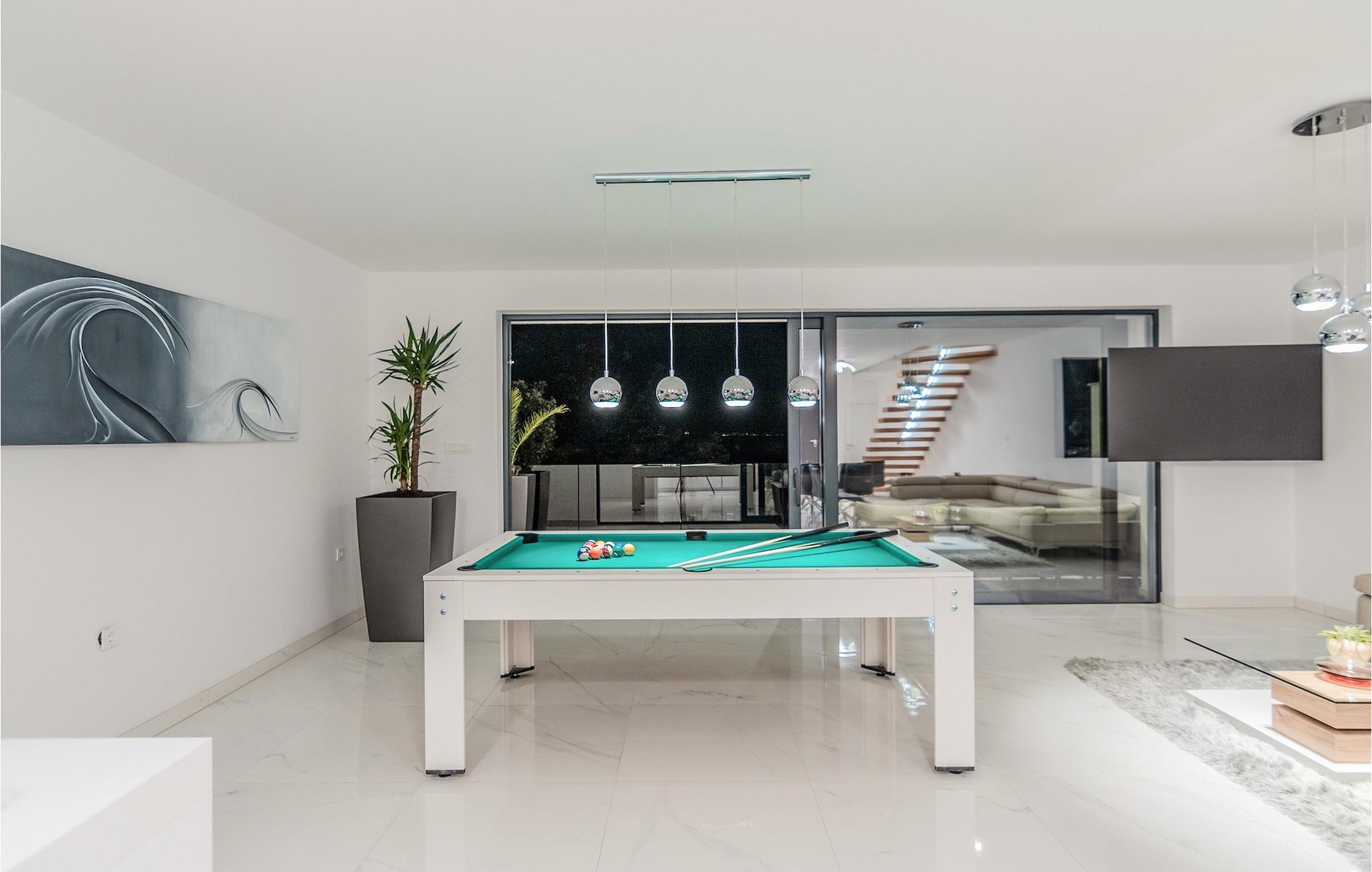Villaen består af 3 etager. I stueetagen er der to soveværelser med dobbeltsenge, begge med eget badeværelse, TV og aircondition. På første sal finder du en moderne stue forbundet med et fuldt udstyret køkken og spisestue samt et badeværelse. Spisebordet konverteres nemt til et poolbord for alle gæster, der leder efter sjov. Der er også et ekstra værelse til to børn mere på denne etage - tilgængelig efter anmodning. Den imponerende trætrappe fører til et soveværelse med dobbeltseng på anden sal, også med eget badeværelse, tv og aircondition. Villa The Boat har en terrasse på hver etage, perfekt egnet til at nyde solen eller beundre stjernehimlen med familie og venner. Du vil være tilbageholdende med at forlade poolen på taget, som inviterer dig til at svømme over skyerne i Kvarnerbugten.