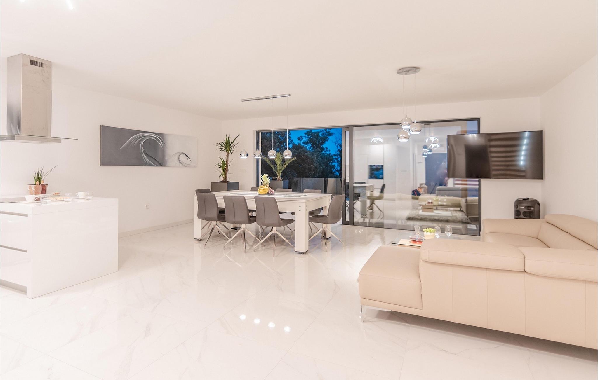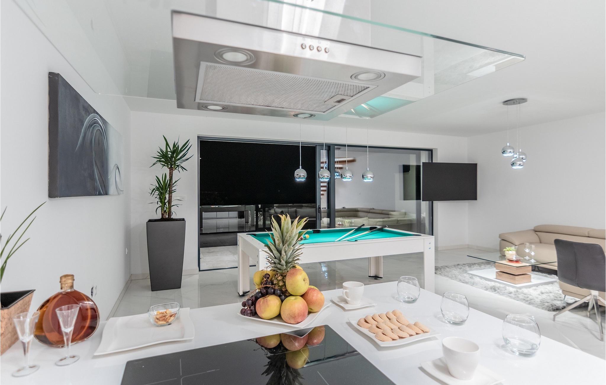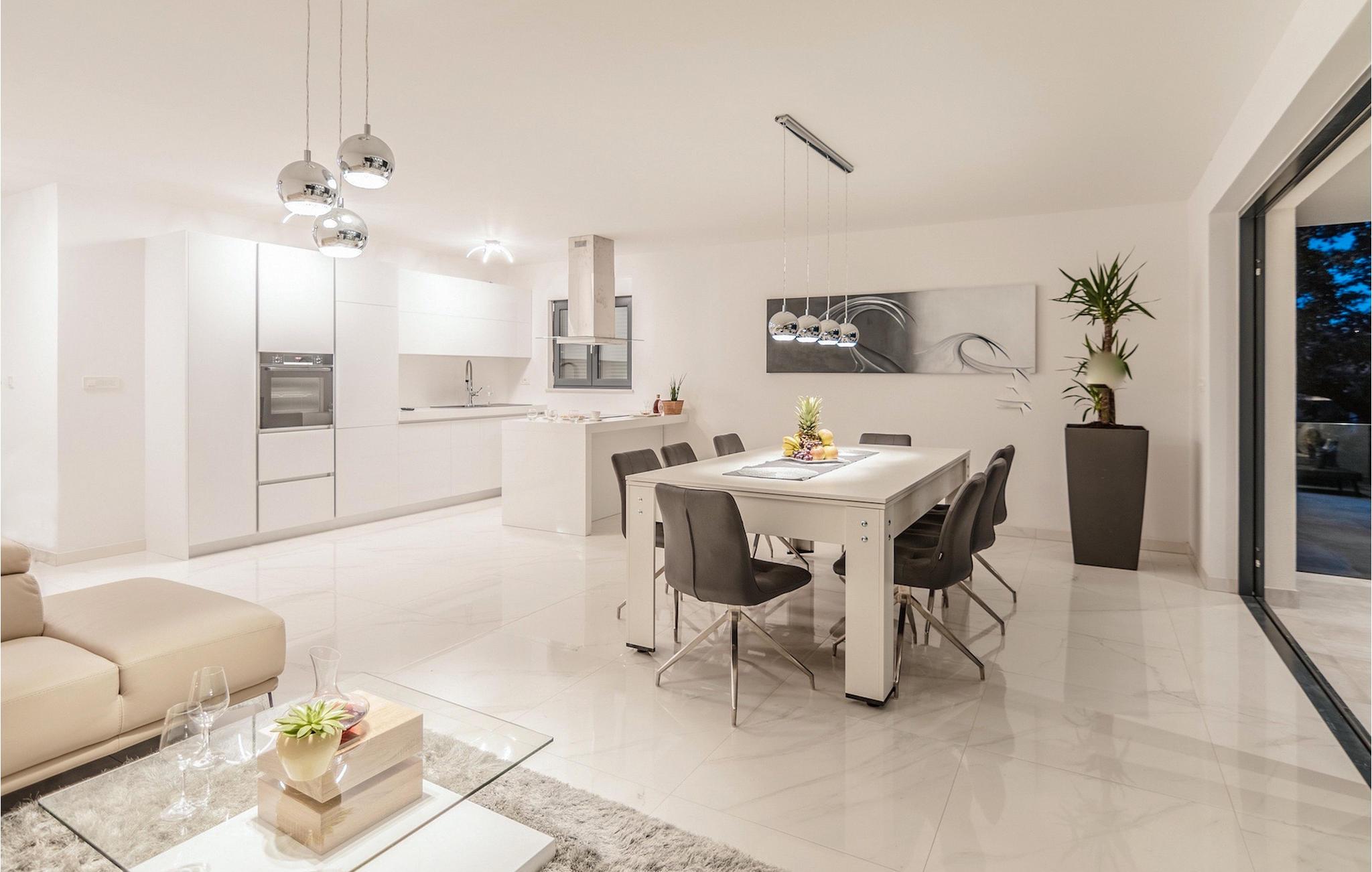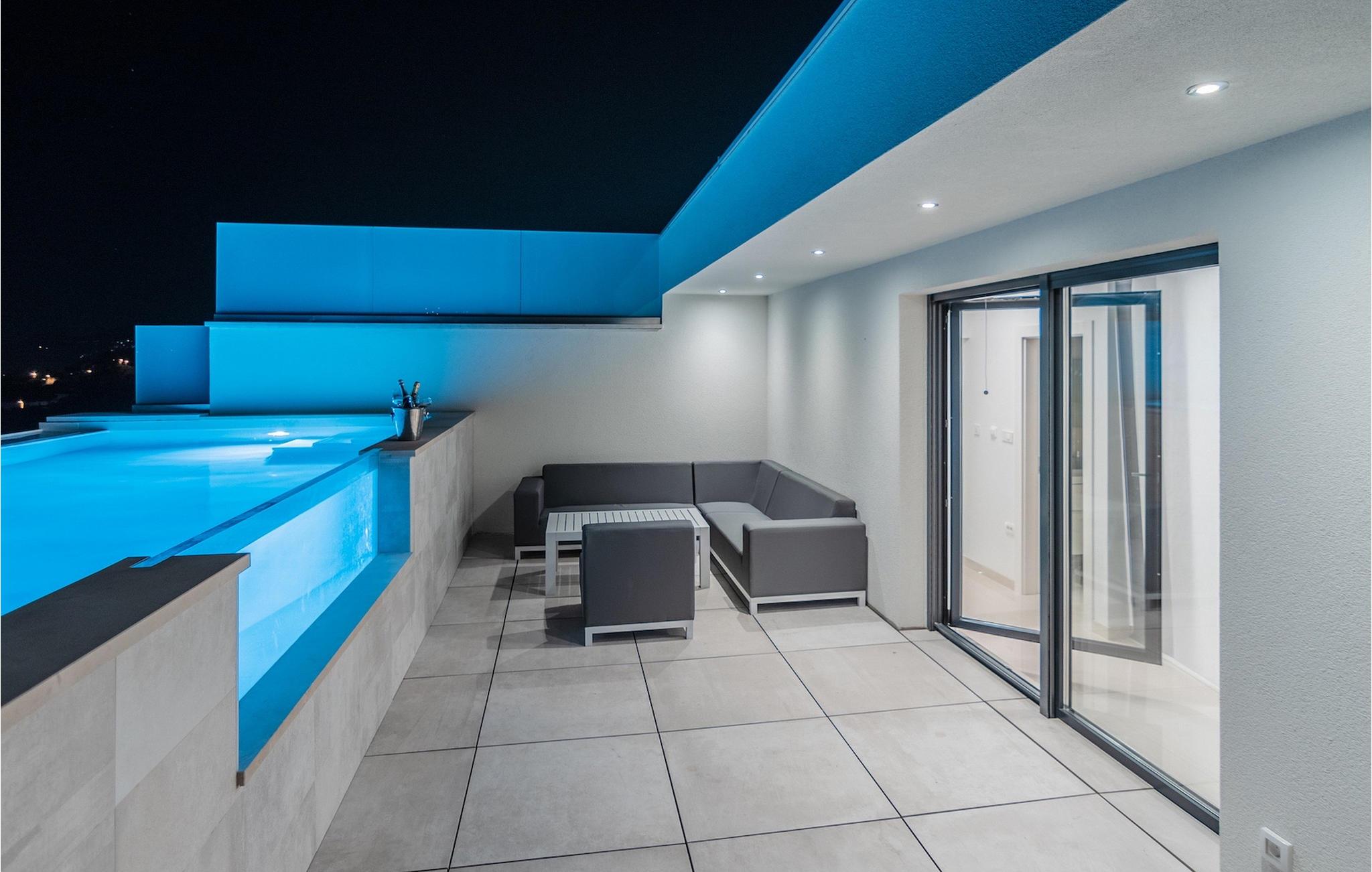 Villaen består af 3 etager. I stueetagen er der to soveværelser med dobbeltsenge, begge med eget badeværelse, TV og aircondition. På første sal finder du en moderne stue forbundet med et fuldt udstyret køkken og spisestue samt et badeværelse. Spisebordet konverteres nemt til et poolbord for alle gæster, der leder efter sjov. Der er også et ekstra værelse til to børn mere på denne etage - tilgængelig efter anmodning. Den imponerende trætrappe fører til et soveværelse med dobbeltseng på anden sal, også med eget badeværelse, tv og aircondition. Villa The Boat har en terrasse på hver etage, perfekt egnet til at nyde solen eller beundre stjernehimlen med familie og venner. Du vil være tilbageholdende med at forlade poolen på taget, som inviterer dig til at svømme over skyerne i Kvarnerbugten.