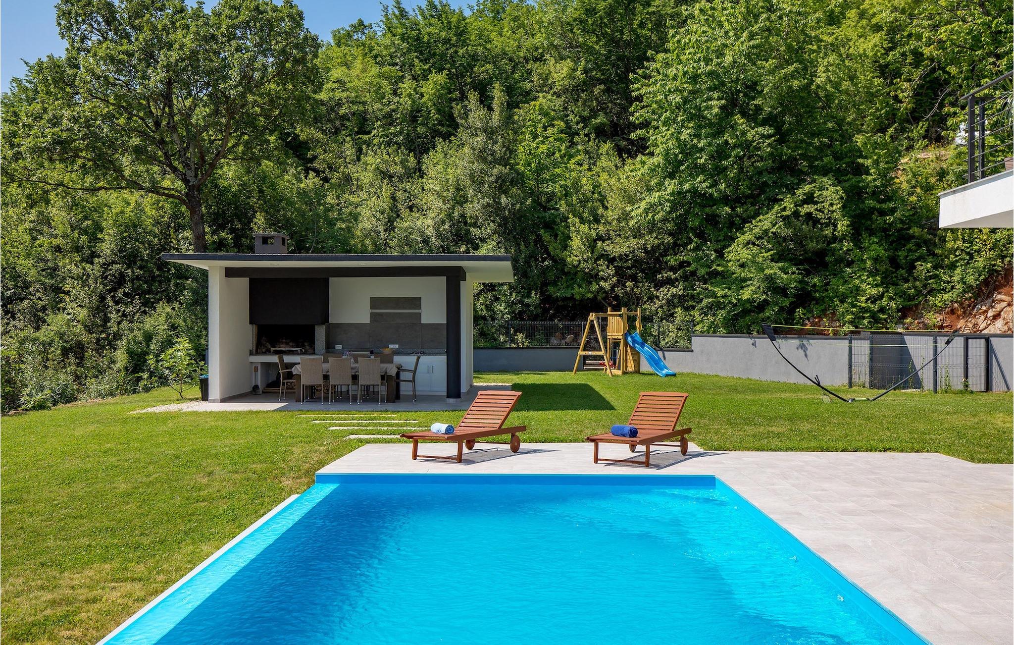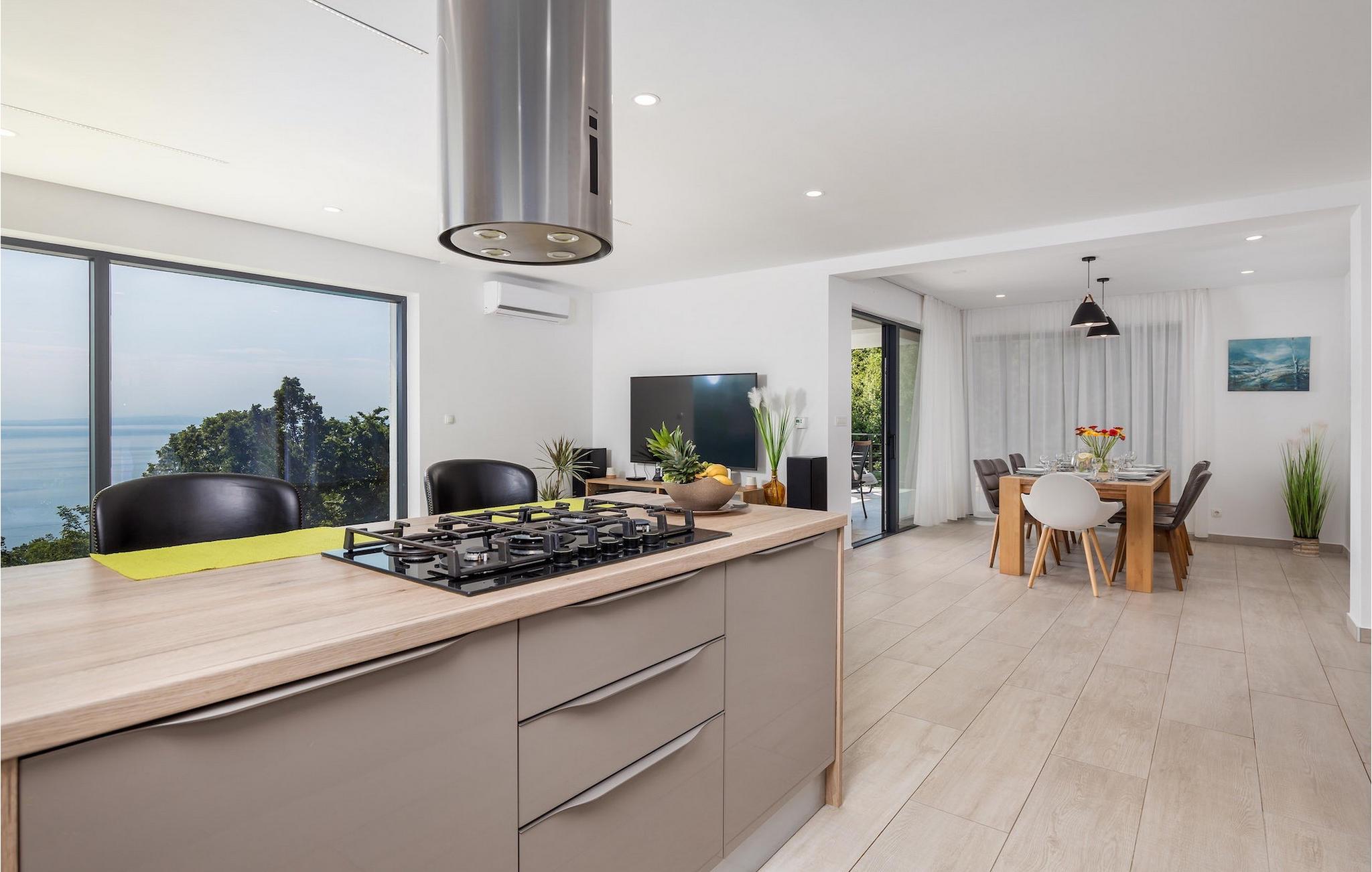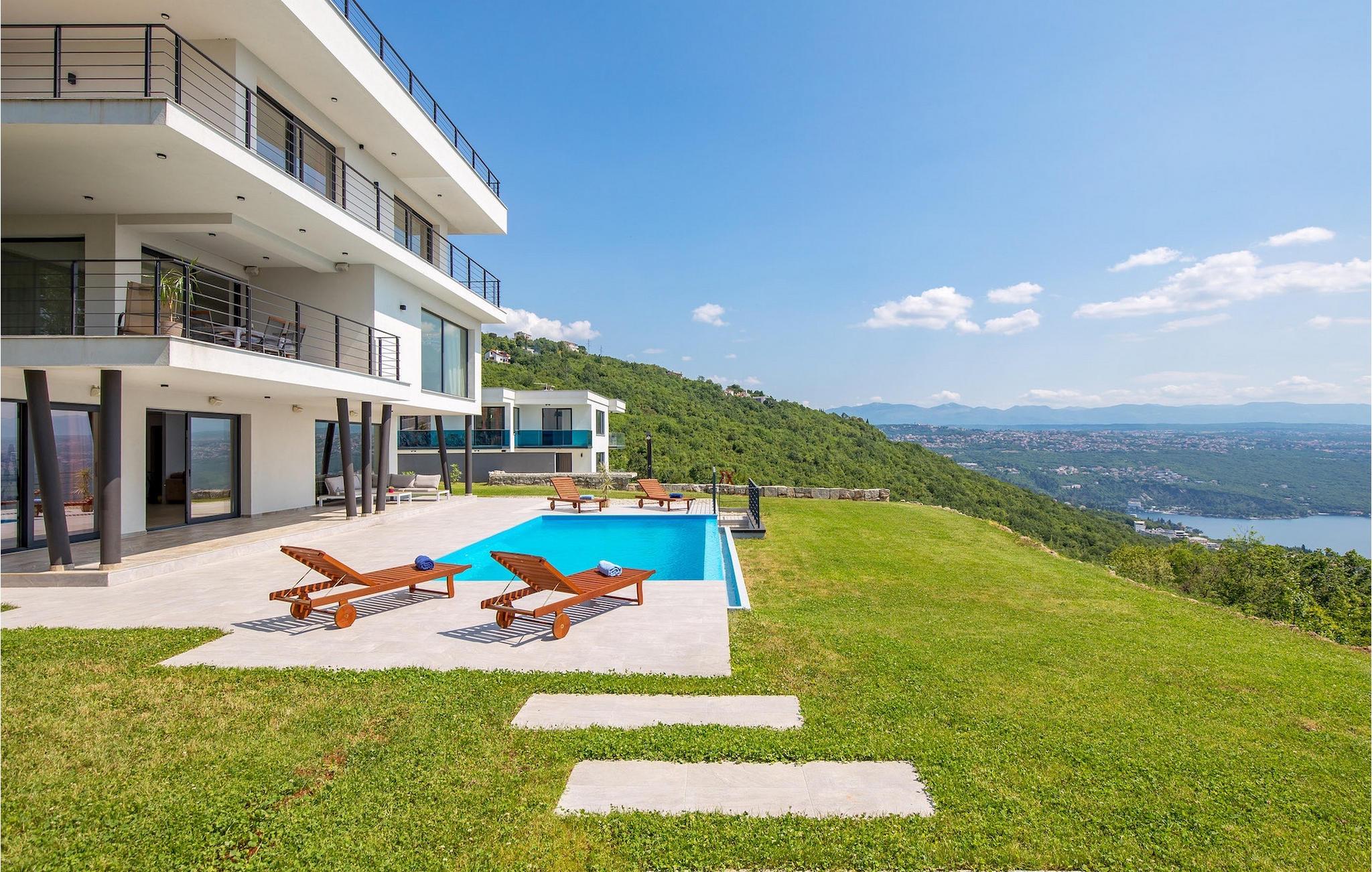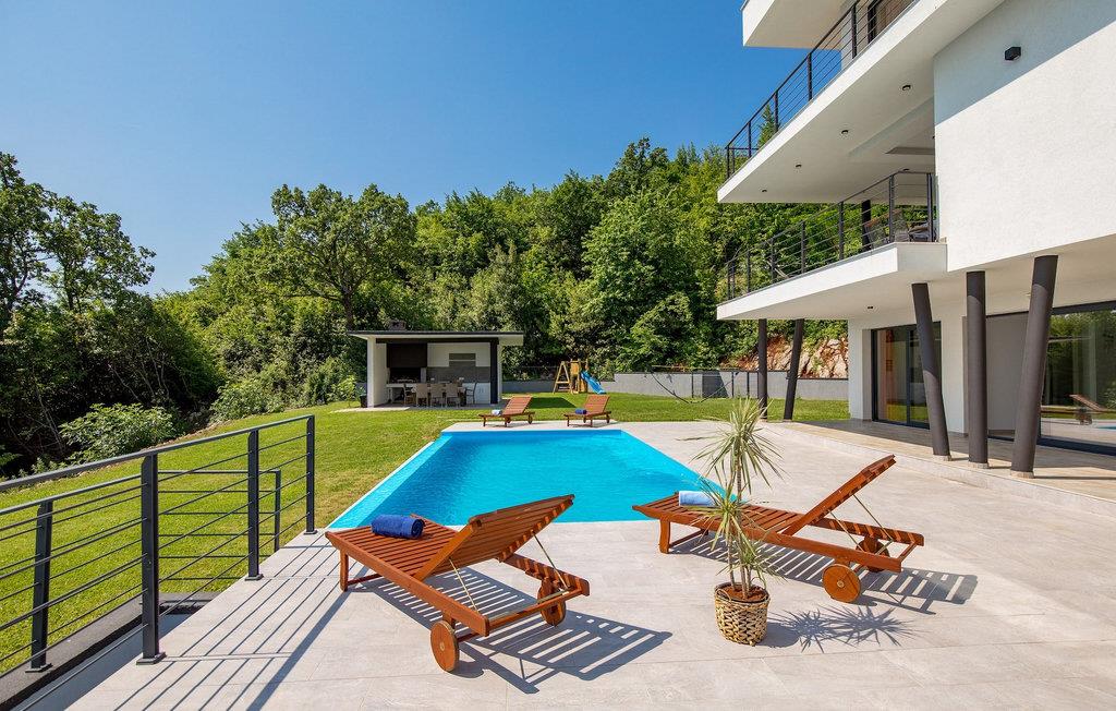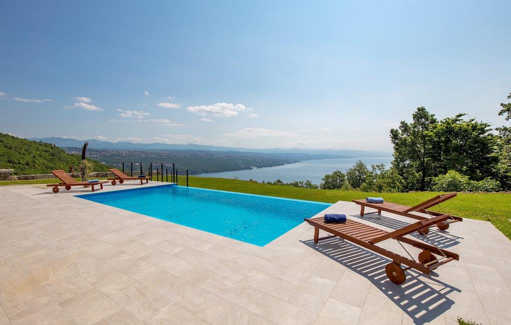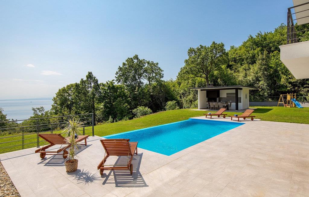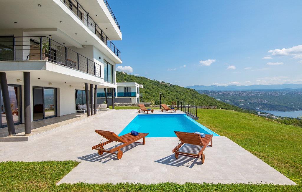 På en rummelig ejendom er der en swimmingpool til din rådighed, hvor du vil tilbringe solrige dage, mens du nyder panoramaudsigten udsigt over Kvarnerbugten. På udearealet er der desuden udekøkken med grill og spisebord, hvor du vil tilbringe hyggelige sommeraftener med familie og venner under stjernehimlen.