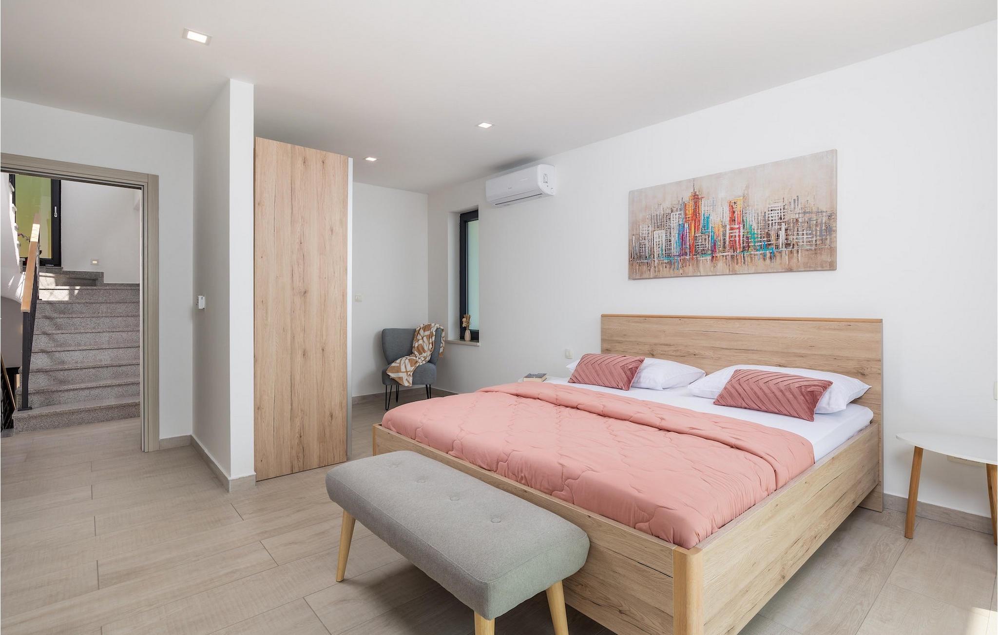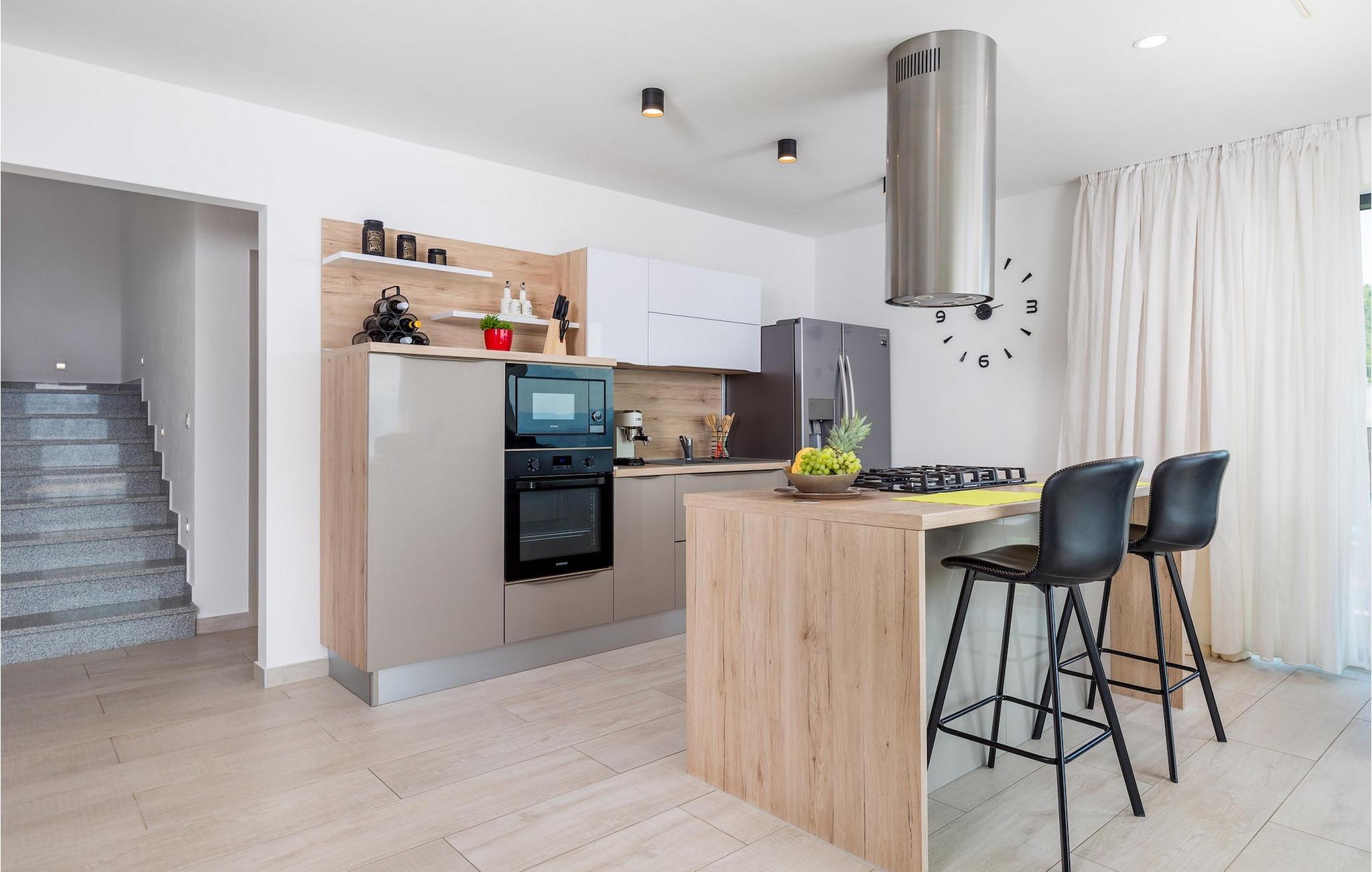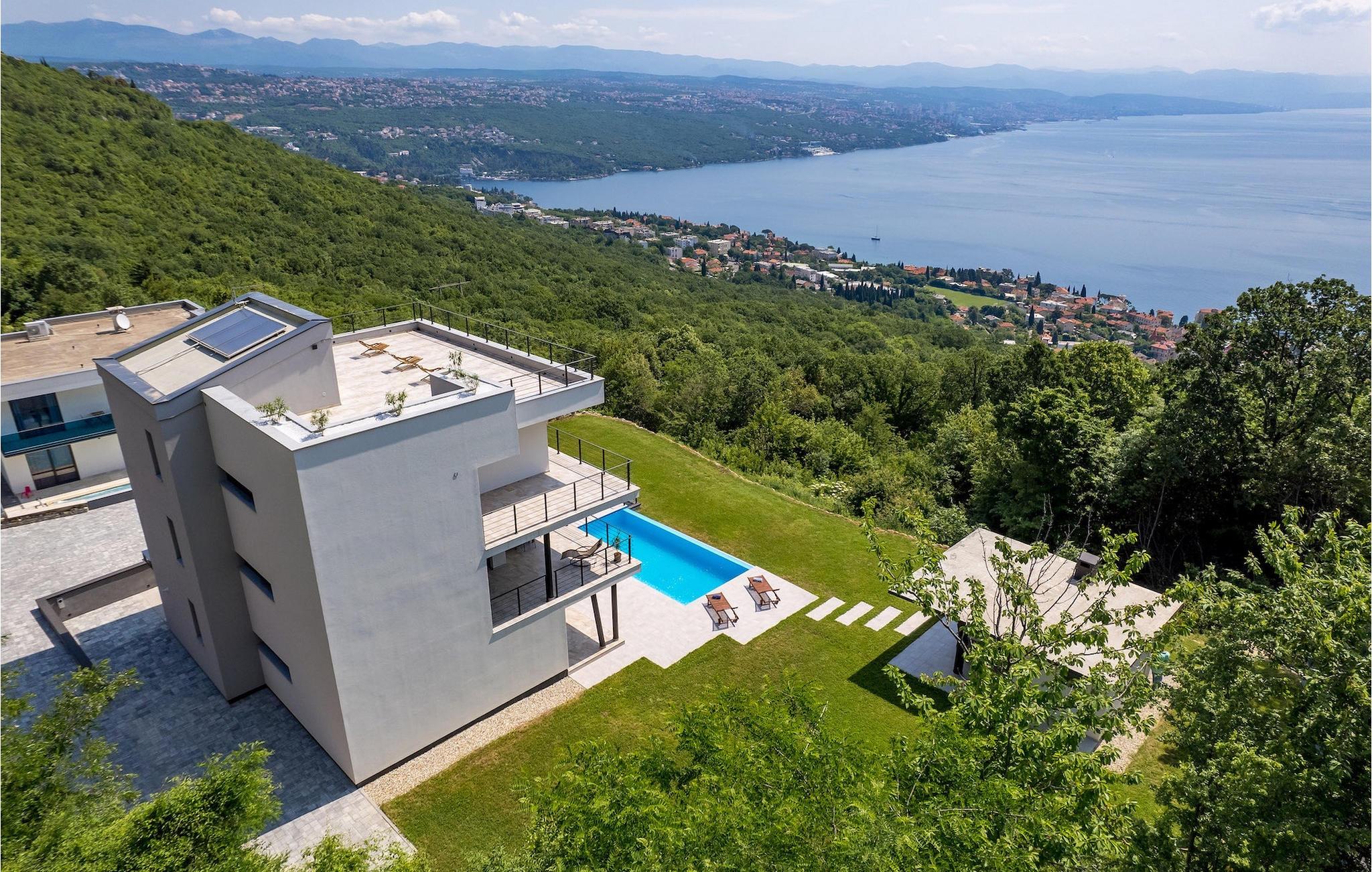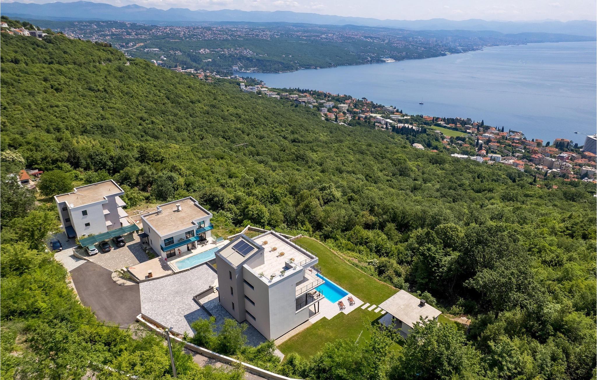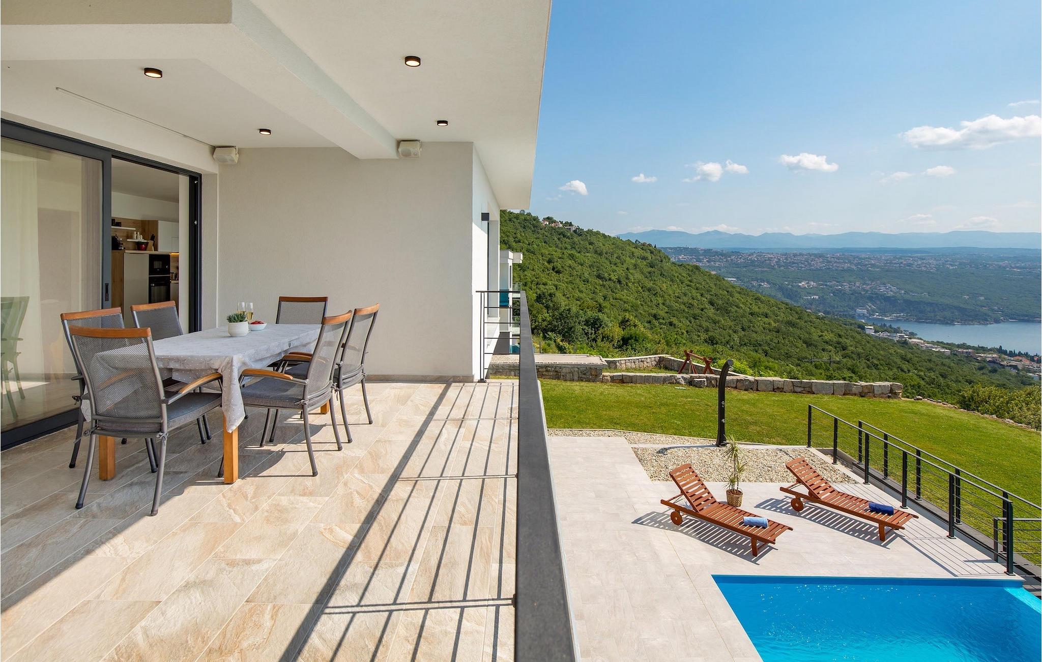 På en rummelig ejendom er der en swimmingpool til din rådighed, hvor du vil tilbringe solrige dage, mens du nyder panoramaudsigten udsigt over Kvarnerbugten. På udearealet er der desuden udekøkken med grill og spisebord, hvor du vil tilbringe hyggelige sommeraftener med familie og venner under stjernehimlen.