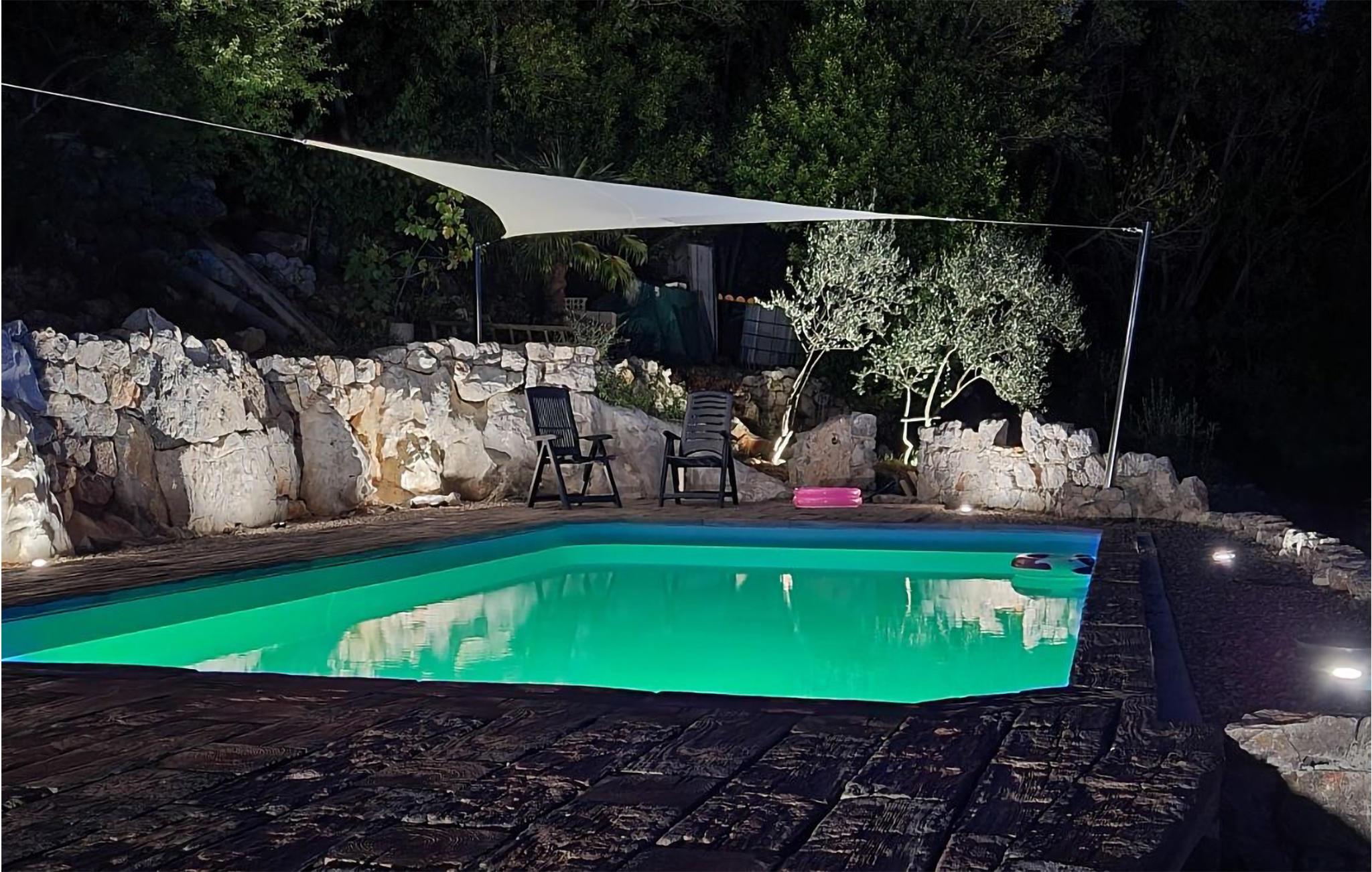 Find jeres lille stykke paradis her, omgivet af skov, og især naturmennesker vil være glade for at tilbringe deres ferie i denne charmerende bolig. Det praktiske feriehus byder på alt, hvad I skal bruge for at have det godt. I har også mulighed for at lave mad udendørs og bruge det åbne sommerkøkken. Gå på opdagelse i hele ejendommen, læg jer i hængekøjen eller køl af i den let salte pool, som er velegnet til allergikere. Om aftenen kan I nyde udsigten over havet med et glas vin og lægge planer for jeres aktiviteter.