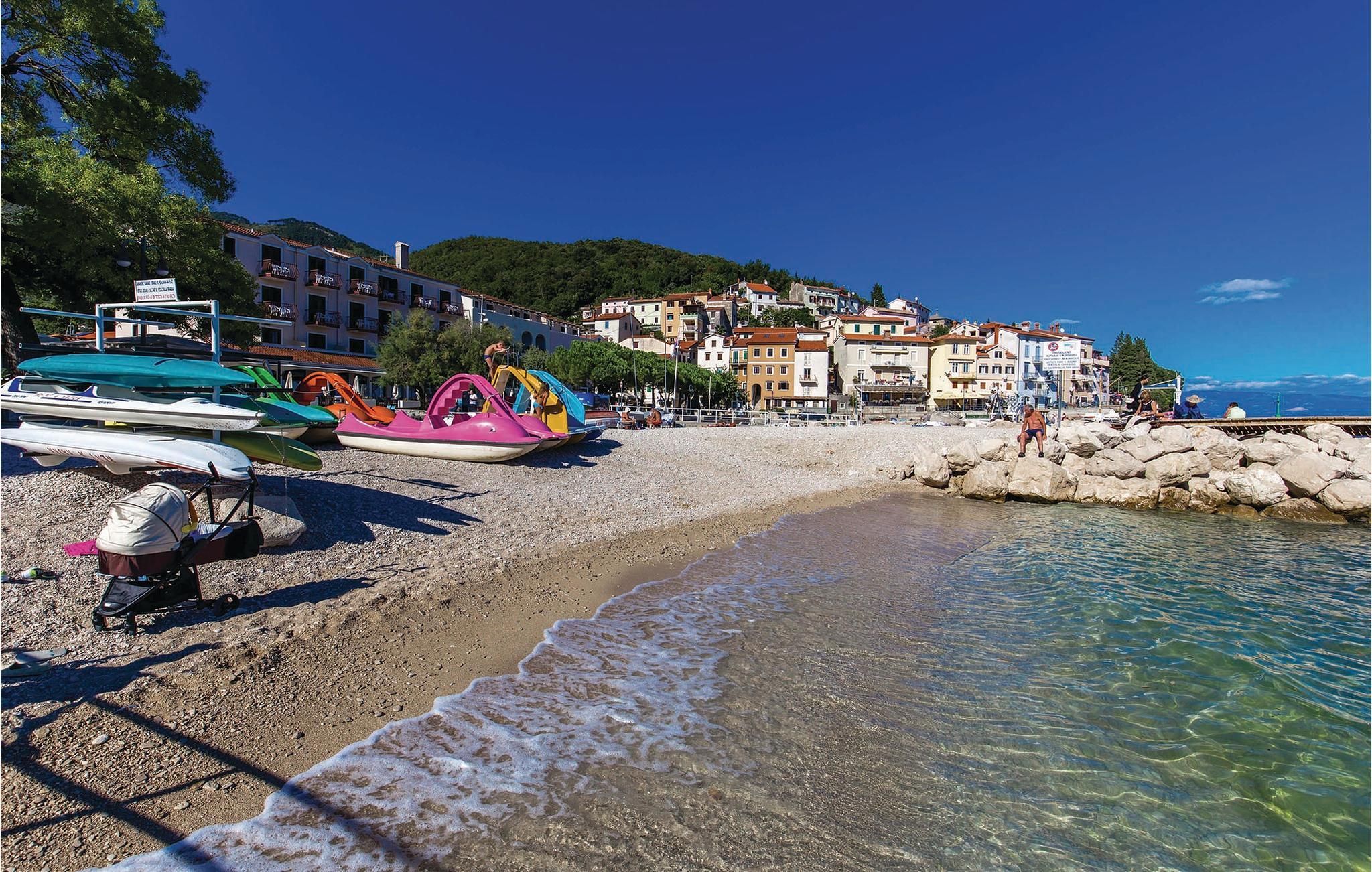 Ca. 200 m af adgangen til huset er en grusvej, der giver denne ferieejendom et ekstra romantisk præg. Oplev badestrande fra Mošcenicka Draga til Brsec og Opatija, samt skjulte bugter på den barske kyst. I kan finde underholdning i Opatija, Lovran og Icici.