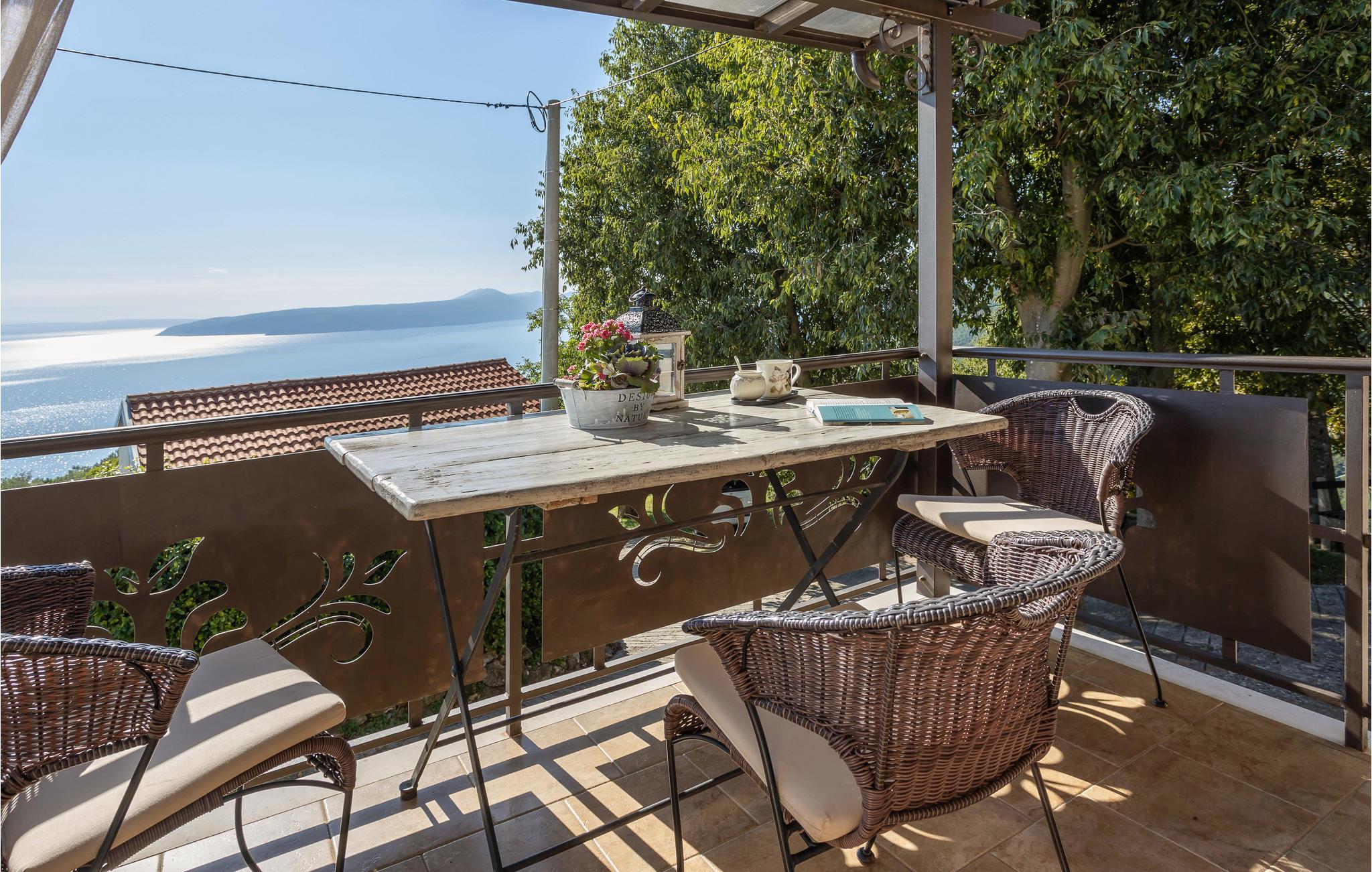 Dette lille og enkel indrettede feriehus, med skøn udsigt over Kvarner Bugten, ligger på en høj på bjerget Ucka over Moscenicka Draga, fiskebyen med en af de skønneste strande i området. Ved siden af huset ligger en vandresti der fører til små klippe stykker og som er ideel for frie bjergklatrer. Om sommeren bliver man kølet ned på terrassen af den friske bjergluft, mens man nyder roen af den uberørte natur. Efter få min. i bil kommer man til de kendte turistområder Opatija og Lovran. CKO343 har samme ejer, ideelt til en fælles ferie med flere familier.