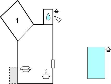 Opholdsstue/køkken - 2 Sovepladser. (Sofa, madras eller lignende).