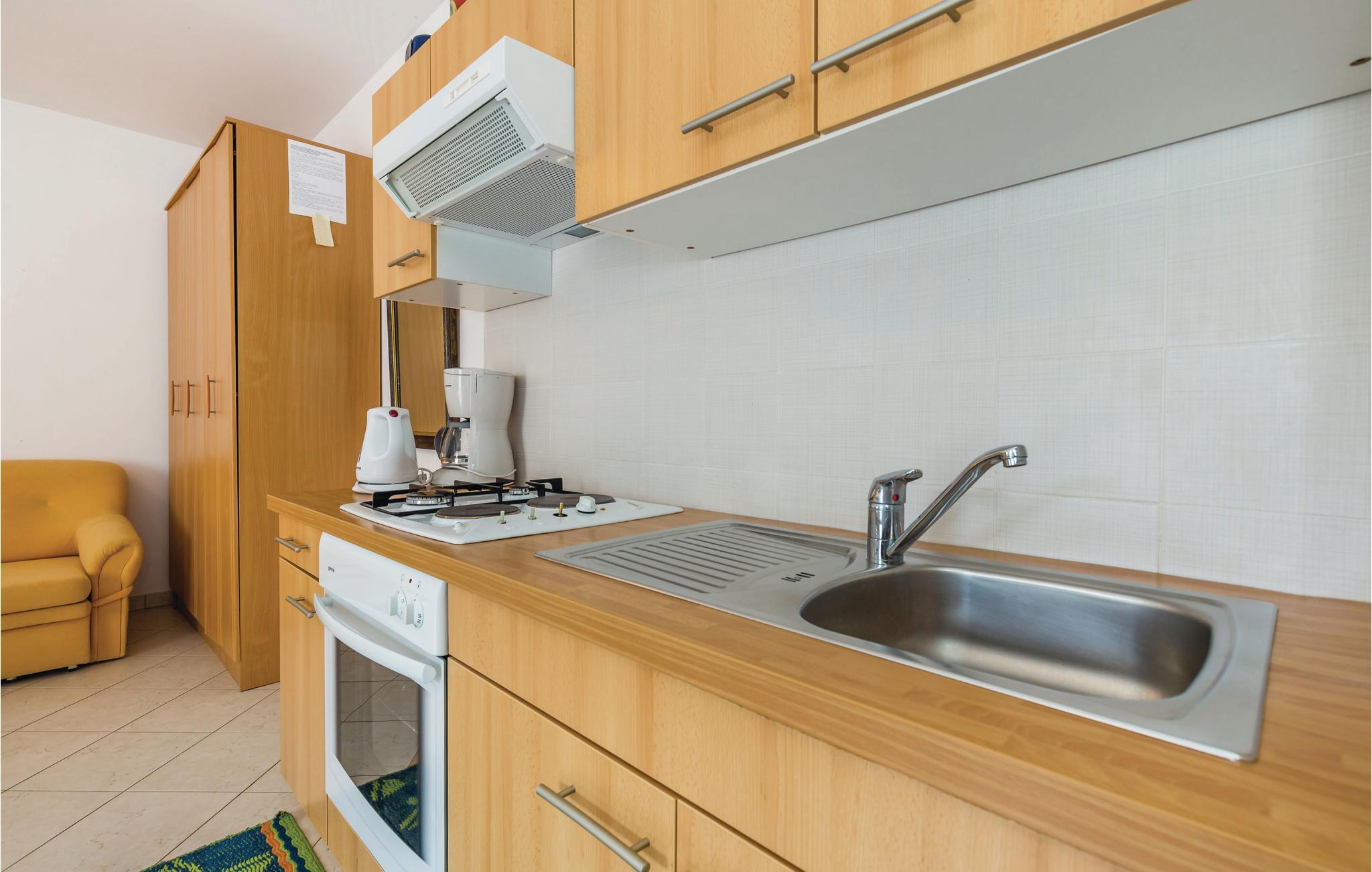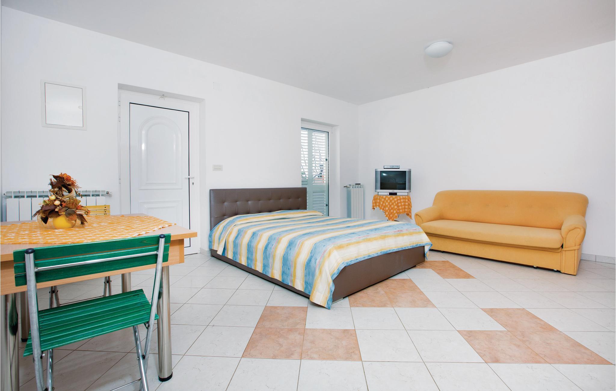 Opholdsstue/køkken - 1 Soveplads. (Enkeltseng(e)). 2 Sovepladser. (Dobbeltseng(e)).