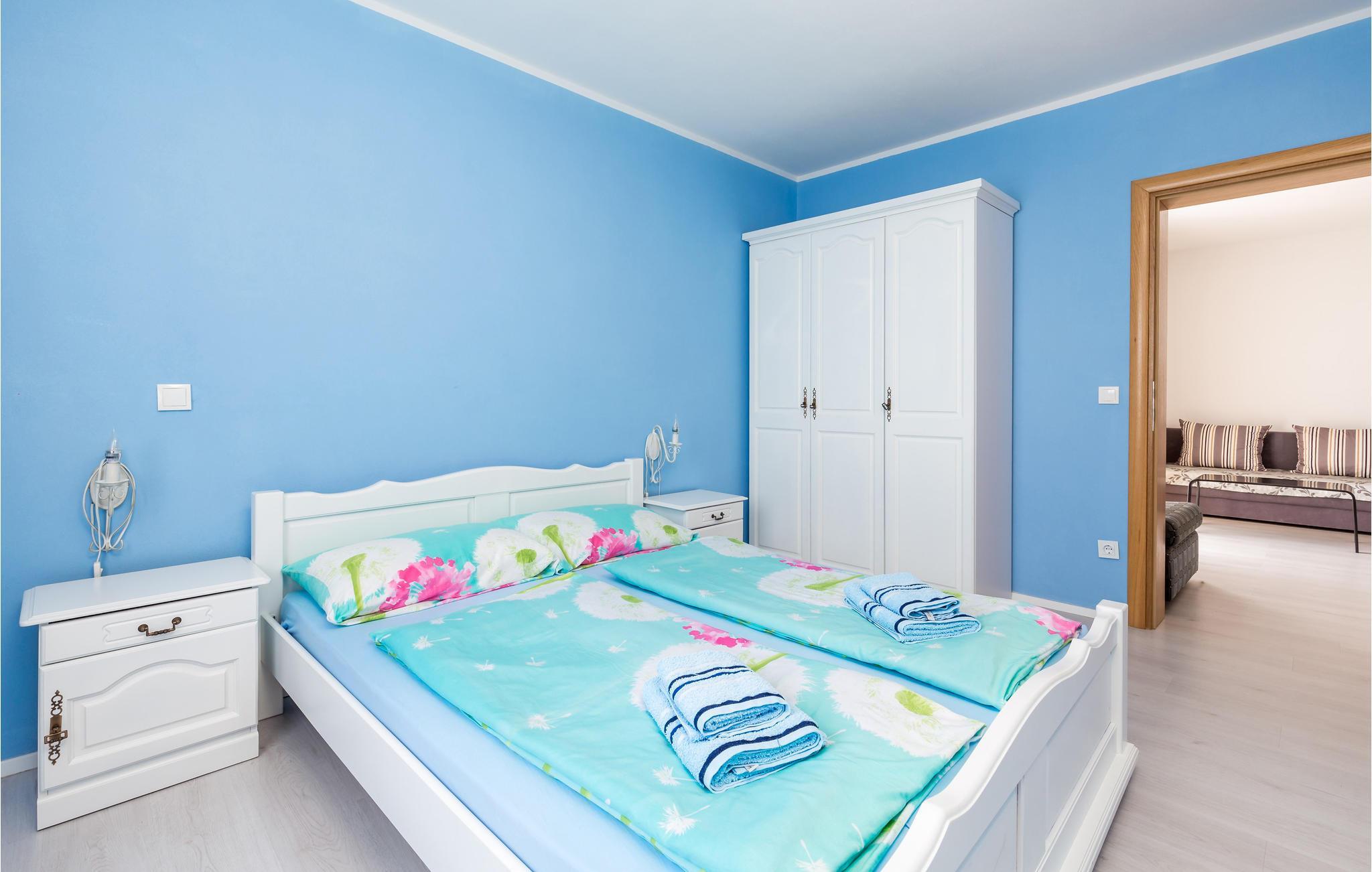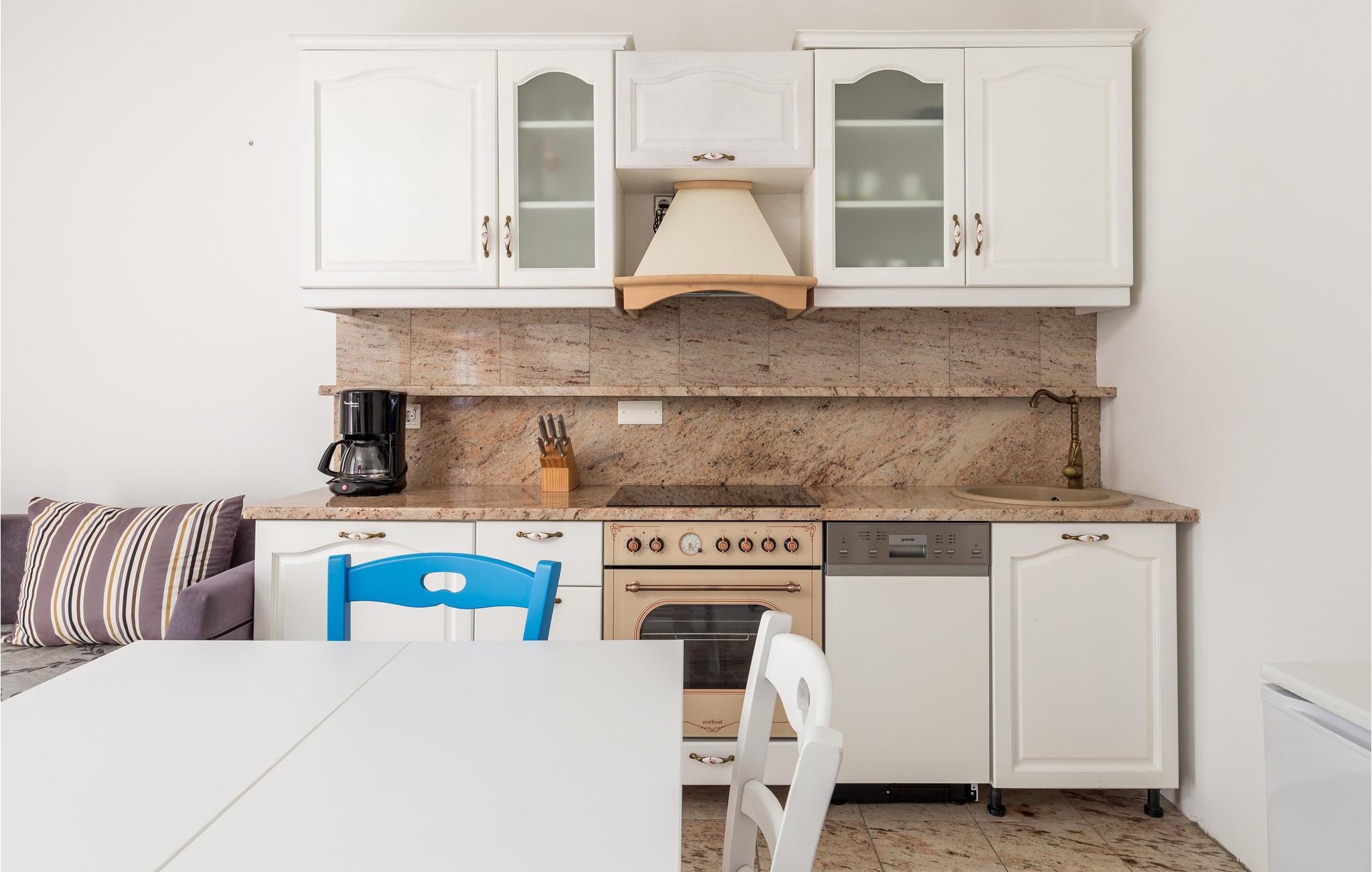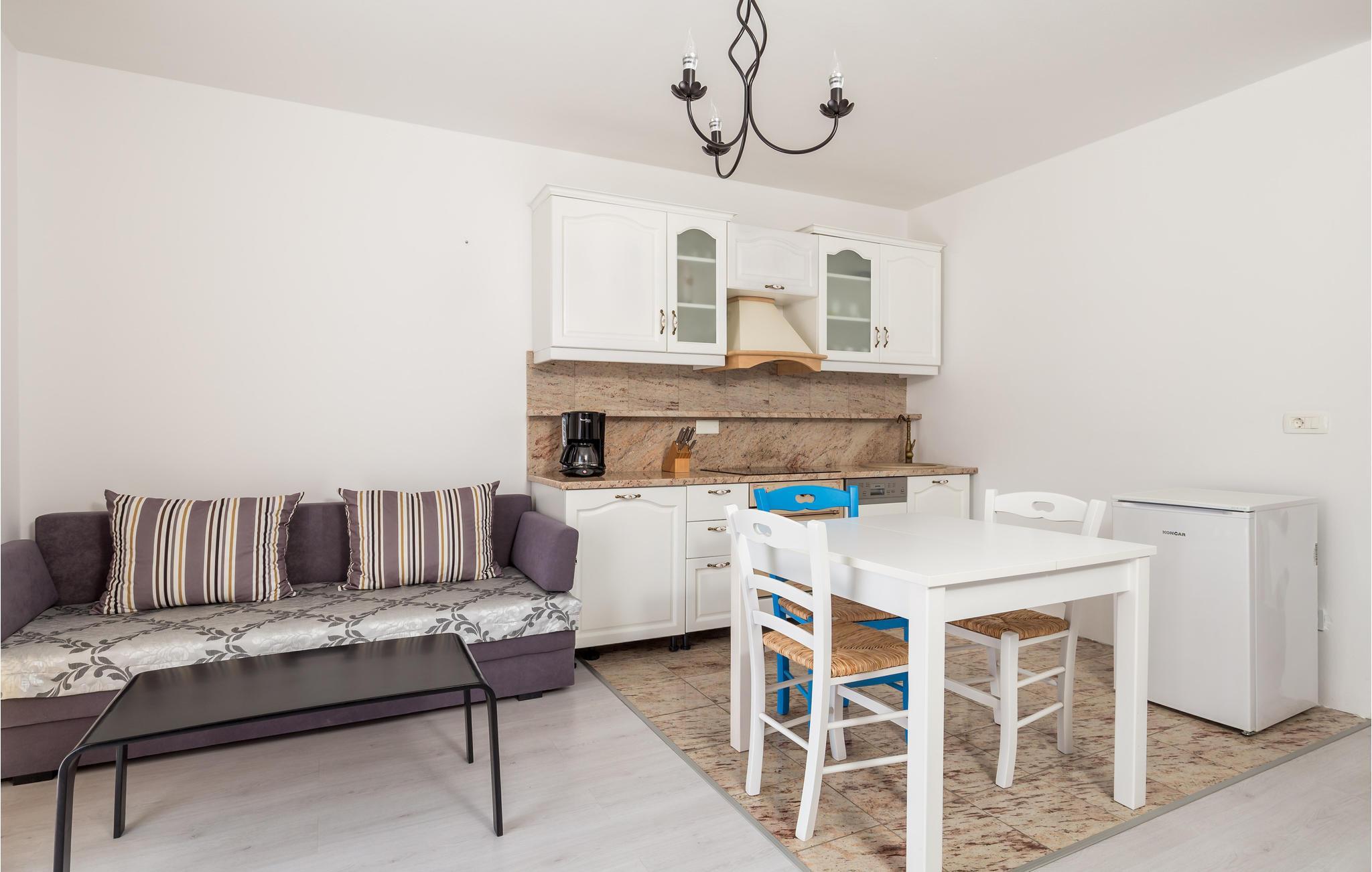 Denne hyggelige ferielejlighed ligger i et familiehus over Mošcenicka Draga. Lejligheden ligger på 1. sal og har et soveværelse og en terrasse, hvorfra I kan nyde en smuk udsigt over landskabet og havet. Soveværelset har en dobbeltseng, mens der er yderligere 2 senge i køkken-alrummet.