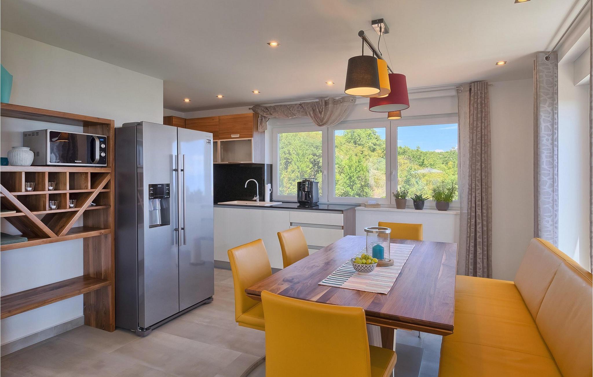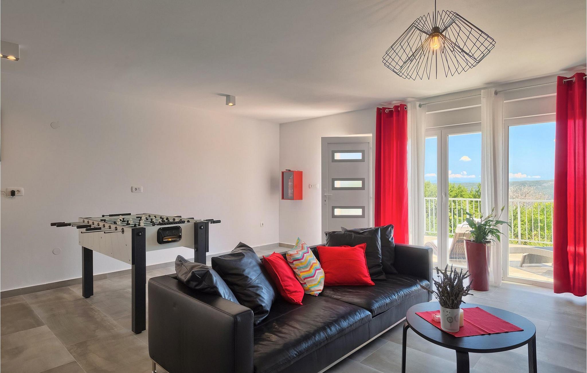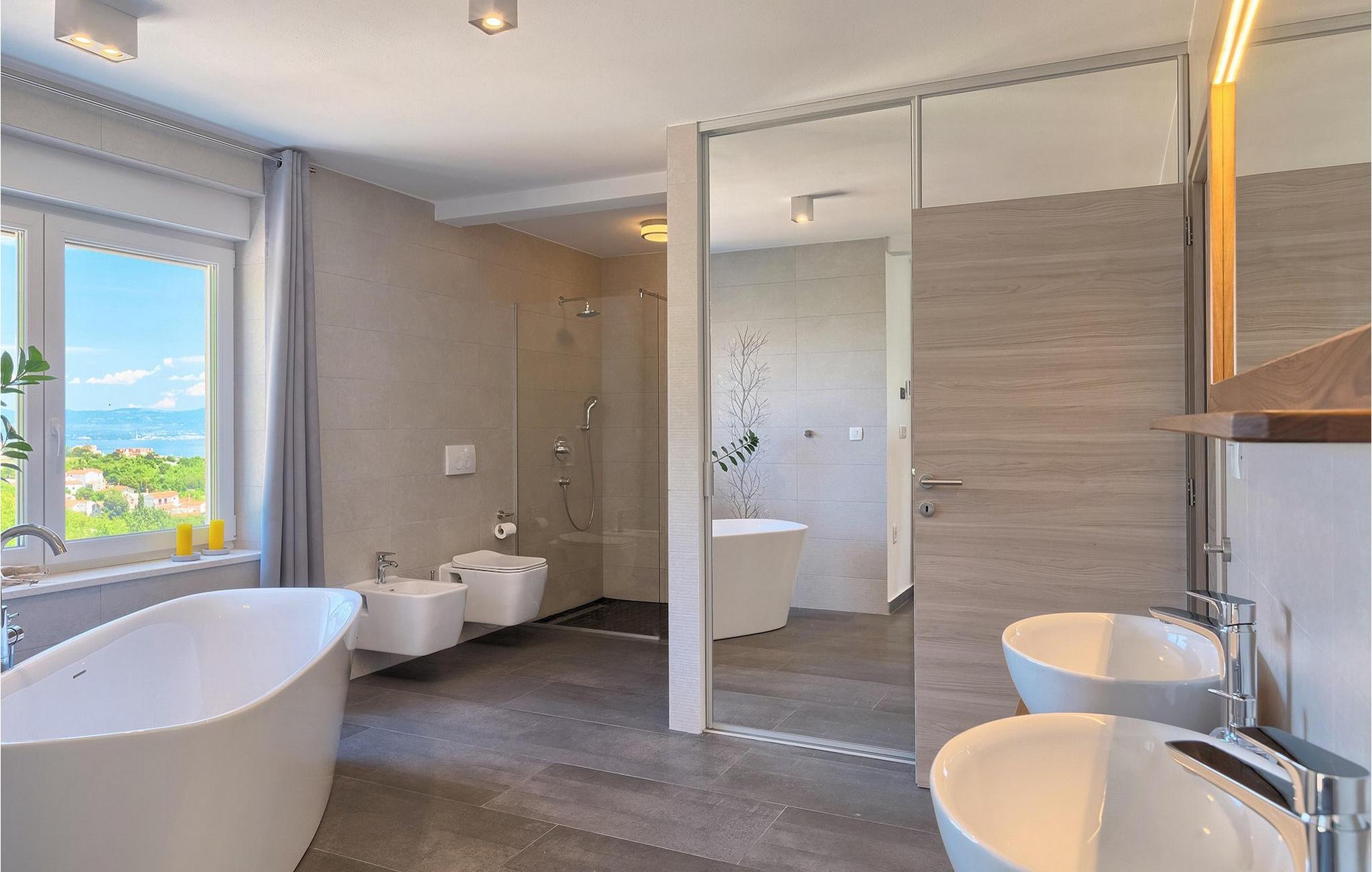 Fantastisk Villa Istra Panorama ligger i en lille landsby nær Moscenicka Draga, kun 2,5 km fra den første strand. Villaen var indrettet med stor opmærksomhed og kærlighed til detaljer. Interiøret består af 3 åbent koncept opholdsrum, 3 spisepladser, 3 fuldt udstyrede køkkener, 6 soveværelser og 6 badeværelser. I hele villaen finder du en masse balkondøre og vinduer med en fantastisk havudsigt. Villaen kan rumme op til 10+6 gæster og er ideel til en familieferie eller en ferie med venner. Et underholdningsområde med kicker, dart og tv kan også findes i villaen samt et bord til bordtennis og en legeplads. Loungeområder over hele udendørsområdet byder på masser af muligheder for at slappe af og finde lidt alenetid i den enorme villa. Den 11 m lange infinity-pool med liggestole tilbyder også en fantastisk havudsigt, hvorfra du kan nyde din tid i denne smukke villa.Villa Istria Panorama ligger i Brsec - en lille middelalderby, hvis smalle gader og stræder er bevaret den dag i dag . De fleste af husene er bygget i det 17. århundrede, og indtil i dag kan man finde glagolitiske inskriptioner på deres facader. En uforglemmelig udsigt strækker sig fra klipperne, hvor St. Magdalene-kirken blev bygget. Brsec ligger omkring 25 km syd for Opatija - Adriaterhavets perle. Opatija er det ældste turistcenter i Kroatien, hvis historie går tilbage til det 19. århundrede, hvor det habsburgske dynasti gjorde byen til en populær destination for adelsmænd. Der er talrige restauranter, barer og caféer i byen samt Lungomare - en 12 km lang promenade, der løber langs kysten. Ikke at forglemme er, selvfølgelig, de mange strande.
