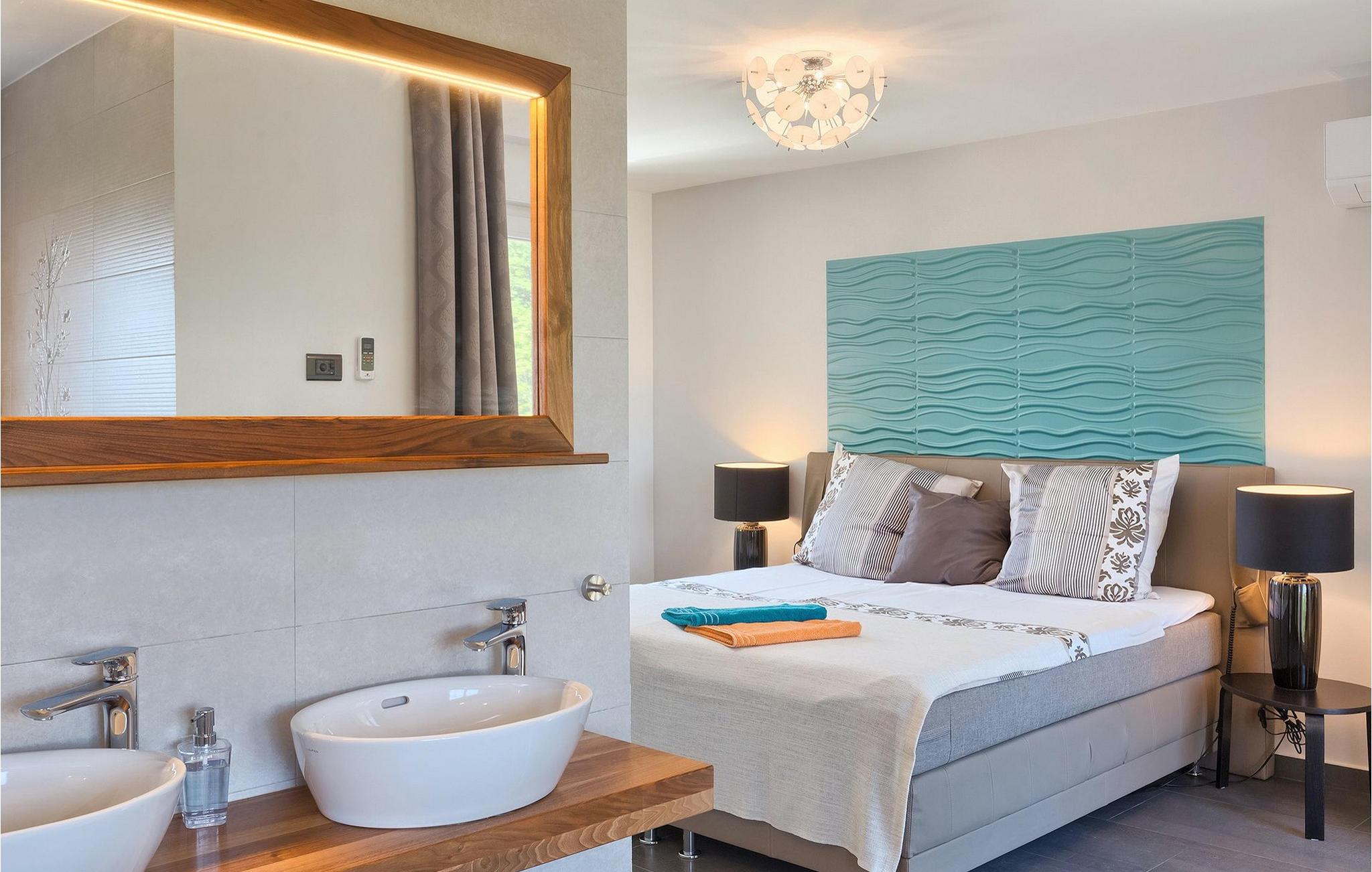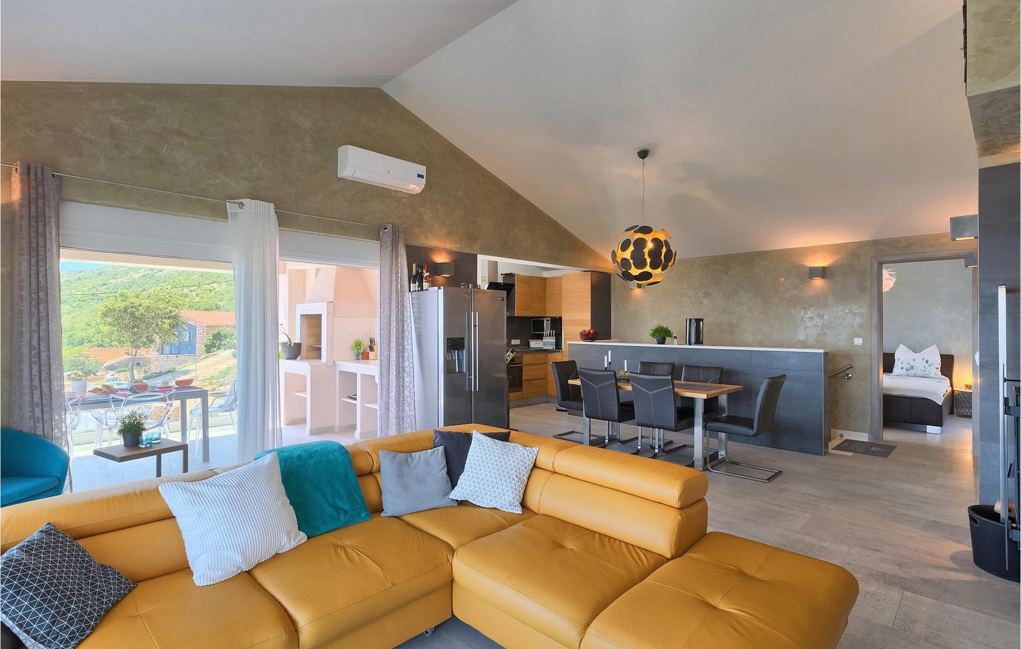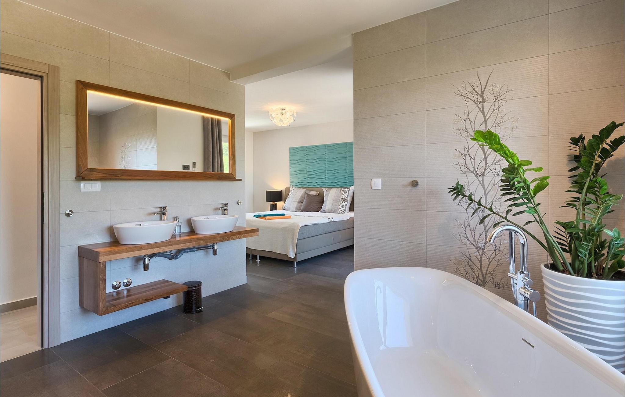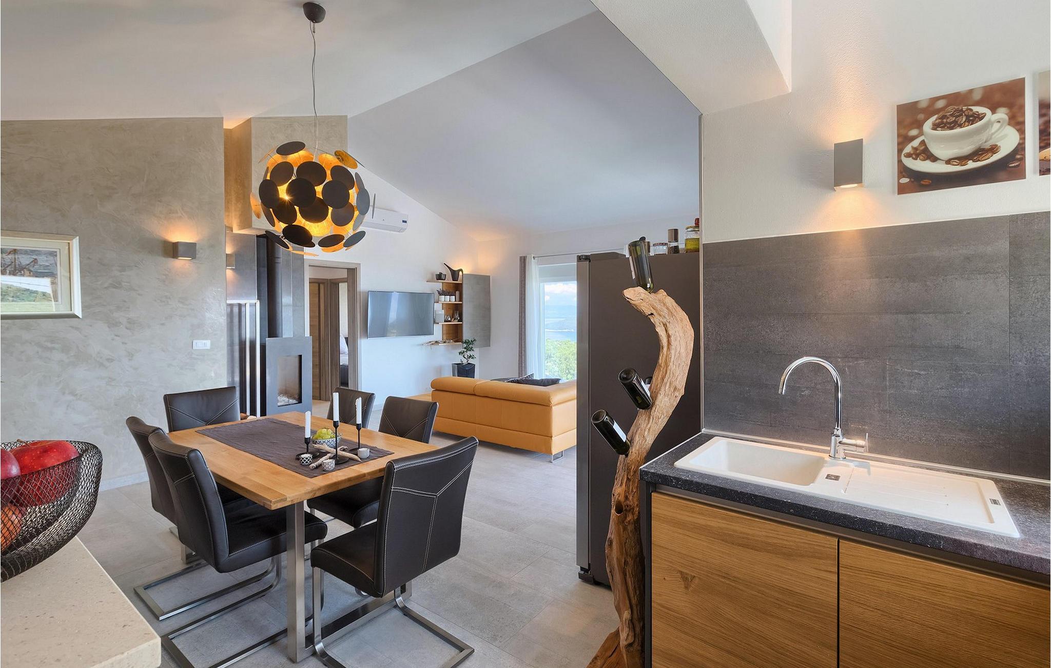 Fantastisk Villa Istra Panorama ligger i en lille landsby nær Moscenicka Draga, kun 2,5 km fra den første strand. Villaen var indrettet med stor opmærksomhed og kærlighed til detaljer. Interiøret består af 3 åbent koncept opholdsrum, 3 spisepladser, 3 fuldt udstyrede køkkener, 6 soveværelser og 6 badeværelser. I hele villaen finder du en masse balkondøre og vinduer med en fantastisk havudsigt. Villaen kan rumme op til 10+6 gæster og er ideel til en familieferie eller en ferie med venner. Et underholdningsområde med kicker, dart og tv kan også findes i villaen samt et bord til bordtennis og en legeplads. Loungeområder over hele udendørsområdet byder på masser af muligheder for at slappe af og finde lidt alenetid i den enorme villa. Den 11 m lange infinity-pool med liggestole tilbyder også en fantastisk havudsigt, hvorfra du kan nyde din tid i denne smukke villa.Villa Istria Panorama ligger i Brsec - en lille middelalderby, hvis smalle gader og stræder er bevaret den dag i dag . De fleste af husene er bygget i det 17. århundrede, og indtil i dag kan man finde glagolitiske inskriptioner på deres facader. En uforglemmelig udsigt strækker sig fra klipperne, hvor St. Magdalene-kirken blev bygget. Brsec ligger omkring 25 km syd for Opatija - Adriaterhavets perle. Opatija er det ældste turistcenter i Kroatien, hvis historie går tilbage til det 19. århundrede, hvor det habsburgske dynasti gjorde byen til en populær destination for adelsmænd. Der er talrige restauranter, barer og caféer i byen samt Lungomare - en 12 km lang promenade, der løber langs kysten. Ikke at forglemme er, selvfølgelig, de mange strande.