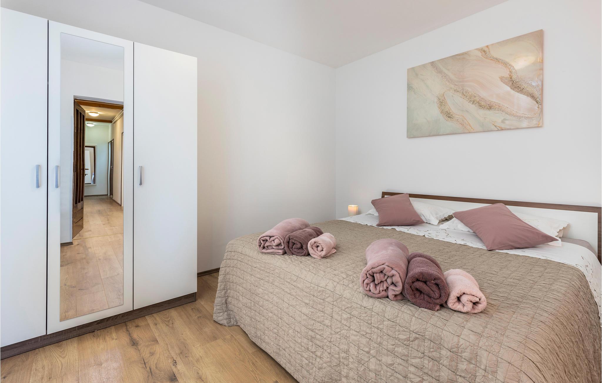 et lille boligområde i Mucici byder denne rummelige lejlighed dig velkommen med en stor overdækket terrasse og udsigt over landskabet. Undslippe din hverdag og nyd denne behagelige lejlighed i en rolig beliggenhed i baglandet af Opatija Riviera. Kom indenfor i lejligheden og glæd dig til lyse og venlige værelser, der er udstyret med alt hvad du behøver til din ubekymrede ferie. Træd ud på balkonen, når du vågner om morgenen, og nyd udsigten over landskabet. Drik din morgenkaffe på terrassen eller spil kort i skyggen om eftermiddagen. Beliggenheden giver dig korte afstande til alle faciliteter, promenader, vandre- og vandrestier i naturen og ved havet. Bo på de smukke strande ved Opatija Riviera og oplev det rige udbud af underholdning og natteliv, sport i naturen og ved havet. Du kan også besøge naturparken Ucka eller, hvis du er eventyrlysten, starte fra flyvepladsen til paragliding og drageflyvning. Oplev de omkringliggende øer og planlæg ture til øerne Krk, Cres og Lošinj, som kan nås med båd fra Opatija!