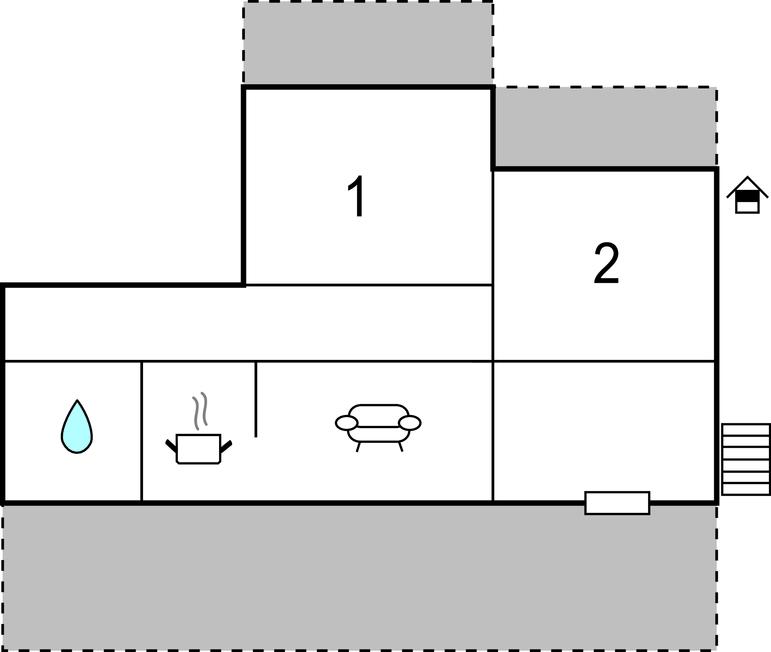 Opholdsstue/køkken 22m2 - 1 Soveplads. (Sofa, madras eller lignende).