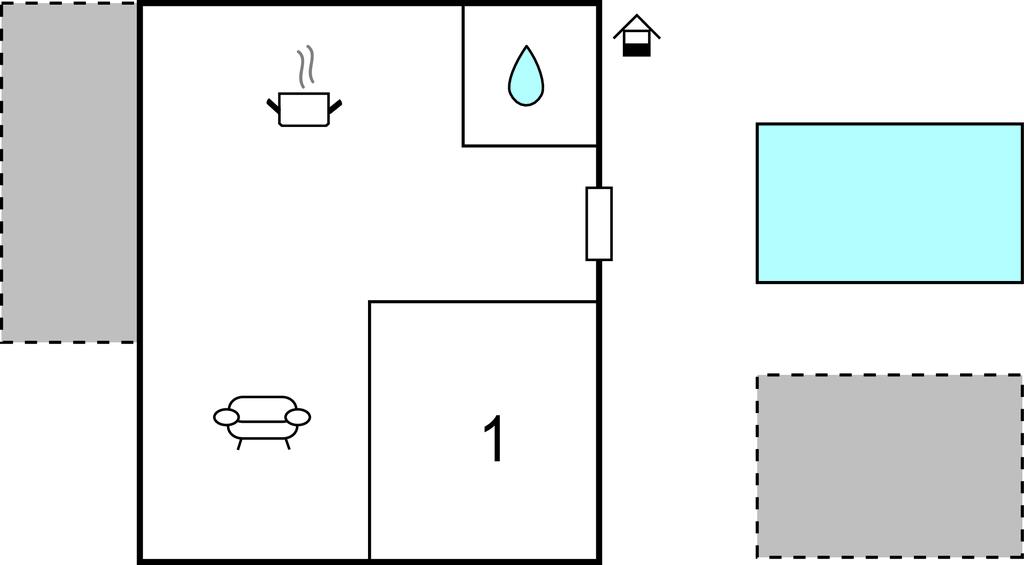 Opholdsstue/køkken 15m2 - 2 Sovepladser. (Sofa, madras eller lignende).