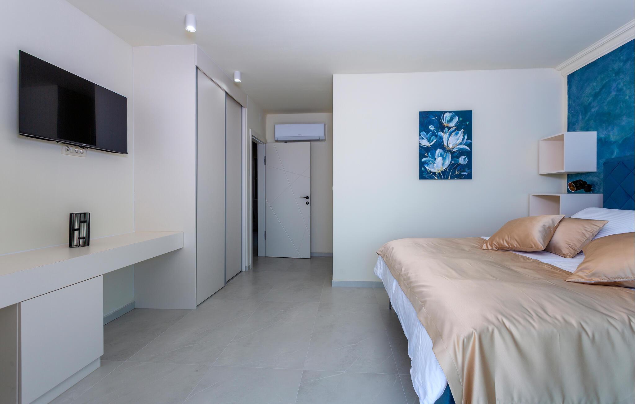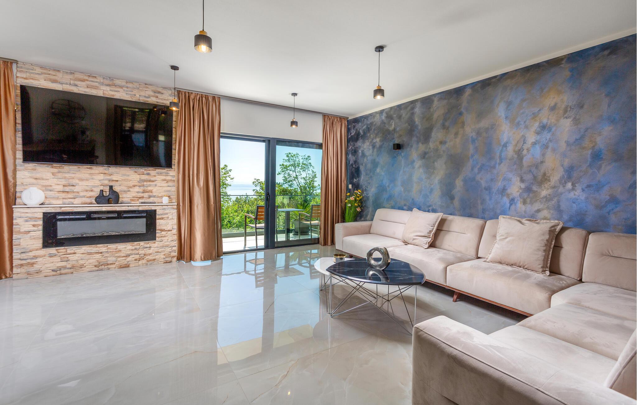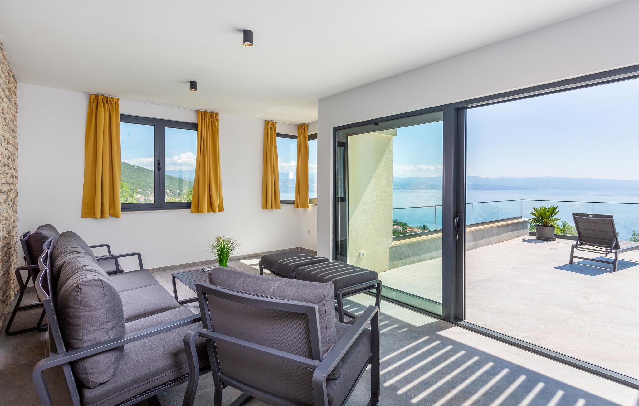 Hvis I er på udkig efter en ferie i sus, dus og med luksus i lange baner, er denne resort-lignende villa ved Opatija Riviera det helt rette valg for jer. Huset har en fantastisk beliggenhed, tæt på vandet og med en vidunderlig udsigt over Kvarnerbugten og øerne Krk og Cres. Indvendigt emmer det af kvalitet og komfort over hele linjen med topmoderne udstyr, materialer af allerhøjeste kvalitet og store vinduespartier, der giver lækre lysindfald og en vidunderlig udsigt fra det åbne køkken-alrum. Uanset vejret kan I plaske rundt i den indendørs pool, inden I går i gang med madlavningen i det fuldt udstyrede køkken og dækker op ved spisebordet.