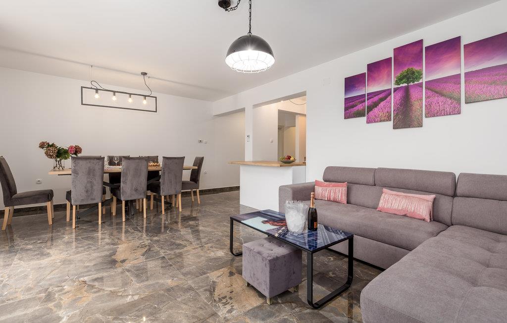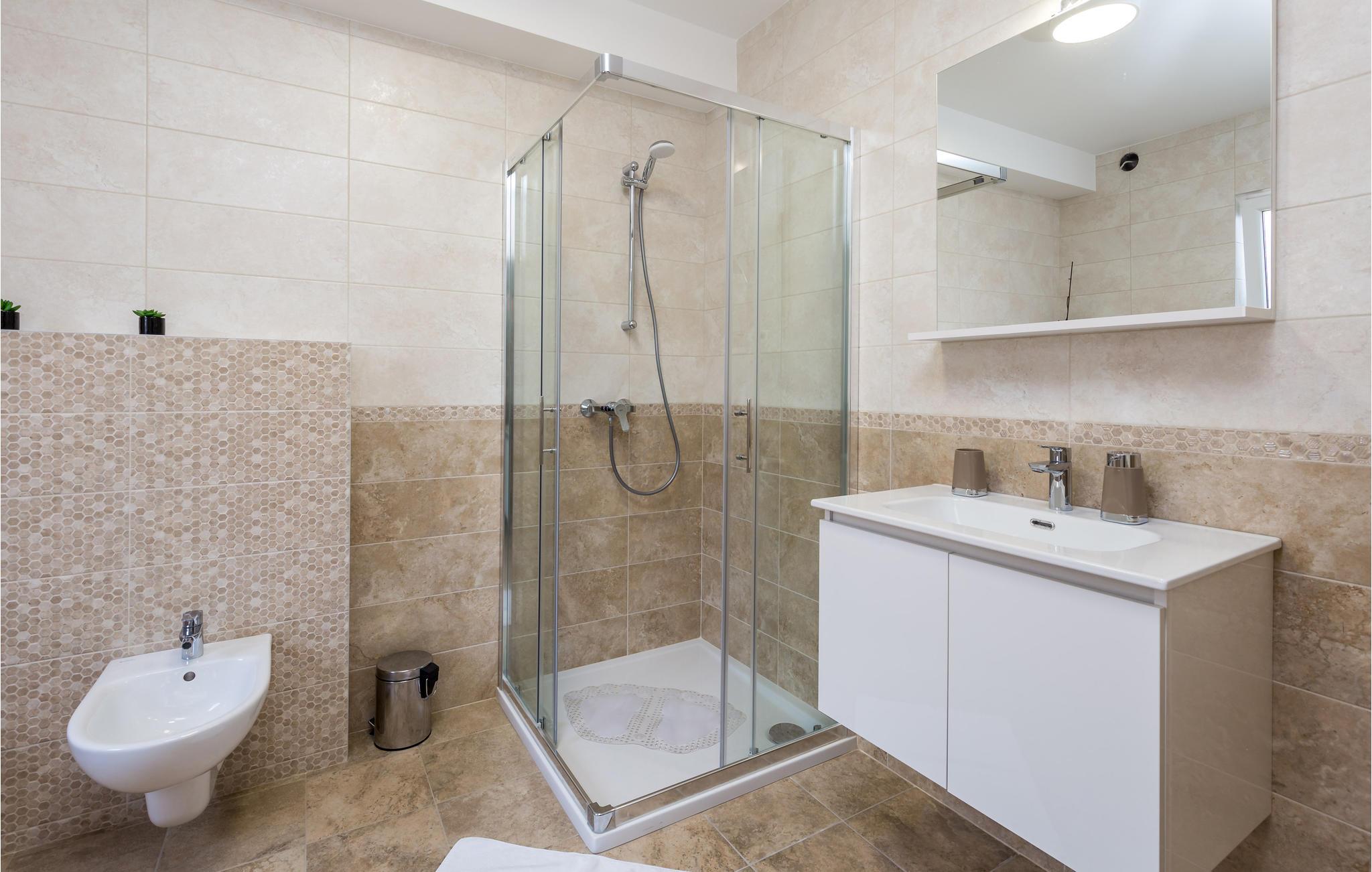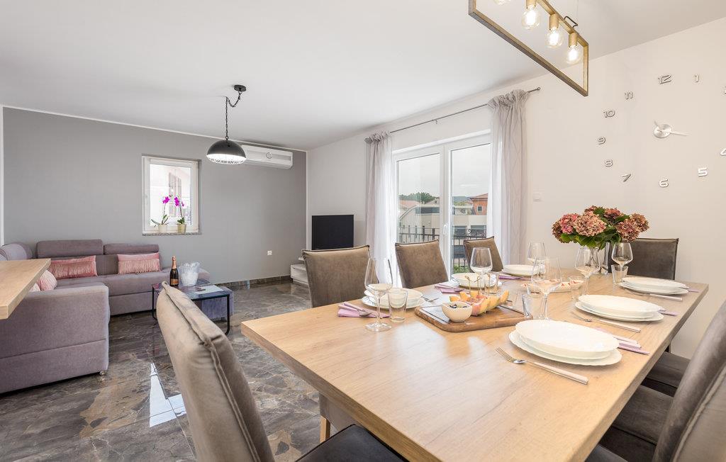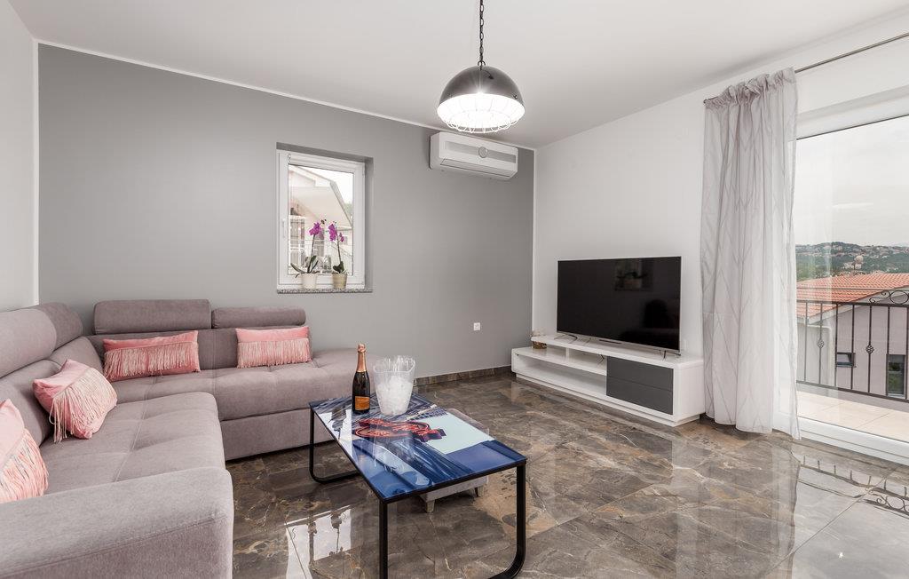Lejligheden byder jer velkommen på 1. sal i et hus og tilbyder en vidunderlig udsigt over havet fra terrassen. I har 2 soveværelser og 2 badeværelser til rådighed. Med sine moderne og attraktive møbler er lejligheden det ideelle sted til en afslappende ferie i enhver sæson. Takket være aircondition kan I regne med behagelige stuetemperaturer her selv på varme sommerdage.
