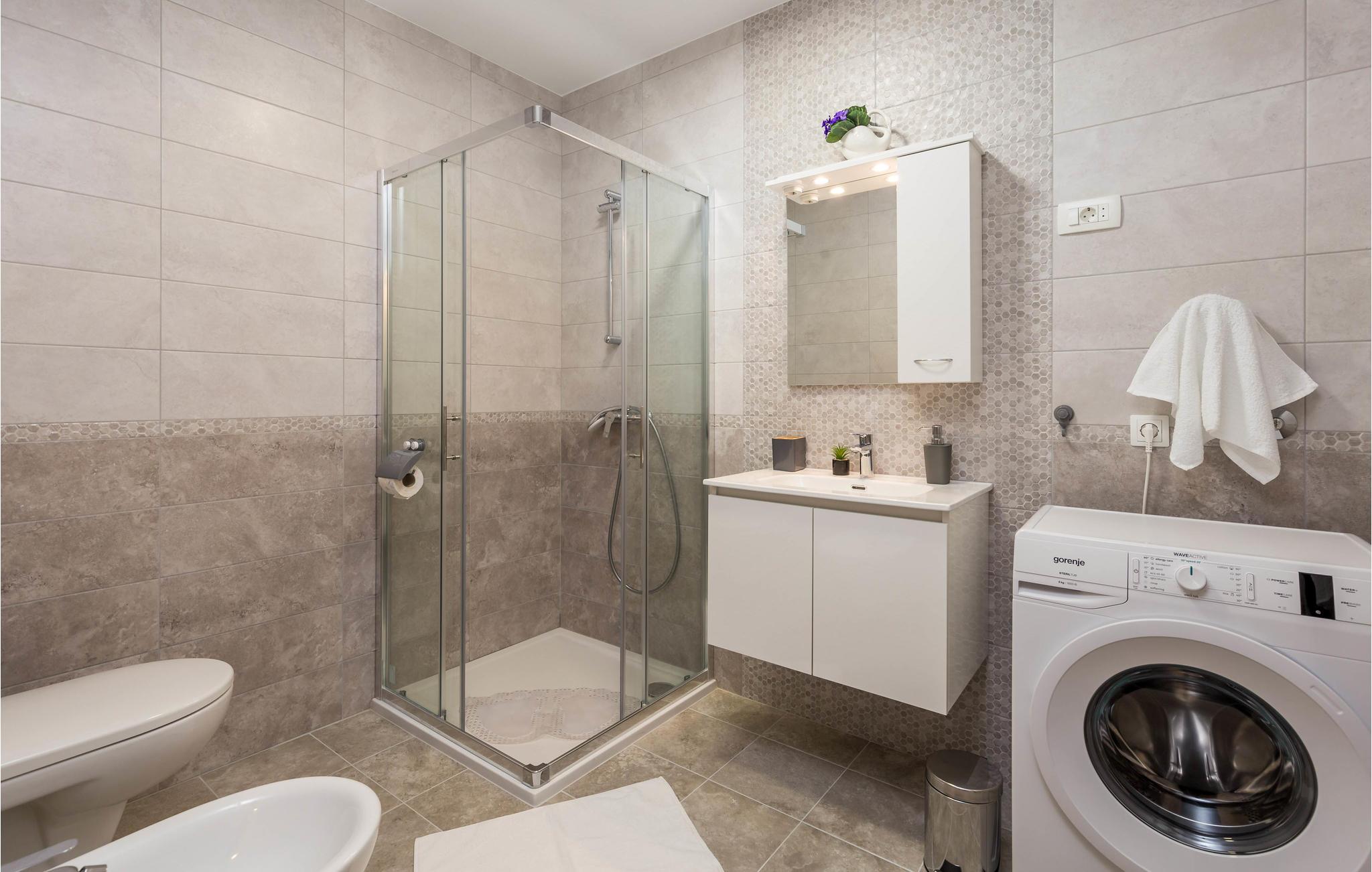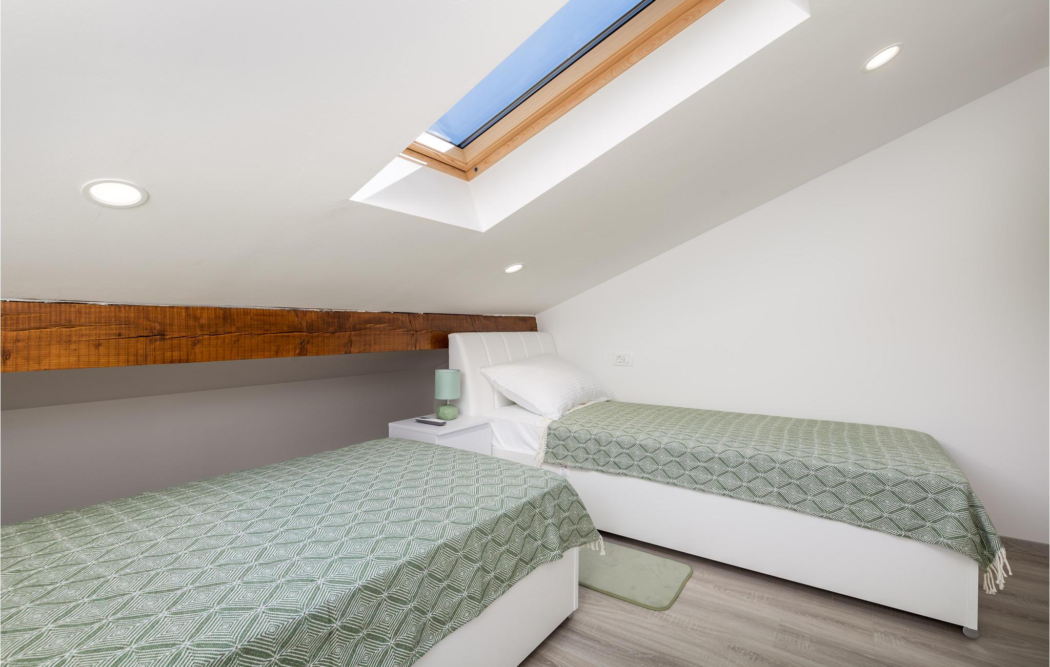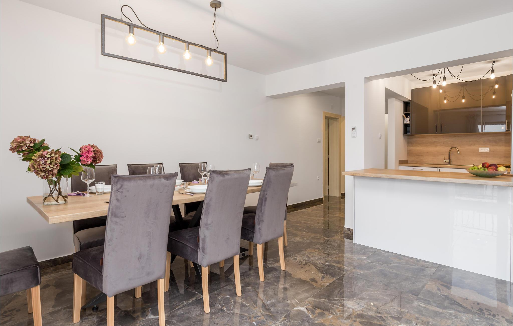 Lejligheden byder jer velkommen på 1. sal i et hus og tilbyder en vidunderlig udsigt over havet fra terrassen. I har 2 soveværelser og 2 badeværelser til rådighed. Med sine moderne og attraktive møbler er lejligheden det ideelle sted til en afslappende ferie i enhver sæson. Takket være aircondition kan I regne med behagelige stuetemperaturer her selv på varme sommerdage.
