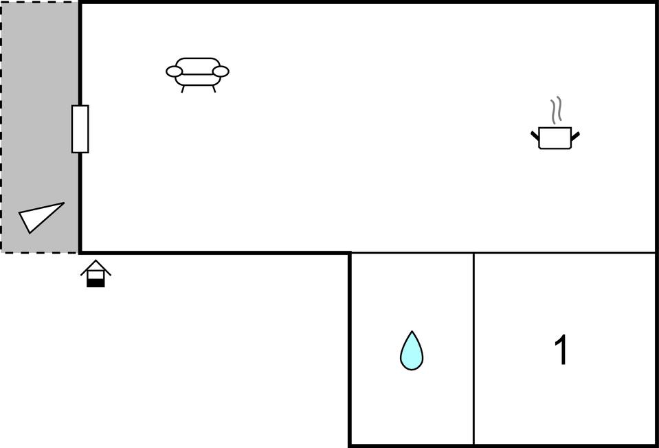 Opholdsstue/køkken 10m2 - 1 Soveplads. (Sofa, madras eller lignende).