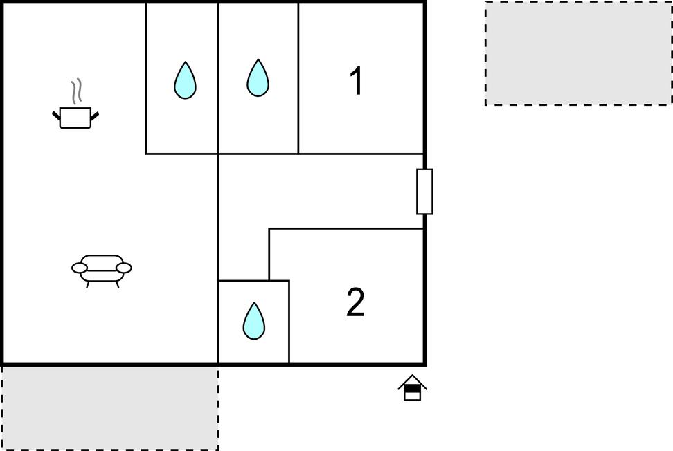 Opholdsstue/køkken 45m2 - 2 Sovepladser. (Sofa, madras eller lignende).