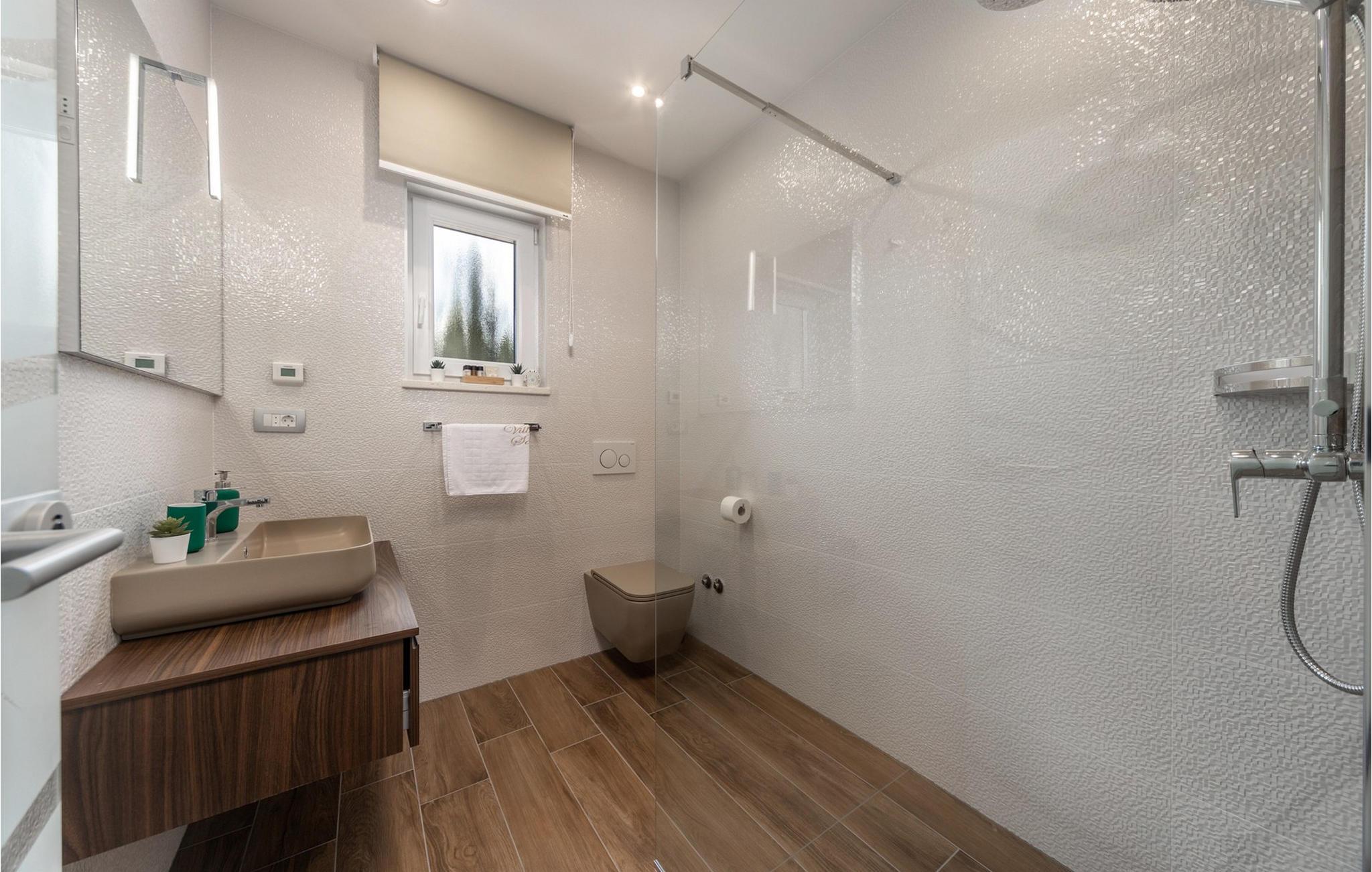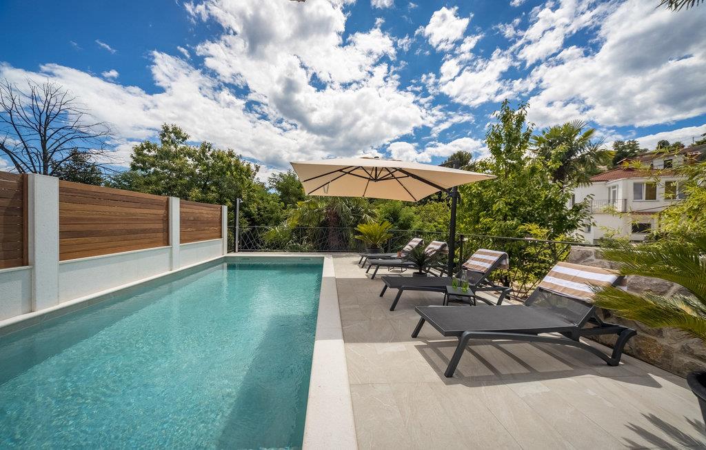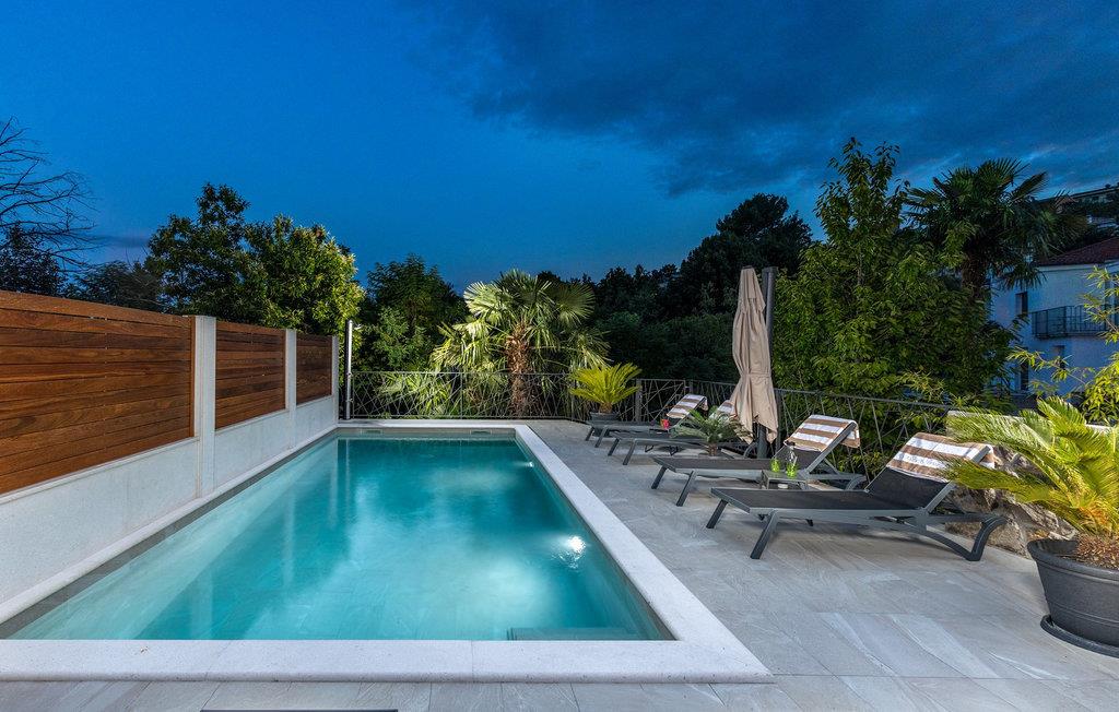 Villa Salu ligger i den lille by Pobri, som er kun to kilometer væk fra Opatija, på grænsen mellem Kvarner og den bjergrige del af Kroatien. Oplev Voloskos charme, sol dig i solens afslappende stråler og svøm i det krystalklare vand på den smukke sten- og betonstrand Crnikovica, som vil give dig alt hvad du behøver for en perfekt ferie. I nærheden af villaen er der også Lido-stranden, som blev tildelt Det Blå Flag for sit rige udbud og rene hav. På første sal i den smukke moderne Villa Salu er der tre moderne, airconditionerede værelser med dobbeltseng og et luksuriøst badeværelse med bruser. Der er også et fitnesscenter med aircondition med Level-maskiner, der hjælper dig med at få din krop i topform om sommeren. I stueetagen er der et funktionelt køkken med alt det nødvendige udstyr, der gør det muligt at lave mad hurtigt og nemt. Du kan også tilberede dine specialiteter på den udendørs kulgrill og servere dem i den udendørs spisestue med plads til 6 eller i den indendørs spisestue med plads til 8. I stueetagen er der også en stue med aircondition med en elektrisk pejs og et separat badeværelse. Foran villaen er der et dejligt hjørne med pool og 6 komfortable liggestole, hvor du kan nyde solen. Opvarmet pool fra 15.04. - 01.06. og fra 01.09. - 01.10. (afhængig af vejret). De yngste vil helt sikkert have det sjovt på legepladsen overfor villaen eller mens de cykler (to cykler til rådighed). En stenmur og smedejernshegn omkring villaen sikrer privatlivets fred. Villa Salu vil tilbyde dig en vidunderlig middelhavsatmosfære, som du helt sikkert vil huske! I Villa Salu er der også en finsk sauna, hvis brug har mange gavnlige effekter! Fans af en aktiv ferie bør ikke gå glip af muligheden for at prøve cykel- og vandrestierne, der fører dem gennem århundreder gamle skove. En gåtur langs Opatija Riviera vil tage dig til en romantisk tid takket være den smukke arkitektur af villaer, luksuriøse parker med urter fra hele verden og et rigt gastronomisk tilbud. Centrum af Opatija Riviera er Opatija, men der er også attraktive steder som Volosko og Ika, Icici og Lovran, Medveja og Mošcenicka Draga. * Ejerens private hjem ligger lige ved siden af villaen. Du vil også finde ejerens skønhedssalon, der tilbyder massage, pedicure, forskellige ansigtsbehandlinger og manicure.