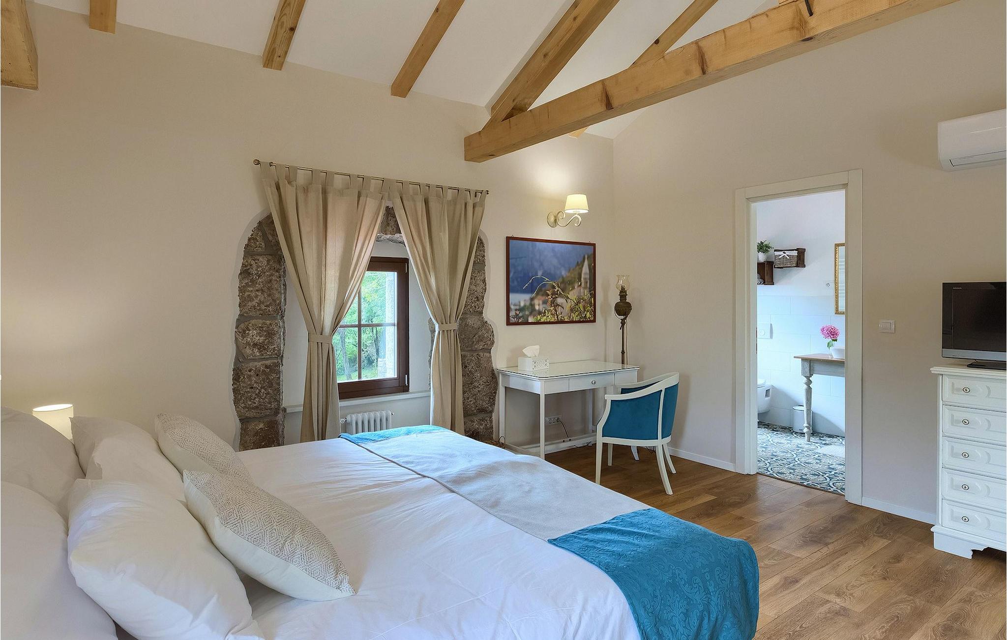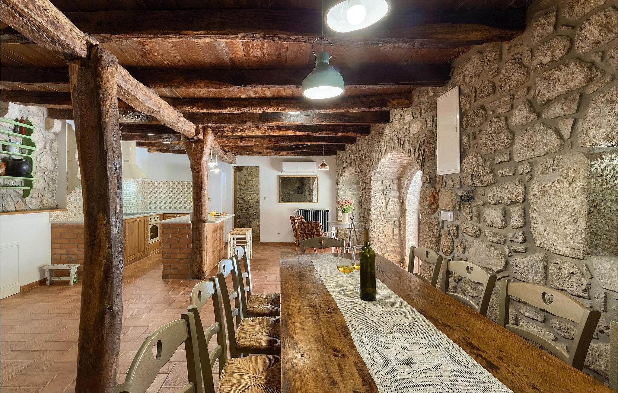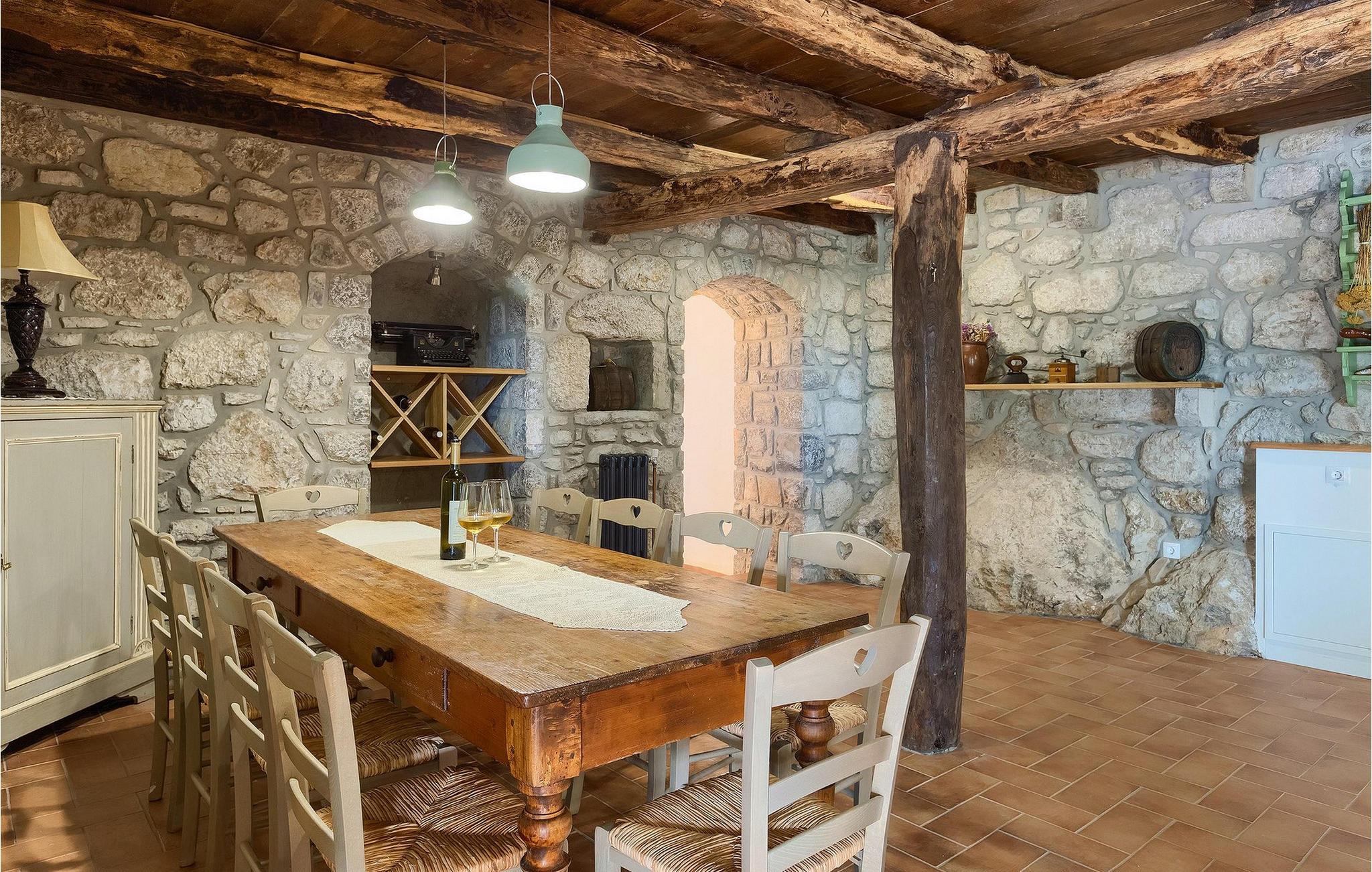 Kunne du tænke dig at tilbringe din ferie i en storslået, traditionel villa beliggende i udkanten af en kastanjeskov? En rolig og afslappende ferie i den smukke, kærligt dekorerede Villa Lumaca, er dit rigtige valg! Denne betagende villa vil få dig til at føle dig henrykt med sine vintage detaljer og det rustikke interiør, som med succes kombinerer sten og træ. I stueetagen finder du et rummeligt værelse med et autentisk køkken, en stue og en spisestue, alt opdelt med stenbuer. Forkælet med ting, der minder om en smag af bedstemors køkken, kan du tilberede dine yndlingsretter her og på grillen i haven. På første sal finder du 4 indbydende soveværelser med smukke detaljer, hvert soveværelse indrettet sammen med den matchende harmoniske farve og de genkendelige stenelementer. Hvert soveværelse har aircondition, tv og tilhørende badeværelse. Hvis du vil slappe helt af og hvile øjnene på det omkringliggende grønne område, bør du bruge lidt tid omkring den private pool. Uanset om du solbader på liggestolene, planlægger en vandretur i området eller bare forbereder grillmåltider, vil den smukke have ikke skuffe dig! Villa Lumaca venter på dig!