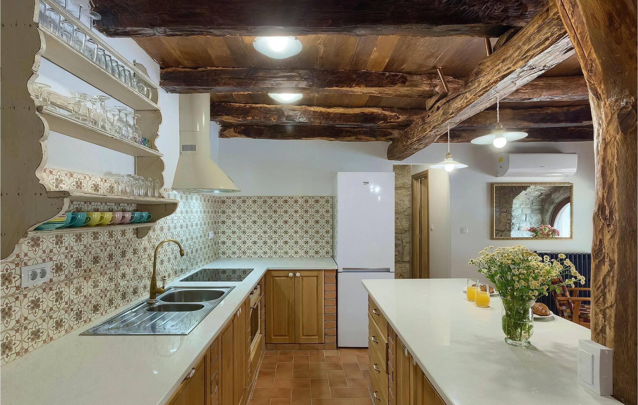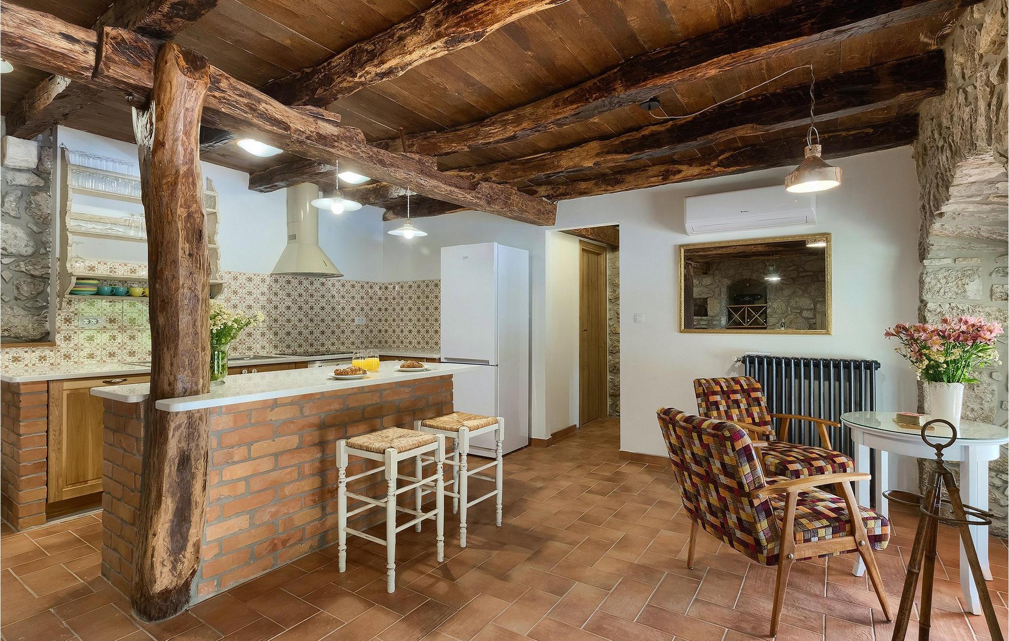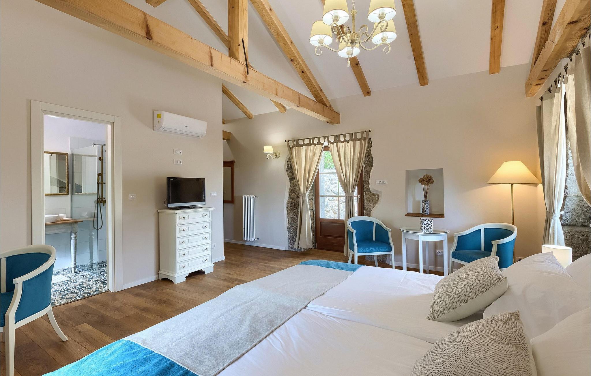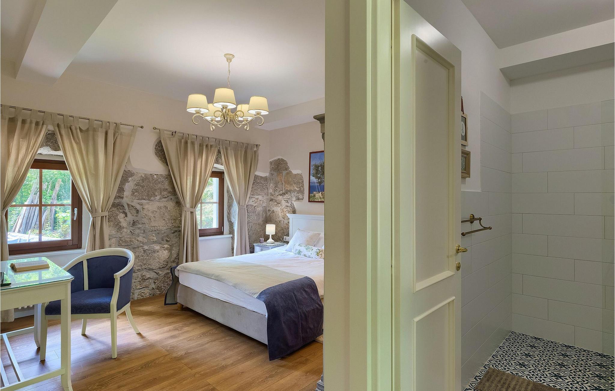 Kunne du tænke dig at tilbringe din ferie i en storslået, traditionel villa beliggende i udkanten af en kastanjeskov? En rolig og afslappende ferie i den smukke, kærligt dekorerede Villa Lumaca, er dit rigtige valg! Denne betagende villa vil få dig til at føle dig henrykt med sine vintage detaljer og det rustikke interiør, som med succes kombinerer sten og træ. I stueetagen finder du et rummeligt værelse med et autentisk køkken, en stue og en spisestue, alt opdelt med stenbuer. Forkælet med ting, der minder om en smag af bedstemors køkken, kan du tilberede dine yndlingsretter her og på grillen i haven. På første sal finder du 4 indbydende soveværelser med smukke detaljer, hvert soveværelse indrettet sammen med den matchende harmoniske farve og de genkendelige stenelementer. Hvert soveværelse har aircondition, tv og tilhørende badeværelse. Hvis du vil slappe helt af og hvile øjnene på det omkringliggende grønne område, bør du bruge lidt tid omkring den private pool. Uanset om du solbader på liggestolene, planlægger en vandretur i området eller bare forbereder grillmåltider, vil den smukke have ikke skuffe dig! Villa Lumaca venter på dig!