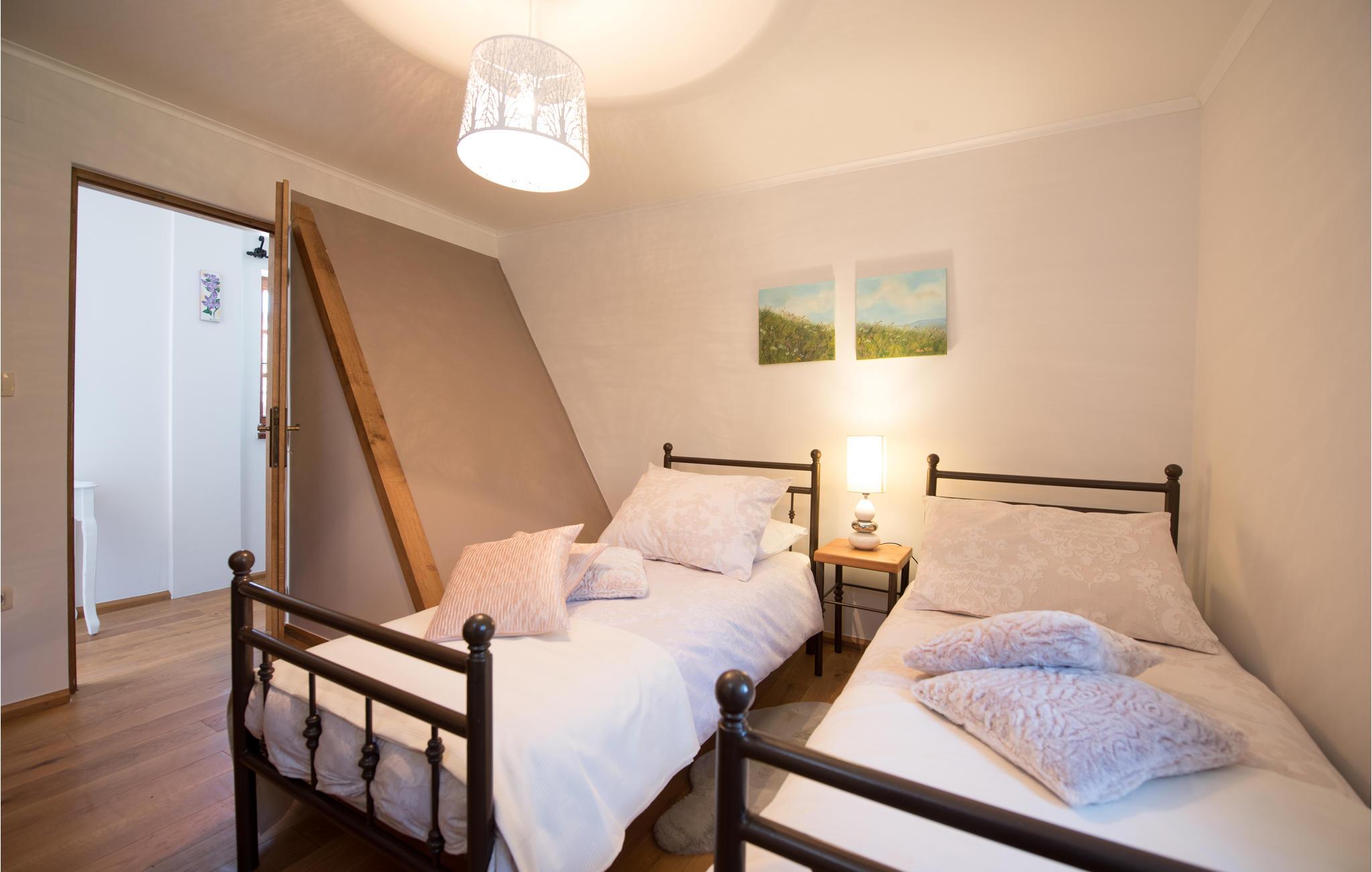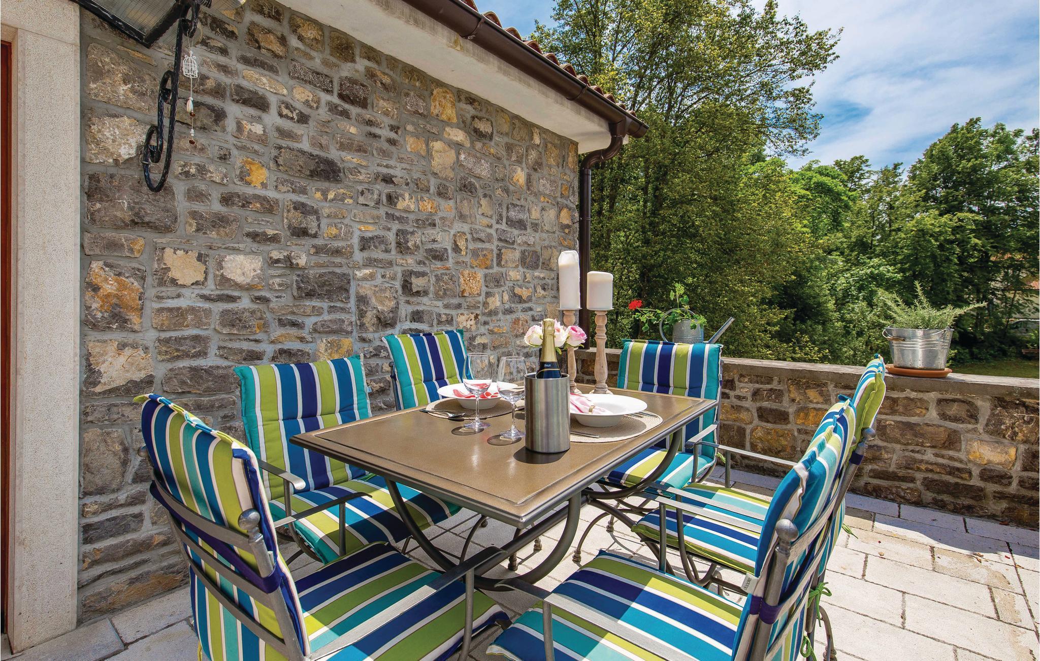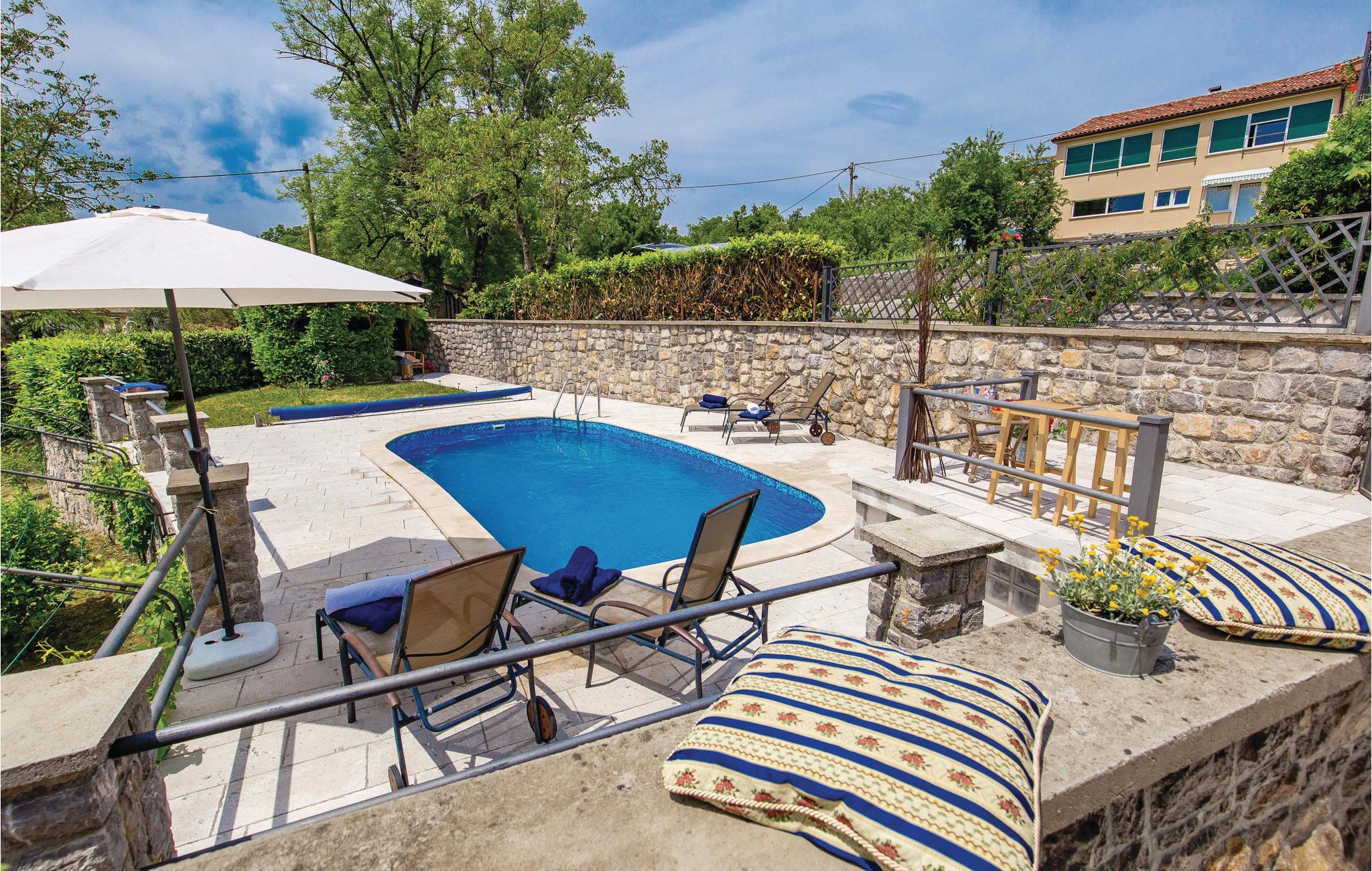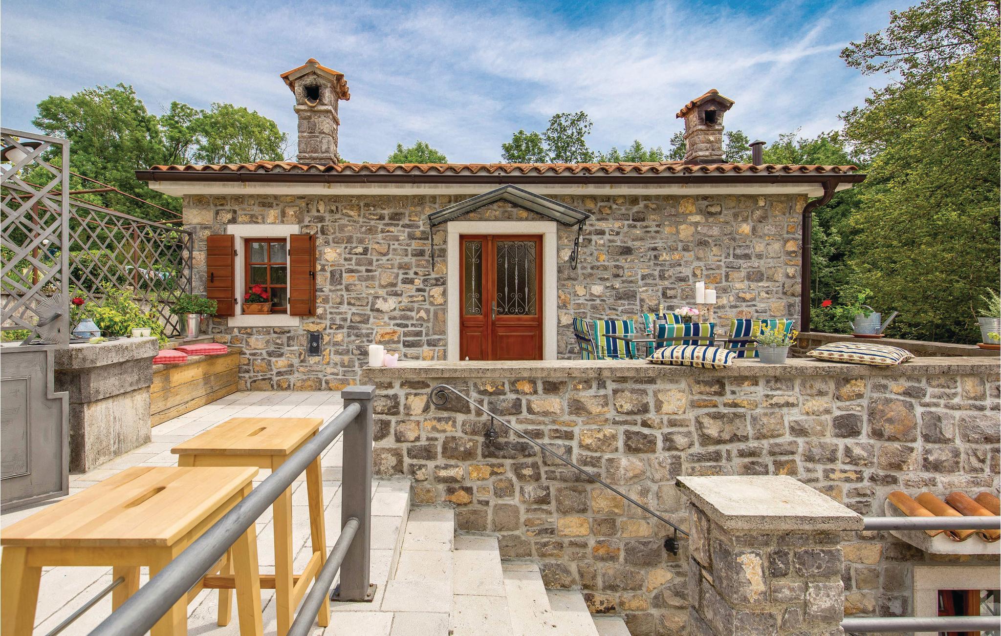 I den lille by Poljane nær byen Opatija finder I dette feriehus, som er renoveret i traditionel stil og omgivet af et særdeles idyllisk landskab. Feriedomicilet er rummeligt og smagfuldt indrettet og byder på alle de former for komfort, I kan drømme om til en afslappende og uforglemmelig ferie. I stueetagen finder I opholdsstuen med herlig kamin, som på de køligere aftener sørger for en varm og hyggelig atmosfære. Ad en stejl indendørs trappe, kommer I op til første sal med soveværelserne. I kan forkæle krop og sjæl med en tur i sauna eller lade de ømme muskler massere af spabadets tusinder af bobler.