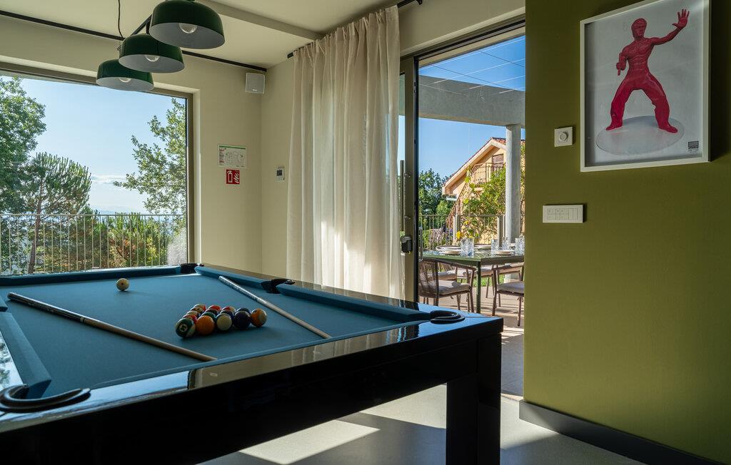 Oplev en helt exceptionel ferie i denne moderne villa. Nyd ikke kun stilfuld elegance og komfort, men også en fantastisk udsigt over det bølgende kystlandskab og havet. Læn jer tilbage i den komfortable sofa og skænk jer selv en duftende kaffe. For dem, der nyder sport, kan I spille et spil billard eller bruge træningsudstyret.