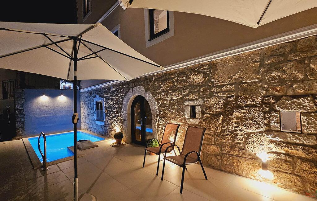 På den elegante terrasse venter en storslået pool, der tilbyder en forfriskende pause i de varme sommermåneder. Lad batterierne op på liggestolene og snak på komfortable havemøbler over et glas vin, indtil de middelhavske sommernætter forsvinder ind i natten.