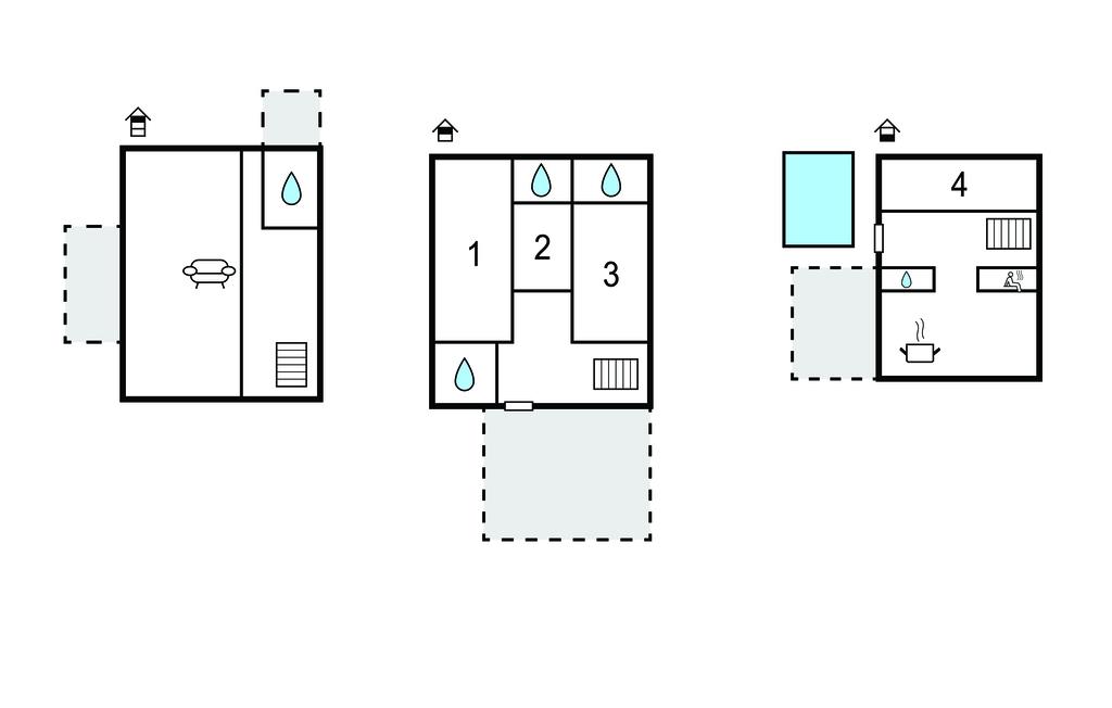 Badeværelse 4m2 (nr. 3) - WC. Varmt og koldt vand. Bruser