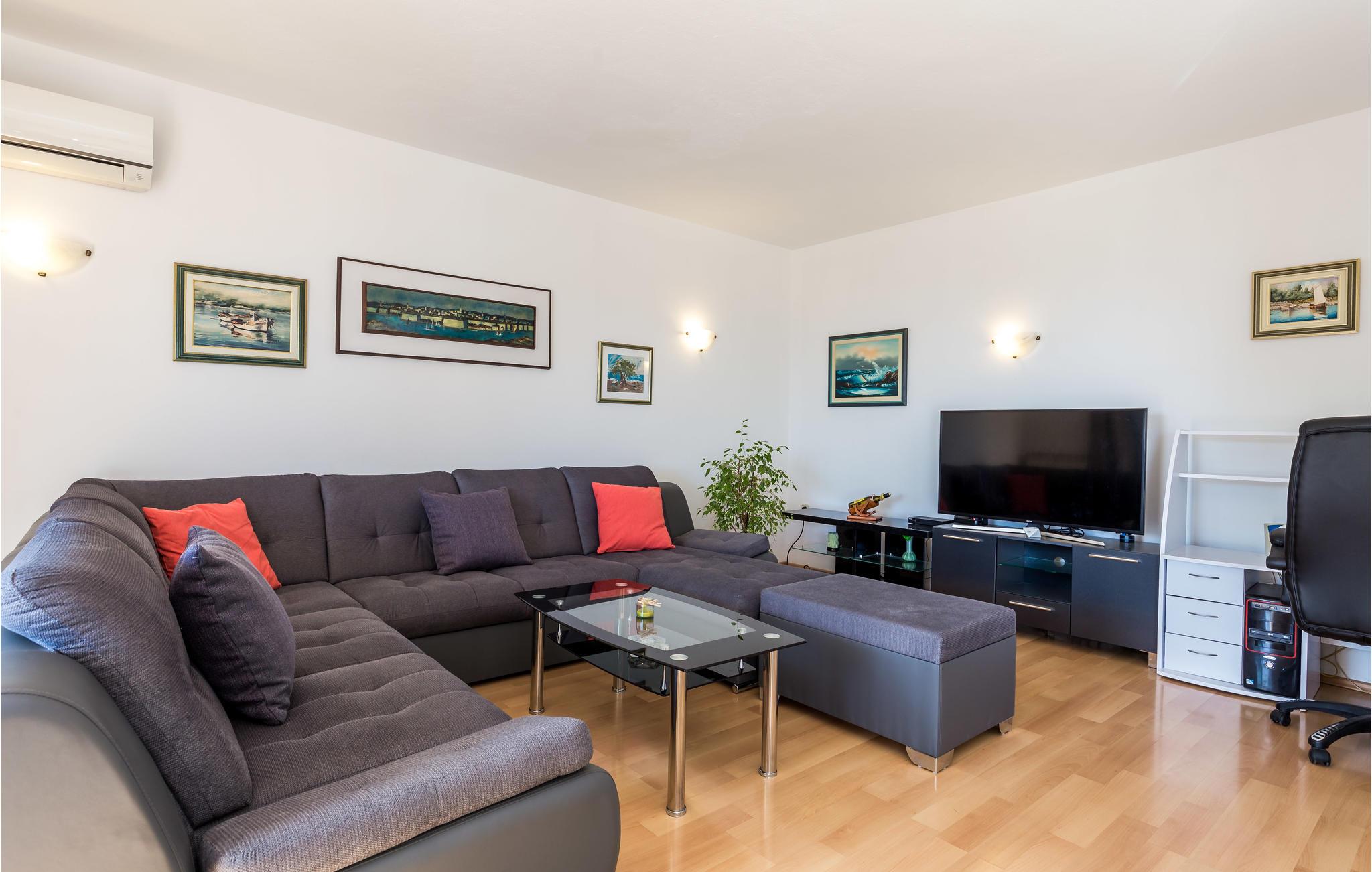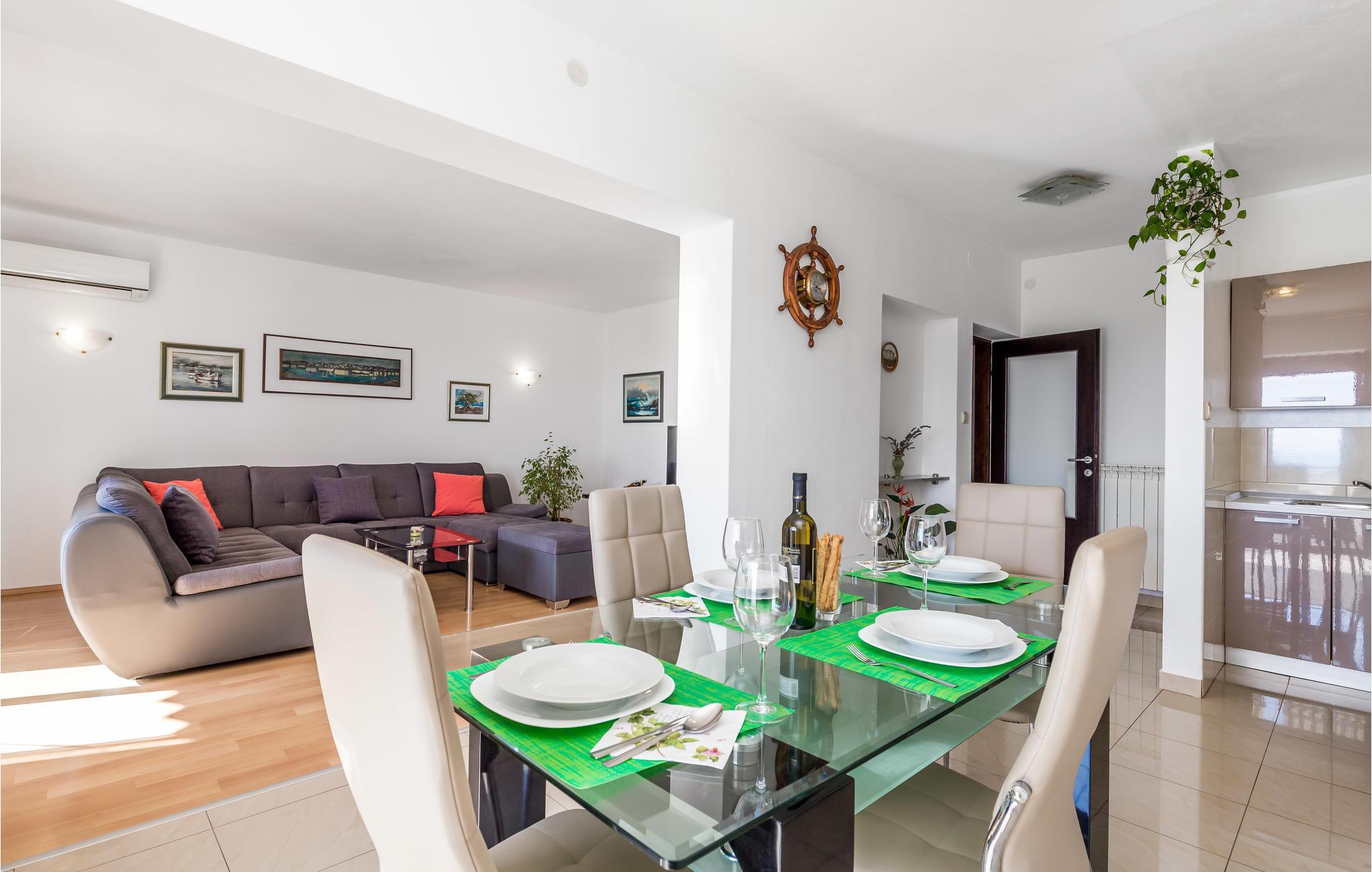 Denne smagfuldt møblerede ferielejlighed ligger i en rolig del af byen Rijeka. Den ligger på første sal i en privat ejendom med to soveværelser, en stue med køkken og to badeværelser. På balkonen kan I nyde feriedagens første solstråler, mens I spiser morgenmad sammen. Der er en fællesterrasse, hvor I kan lære husets andre gæster at kende, når I laver mad på den fælles grill.