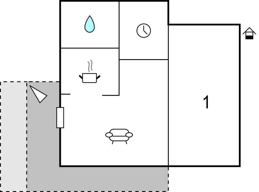 Opholdsstue/køkken - 1 Soveplads. (Sofa, madras eller lignende).